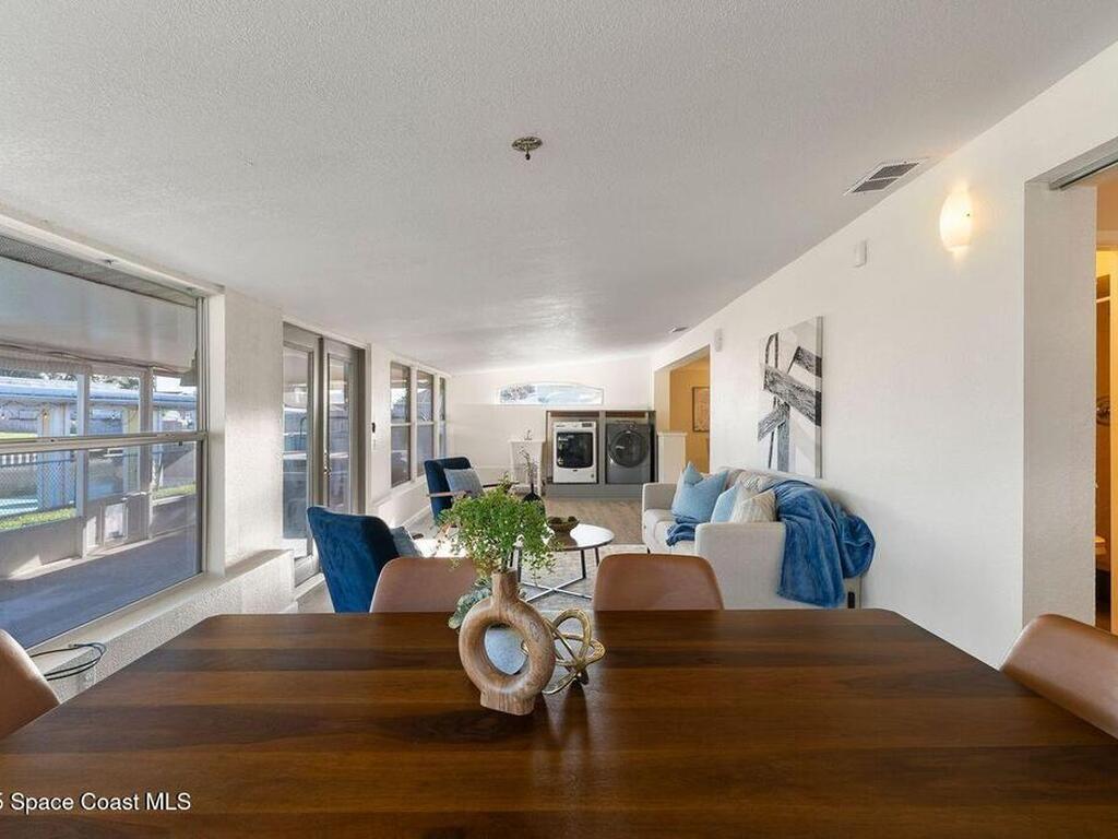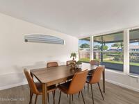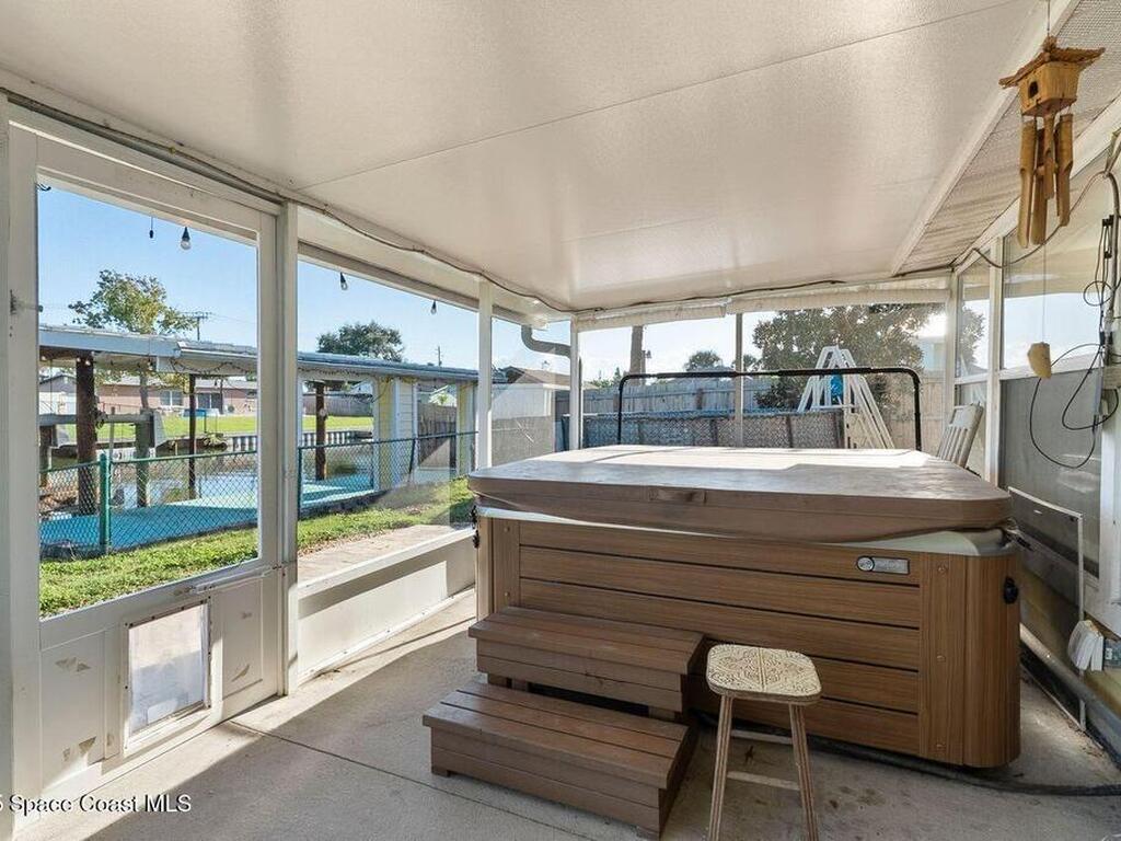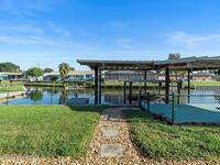 Waterfront Paradise Retreat! Immaculate concrete block home on a deep, navigable canal leading to Sykes Creek. Enjoy both sunrises & sunsets from your huge covered boat dock with lift and dining/leisure area--perfect for relaxing, entertaining, or watching dolphin & manatee play. Inside, you'll find a bright, open floor plan with a bonus room overlooking the water--ideal as a family or game room. The home offers two master retreats, one with a fully remodeled bath, plus new luxury vinyl flooring (2025) in all bedrooms and the Florida room. The main master includes a walk-in closet and direct access to the Florida room. Outdoor living shines here: oversized fenced corner lot, expansive screened patio, and an above-ground private pool. The tropical setting is private yet central to all Merritt Island conveniences. Community perks include a waterfront park with tennis & basketball courts, playground, and pavilion. Whether as a winter retreat or full-time residence, this well-maintained hom