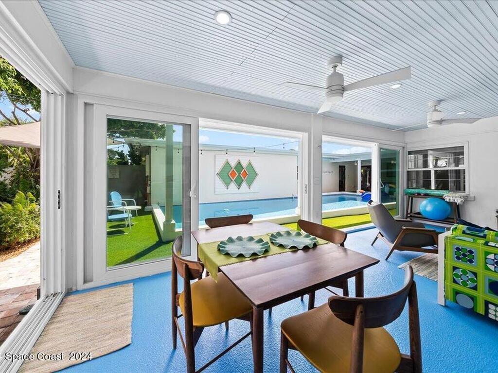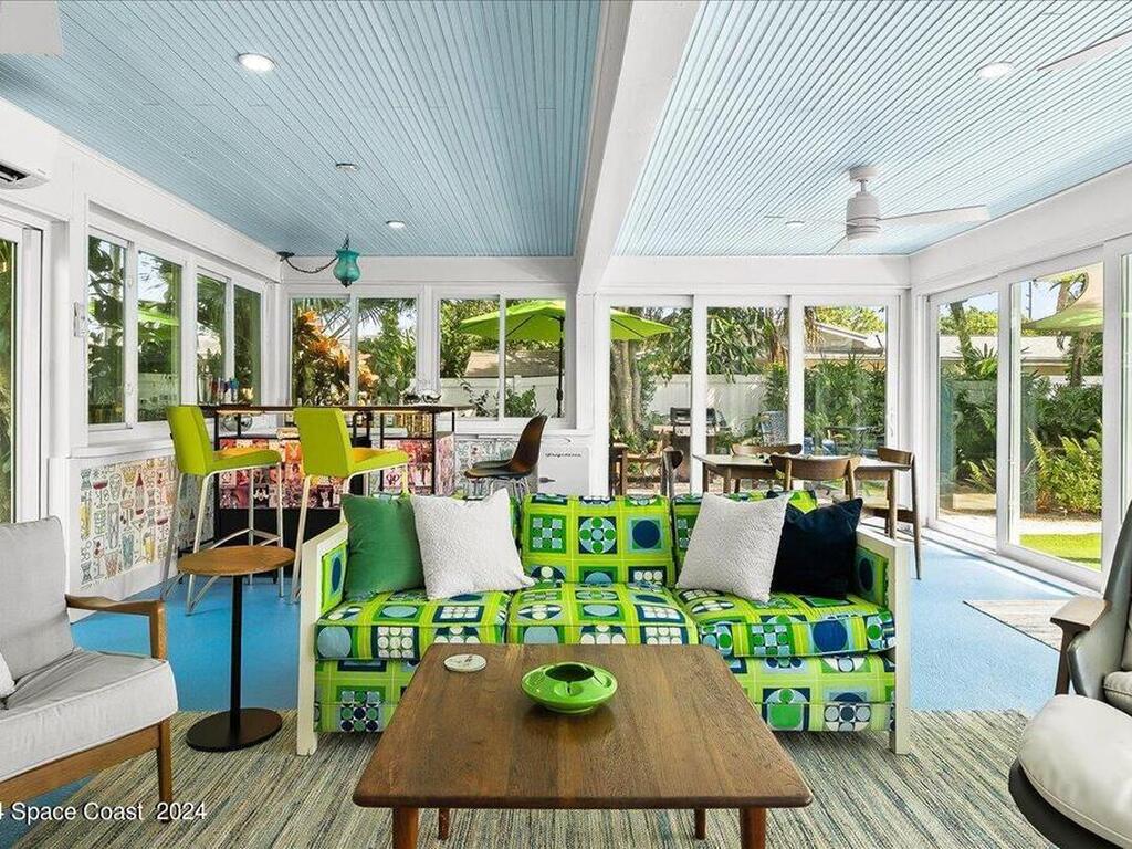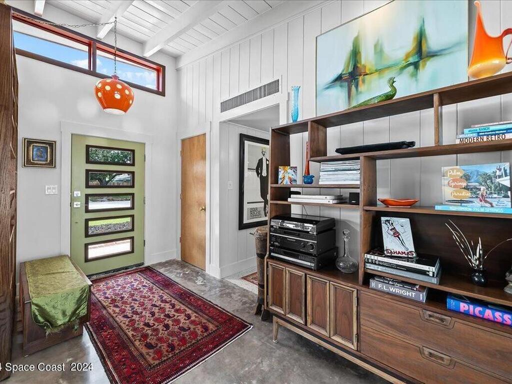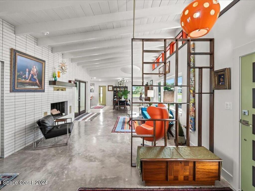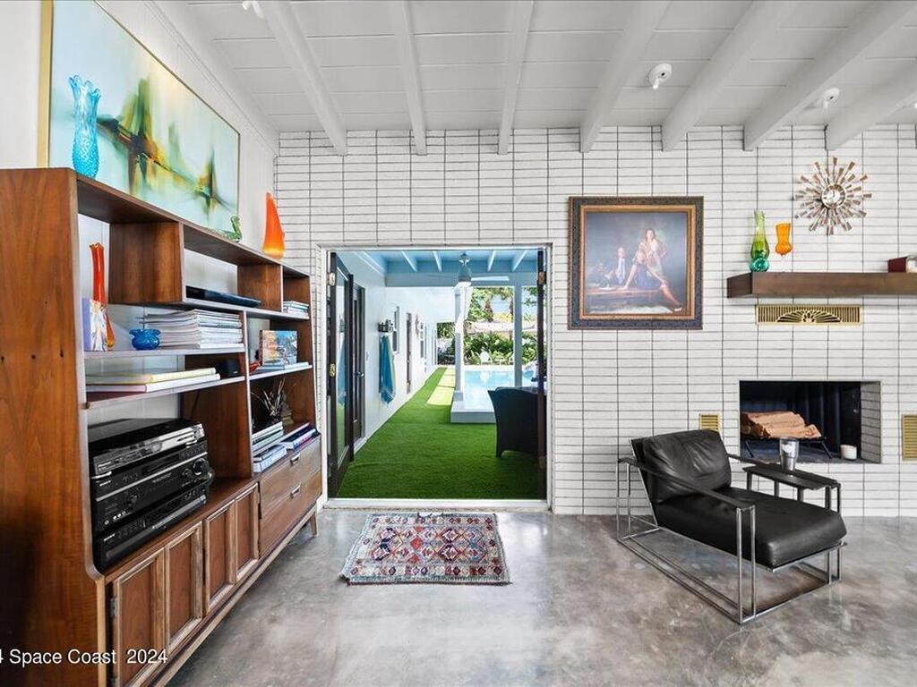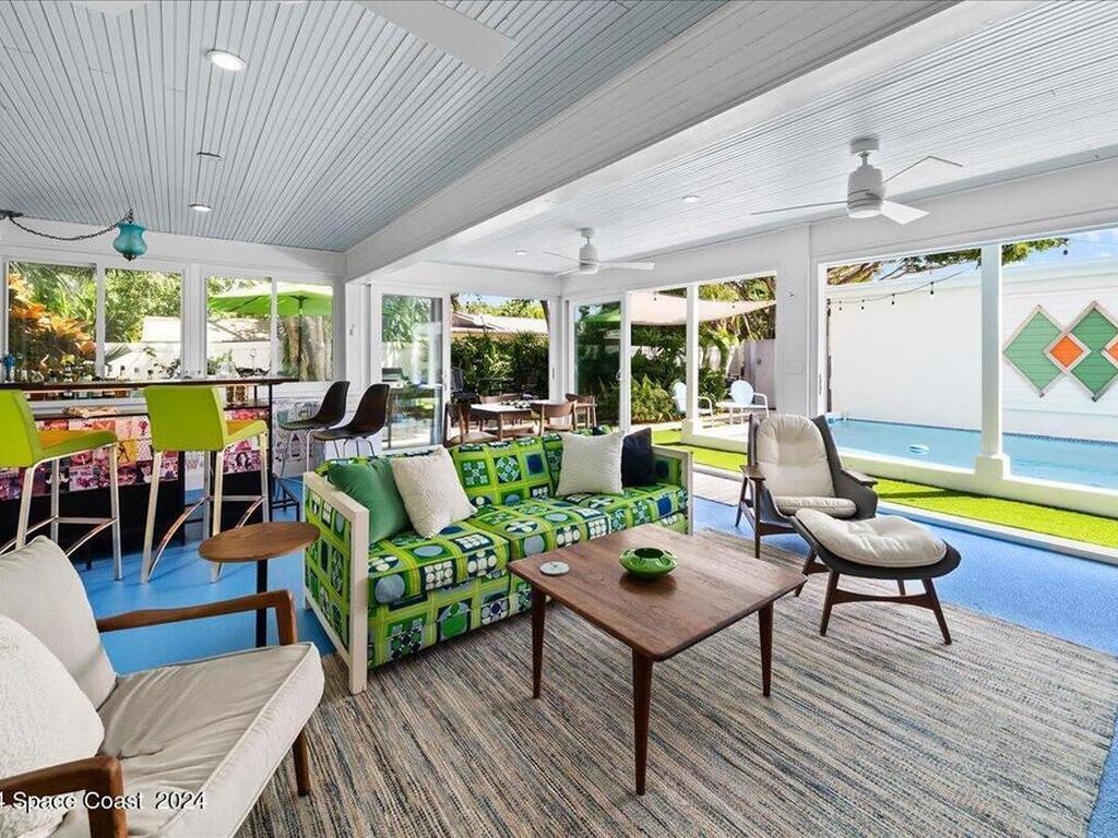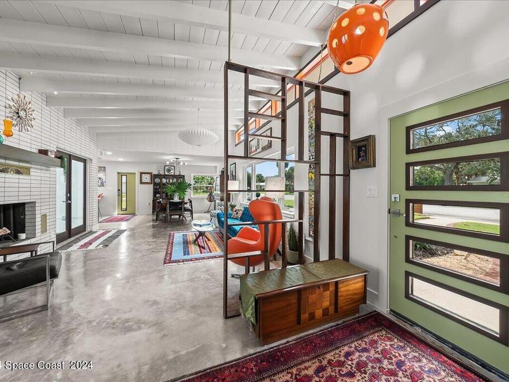 PRIICED BELOW APPRAISAL- ive the ultimate Space Coast lifestyle in this beautifully renovated mid-century modern home just steps from Indialantic's beaches, shops, and restaurants. Every detail has been thoughtfully upgraded over $300K in improvements while preserving the timeless character of terrazzo floors, vaulted ceilings, and a cozy fireplace. The chef's kitchen shines with quartz countertops, custom cabinetry, and a striking wine wall that doubles as art. Outdoors, unwind by the koi pond, take a dip in the resurfaced pool, or enjoy the spa-like outdoor shower after a beach day. The vibrant bonus room, affectionately that opens up to the pool is perfect for entertaining or family movie nights. With impact windows and doors, a newer roof, new plumbing and new electrical, this home offers peace of mind and versatility. Whether you're relocating, seeking a stylish retirement retreat, or craving a unique second home by the sea, you'll love the blend of modern comfort and