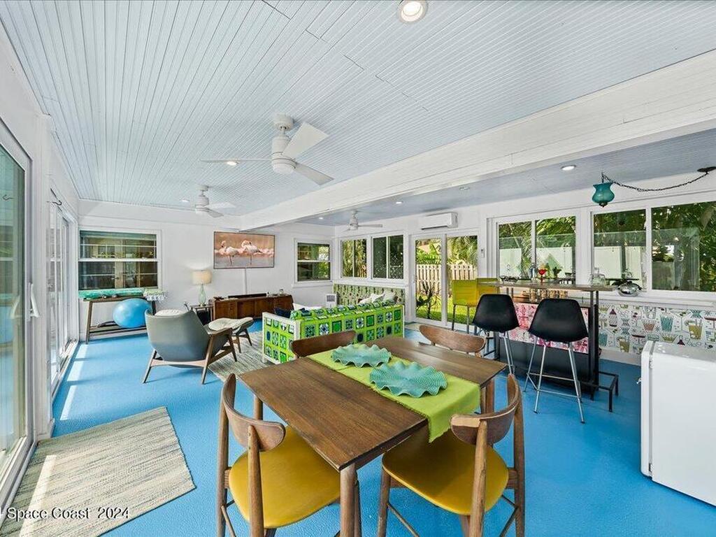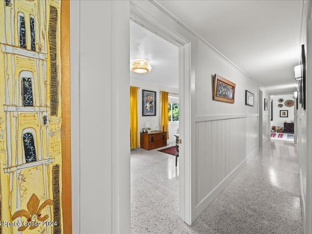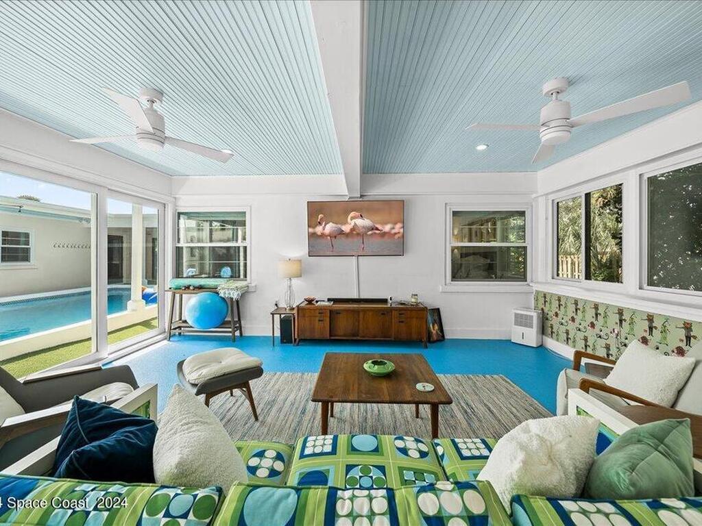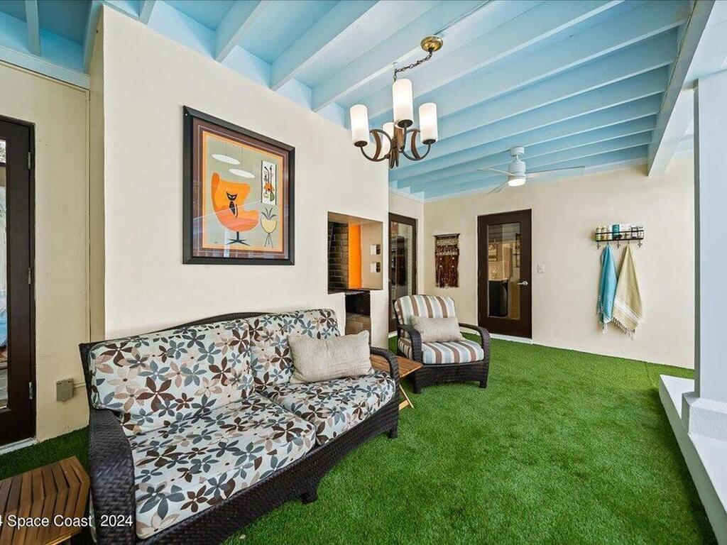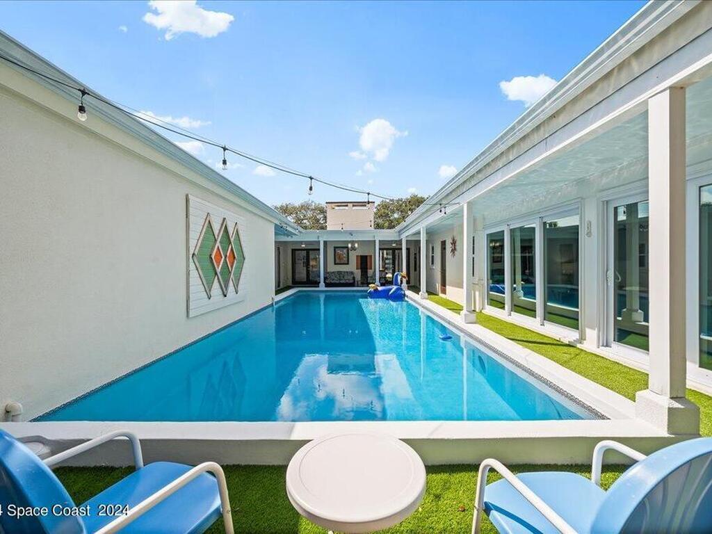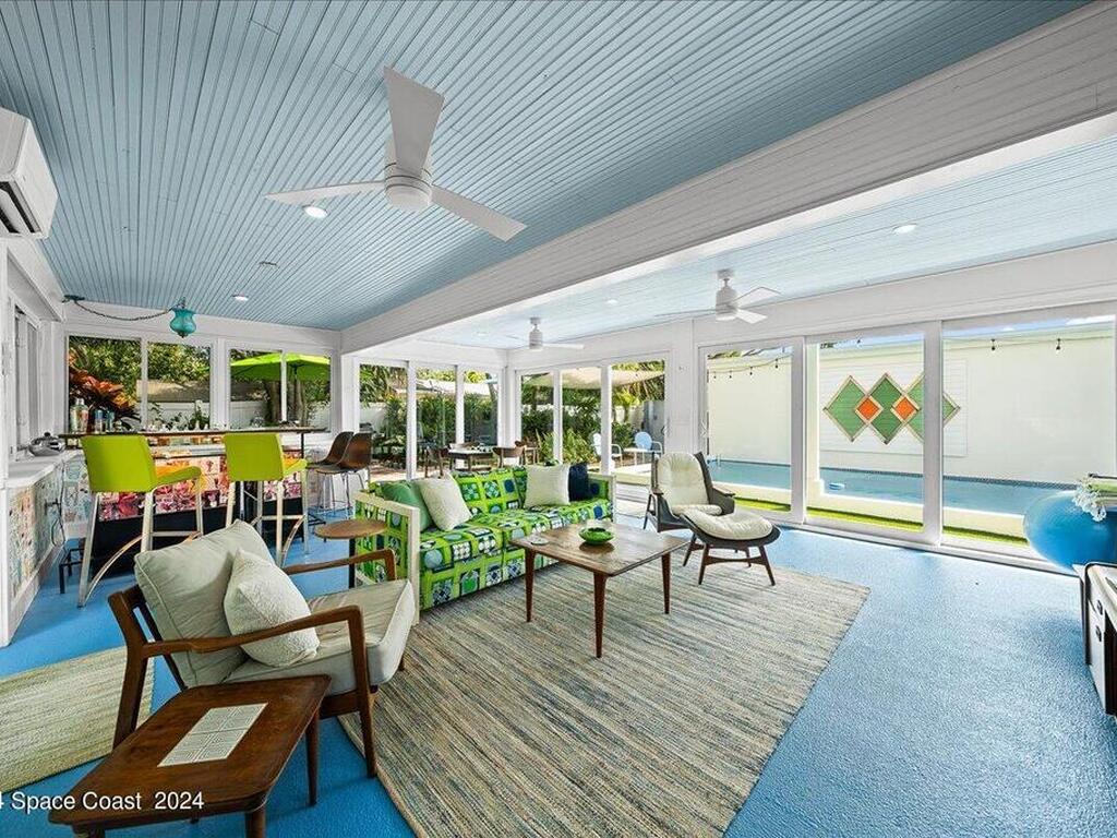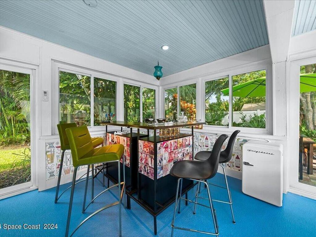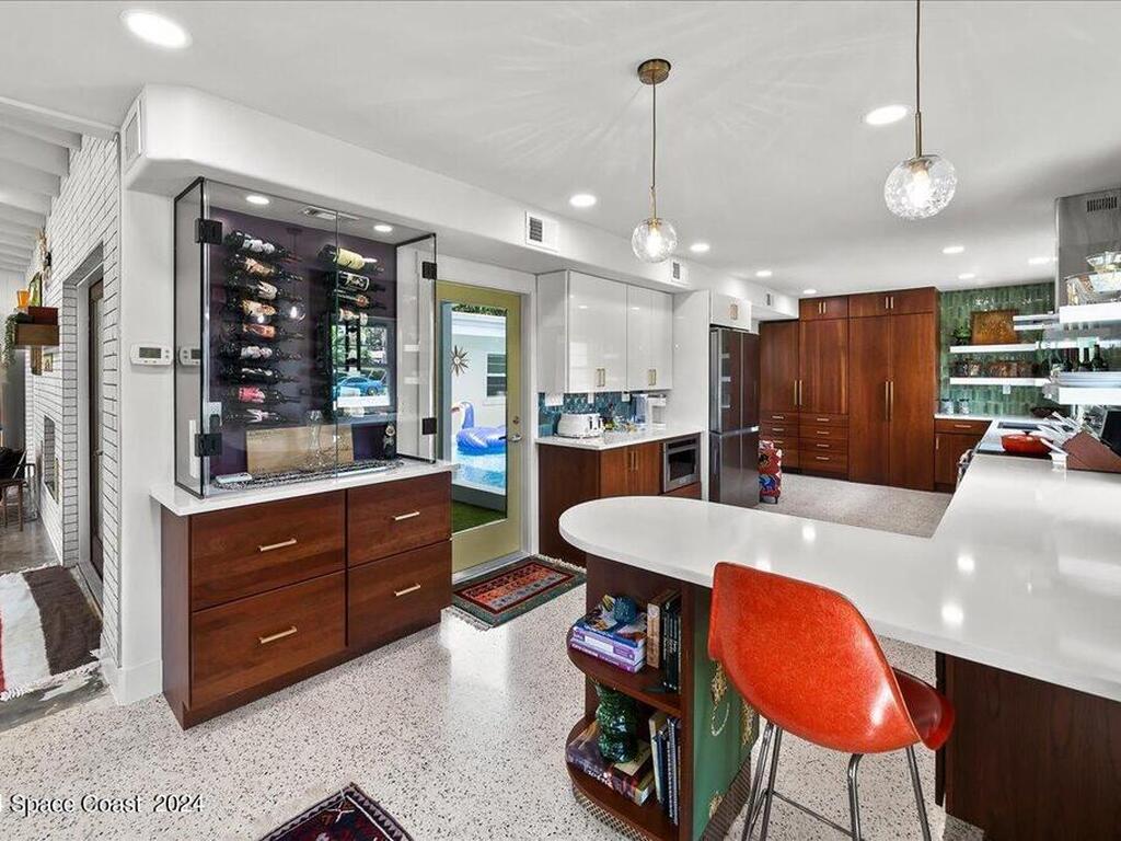 PRIICED BELOW APPRAISAL- ive the ultimate Space Coast lifestyle in this beautifully renovated mid-century modern home just steps from Indialantic's beaches, shops, and restaurants. Every detail has been thoughtfully upgraded over $300K in improvements while preserving the timeless character of terrazzo floors, vaulted ceilings, and a cozy fireplace. The chef's kitchen shines with quartz countertops, custom cabinetry, and a striking wine wall that doubles as art. Outdoors, unwind by the koi pond, take a dip in the resurfaced pool, or enjoy the spa-like outdoor shower after a beach day. The vibrant bonus room, affectionately that opens up to the pool is perfect for entertaining or family movie nights. With impact windows and doors, a newer roof, new plumbing and new electrical, this home offers peace of mind and versatility. Whether you're relocating, seeking a stylish retirement retreat, or craving a unique second home by the sea, you'll love the blend of modern comfort and