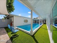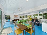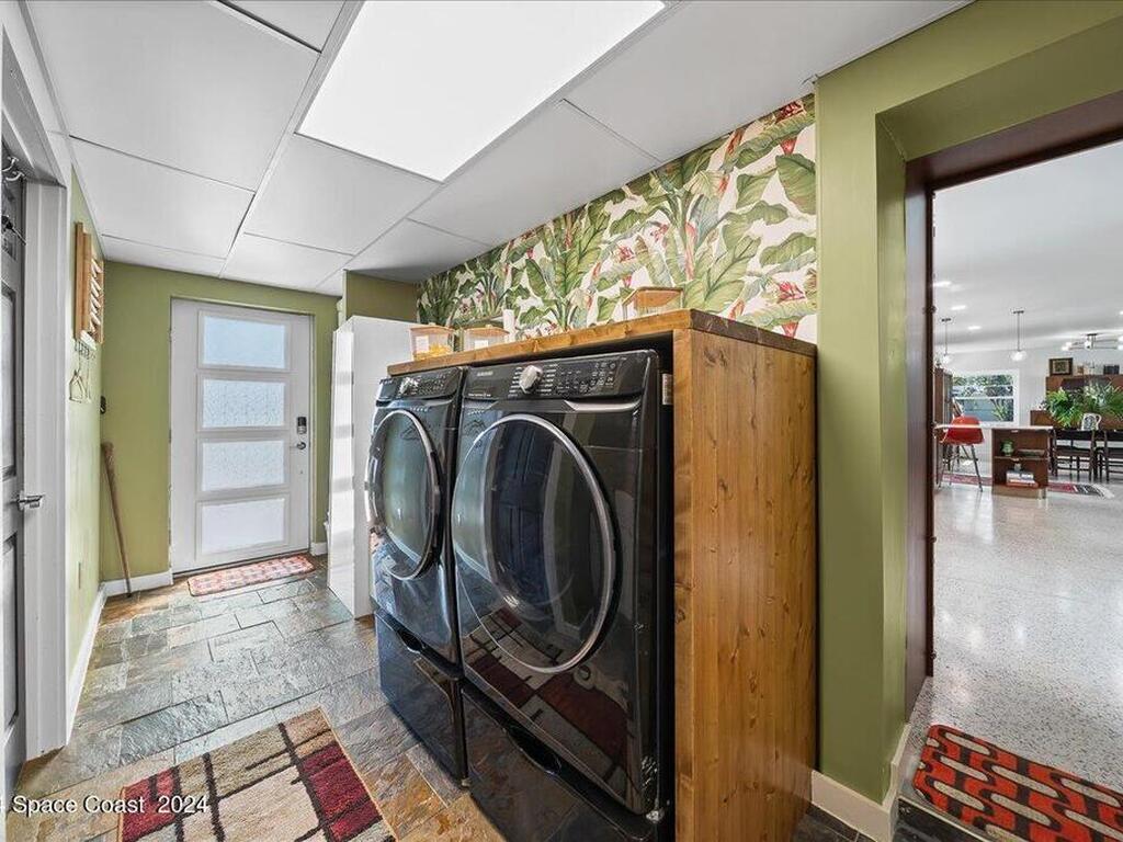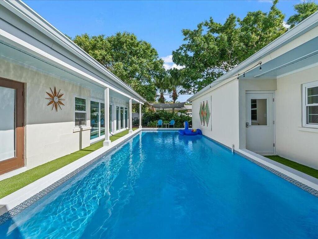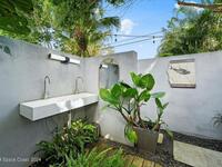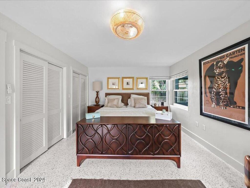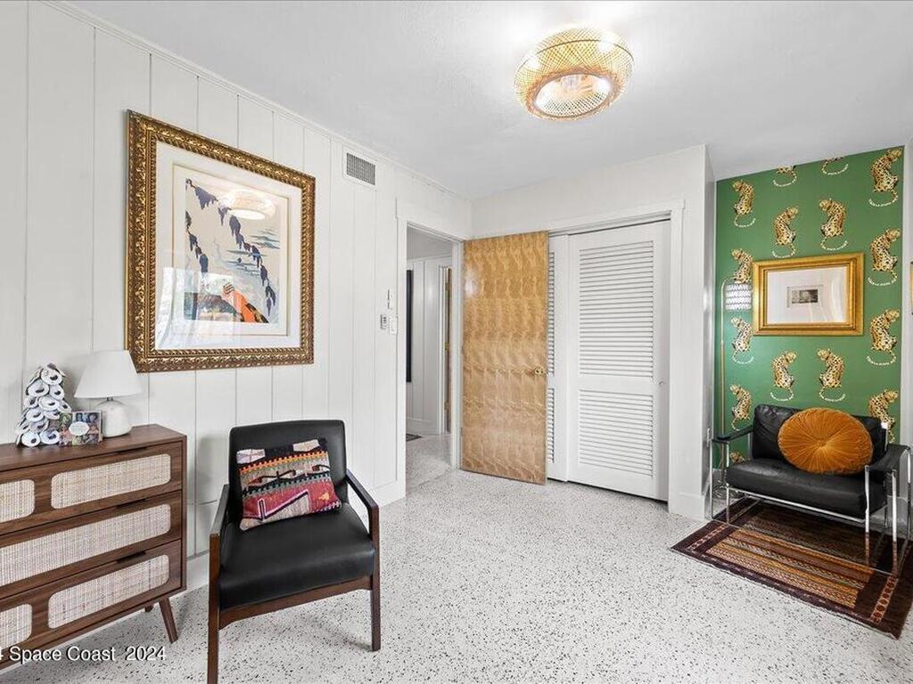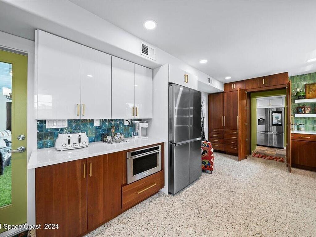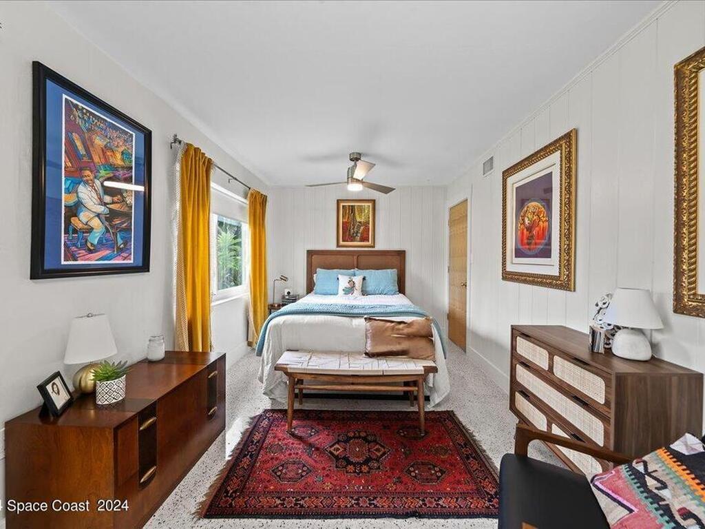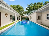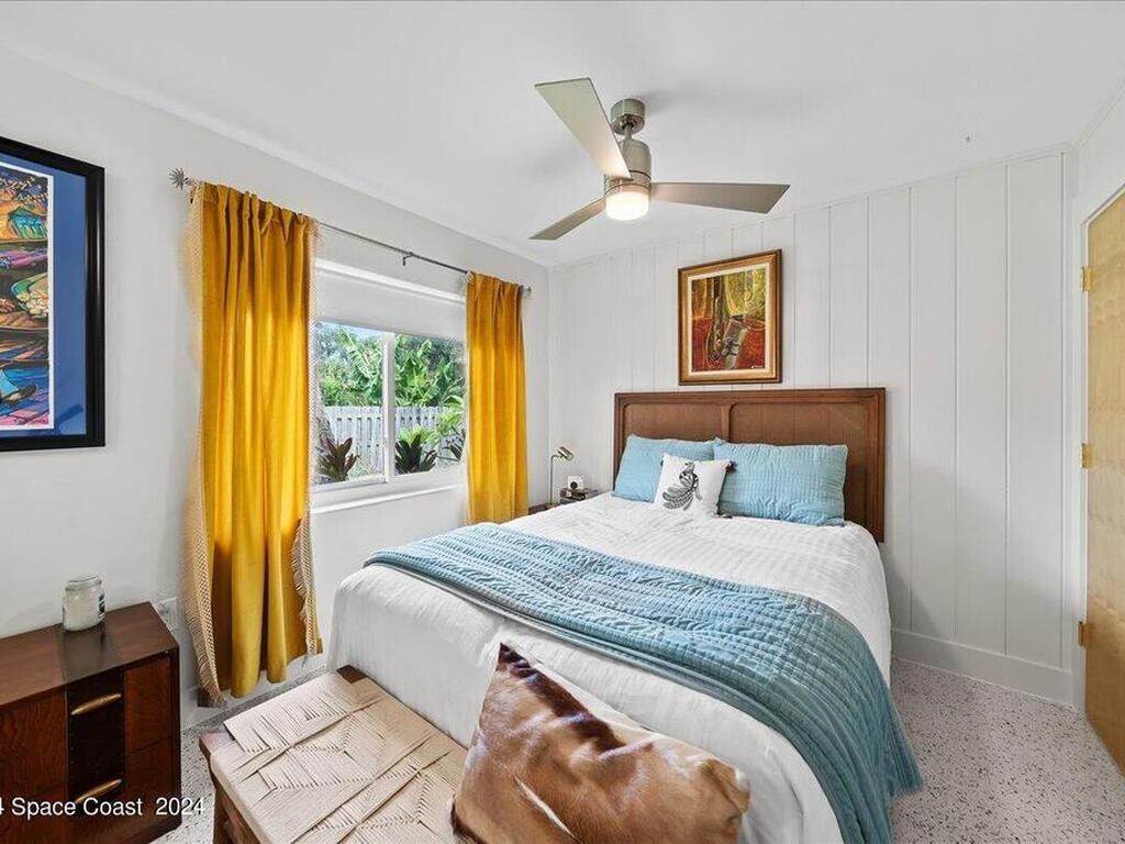 PRIICED BELOW APPRAISAL- ive the ultimate Space Coast lifestyle in this beautifully renovated mid-century modern home just steps from Indialantic's beaches, shops, and restaurants. Every detail has been thoughtfully upgraded over $300K in improvements while preserving the timeless character of terrazzo floors, vaulted ceilings, and a cozy fireplace. The chef's kitchen shines with quartz countertops, custom cabinetry, and a striking wine wall that doubles as art. Outdoors, unwind by the koi pond, take a dip in the resurfaced pool, or enjoy the spa-like outdoor shower after a beach day. The vibrant bonus room, affectionately that opens up to the pool is perfect for entertaining or family movie nights. With impact windows and doors, a newer roof, new plumbing and new electrical, this home offers peace of mind and versatility. Whether you're relocating, seeking a stylish retirement retreat, or craving a unique second home by the sea, you'll love the blend of modern comfort and