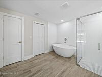 PRICED TO SELL! This stunning COMPLETELY renovated 3/3 CANALFRONT home exudes modern elegance and luxurious comfort. Nestled along Horti Point, this .46 acre serene property offers WATERFRONT frontage to the Banana River with no HOA!. The open concept living space boasts soaring ceilings, sleek finishes & abundant natural light, seamlessly blending outdoor & indoor living. The gourmet kitchen features brand new appliances, quartz countertops and a spacious island perfect for entertaining. The oversized master suite is a serene retreat with a private paved patio, spa like bathroom & generous walk in closet. Addt'l bedrooms are spacious, each with en-suite baths. An indoor laundry room & oversized garage for your toys, allows everyone their space. Outdoors you will enjoy an oversized covered patio, sprawling fenced backyard w/ room for a POOL & direct access to your PRIVATE DOCK, ideal for boating enthusiasts. No fixed bridges & close to all of the attractions & amenities.