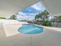 Experience coastal elegance in this stunning sanctuary. Nestled on a deep-water, wide, canal, this waterfront retreat offers breathtaking views, sunsets and direct boating access to the Banana and Indian Rivers. The backyard oasis features a sparkling pool with serene water vistas, perfect for relaxing or entertaining. Inside, an open concept design flows seamlessly through the kitchen, living, and dining areas, all capturing panoramic water views. A spacious 19x17 bonus room offers endless possibilities--ideal for a home office, gym, or additional bedroom that could also be turned back into a two car garage. The luxurious primary suite provides a private waterfront escape with an elegant en-suite bath. Peace of mind is ensured with all hurricane impact windows and sliders installed recently. Embrace Florida's coastal lifestyle at its finest in this exceptional residence. Roof 2014, windows and sliders 2023, deck, dock addition and seawall 2007.