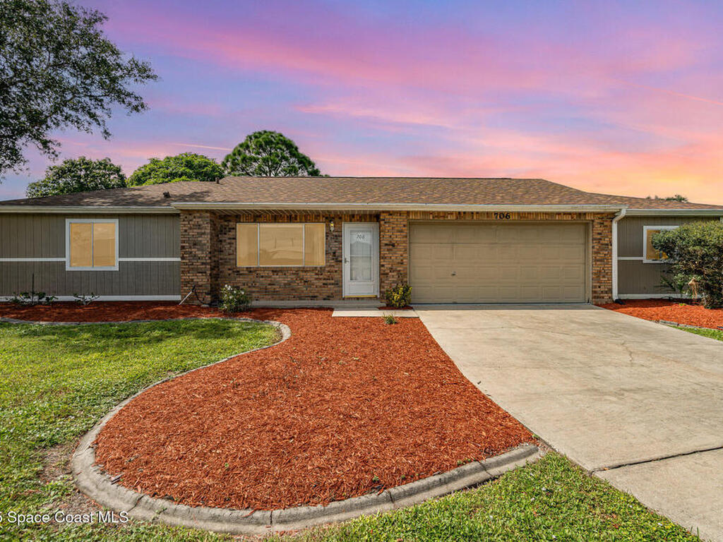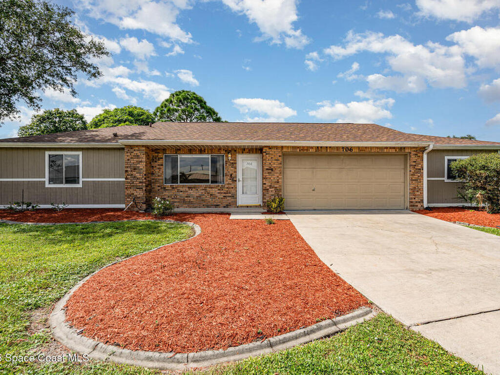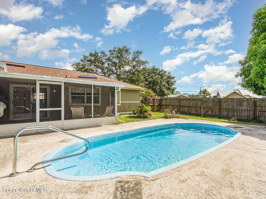 Discover this charming single-family residence nestled in the heart of Palm Bay. The home has significant updates that provide peace of mind - the fiberglass pool has been freshly resurfaced as of Sept 2025 & a new pool pump in 2024. Add'l the home boasts a brand-new AC unit & roof, both installed in 2025, ensuring that your comfort is secured for years to come. Ideal for a starting family or those looking for their forever home, this 3/2 home offers a spacious .29-acre corner lot that is sure to impress. As you step inside, you'll be greeted by a warm & inviting atmosphere - Looking beyond the original cabinets & wallpaper - this home is truly move-in ready. The residence offers ample storage throughout, featuring walk-in closets in all bedrooms and an extended utility room (12x12) within the 2-car garage. Embrace the opportunity to personalize this home to your taste over time, while enjoying the benefits of a well-maintained and conveniently located property.