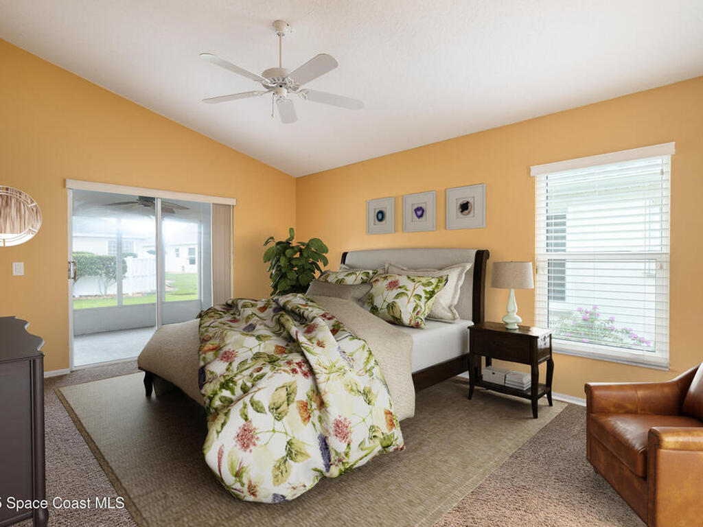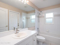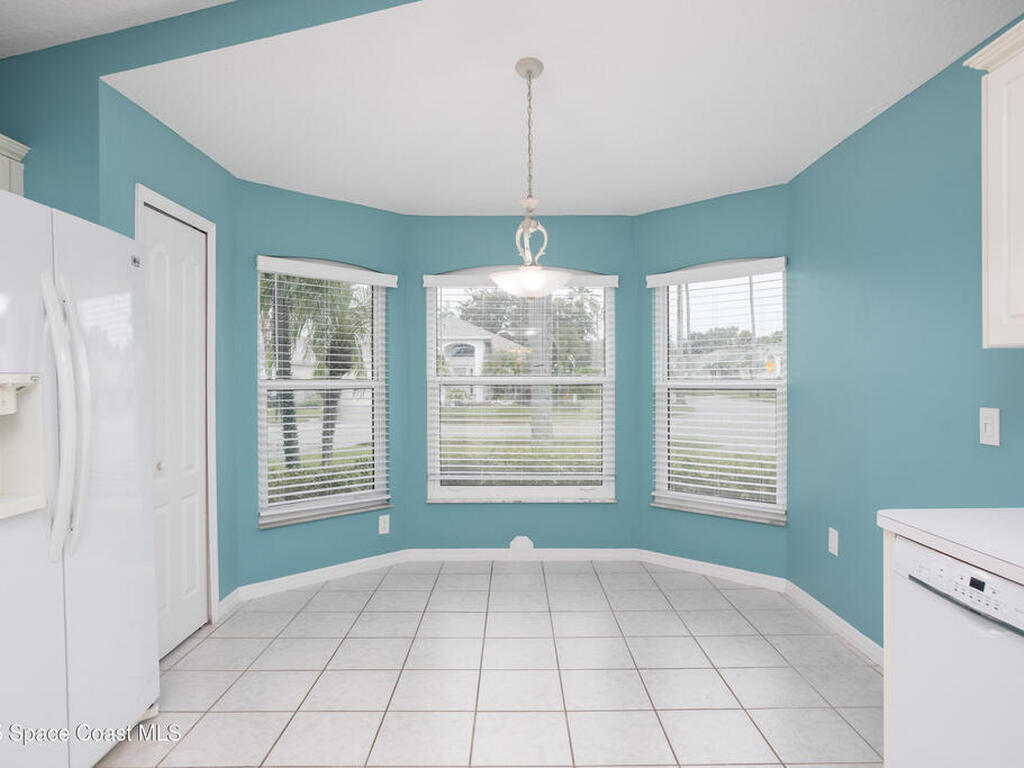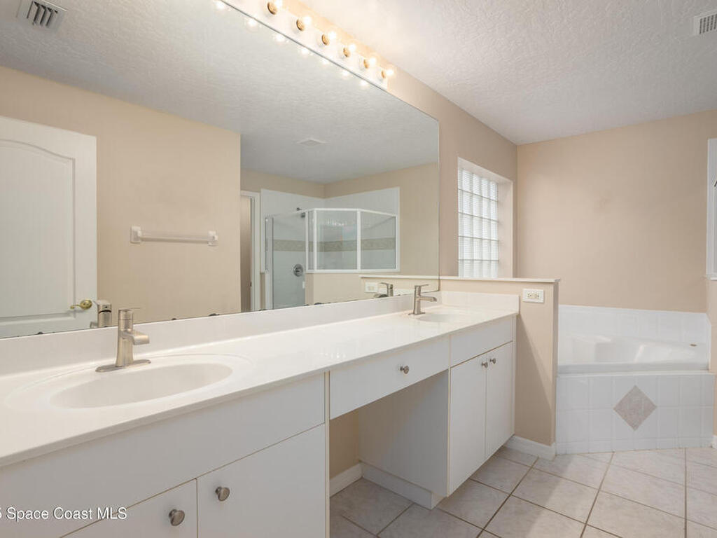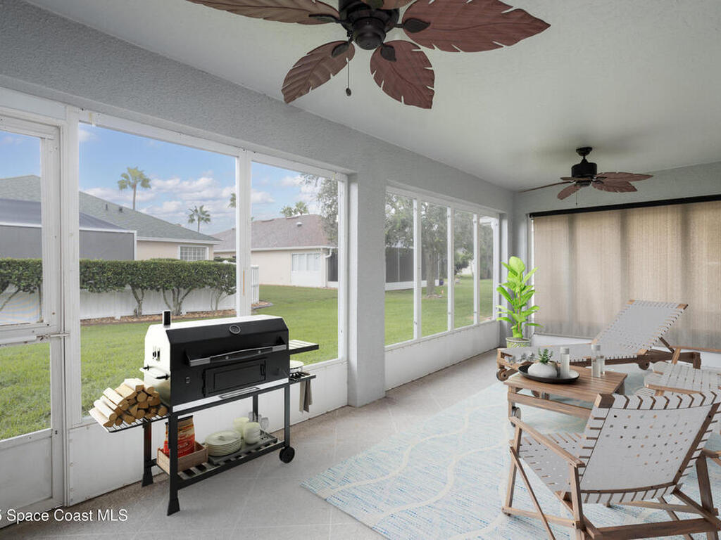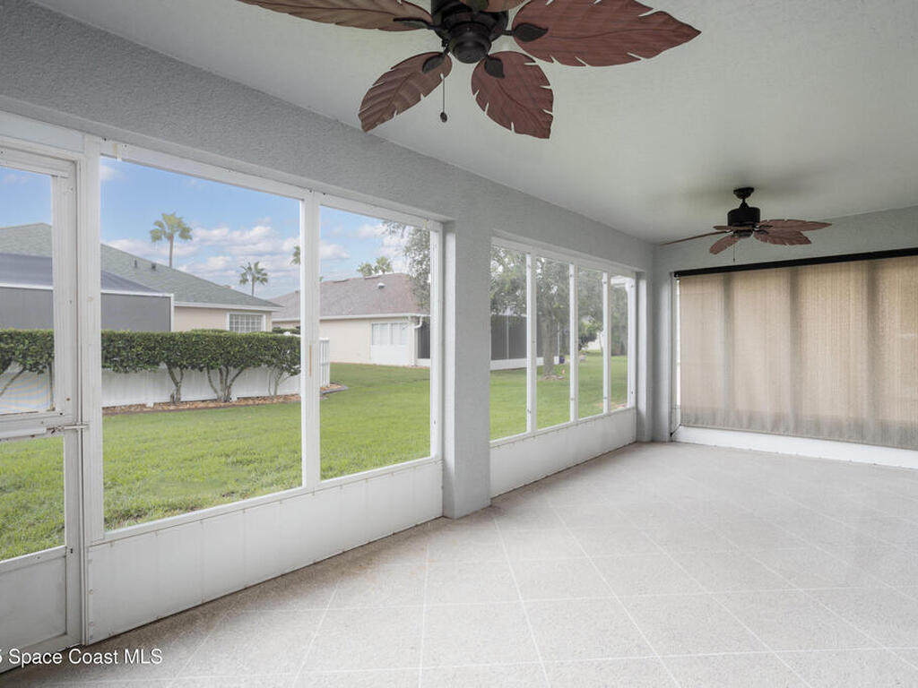 Immaculate home in the desirable Suntree community of Misty Creek. Beautifully maintained inside and out, this residence offers an open floor plan with vaulted ceilings, a formal dining room, and a large eat-in kitchen complete with a breakfast nook and bar. The master suite features a large walk-in closet and a bath with double vanities, a garden tub, and a separate shower. The open layout flows seamlessly into the living and family room, which leads to a spacious enclosed lanai ideal for year-round enjoyment. Upgrades include PGT vinyl impact windows, a Genie Aladdin Connect Wi-Fi garage door opener, a SimpliSafe monitoring system, removable vinyl windows for the lanai, and Advanced Hurricane Technology Super Span roll-down screens on the front door and lanai. The low HOA fee includes access to a community pool, lawn care, irrigation, and exterior painting. Ideally located close to top-rated schools, shopping, dining, beautiful beaches, and Suntree Country Club.
