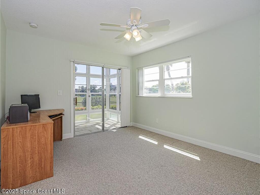 SIMPLY STUNNING REMODEL IN VISTA ROYALE! Beautifully remodeled 2/2 1st floor condo that blends modern elegance w/ the active lifestyle of Vero Beach's premier 55+ community. Every detail has been thoughtfully updated, starting w/ impact windows & doors for peace of mind, a 2023 roof, 2023 AC & private enclosed paver patio offering sweeping views of golf course & shimmering lake. Inside, you'll find a light-filled open floor plan, highlighted by an updated kitchen w/ sleek finishes and completely renovated baths that bring a touch of luxury to everyday living. Office photo is virtually staged.