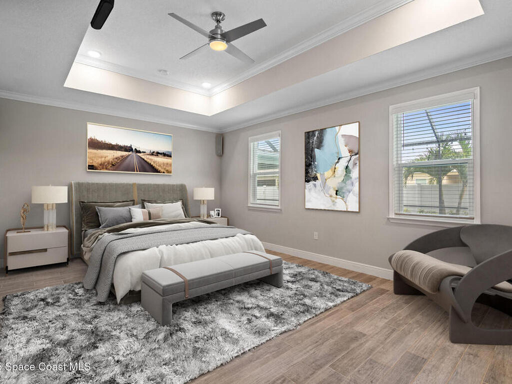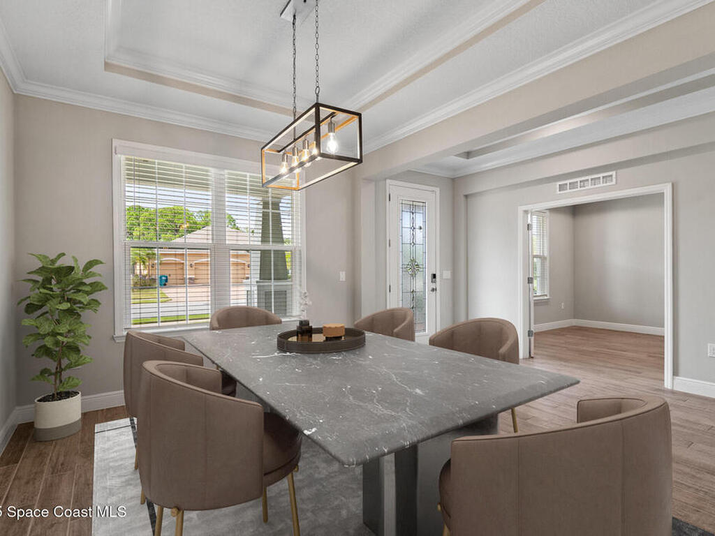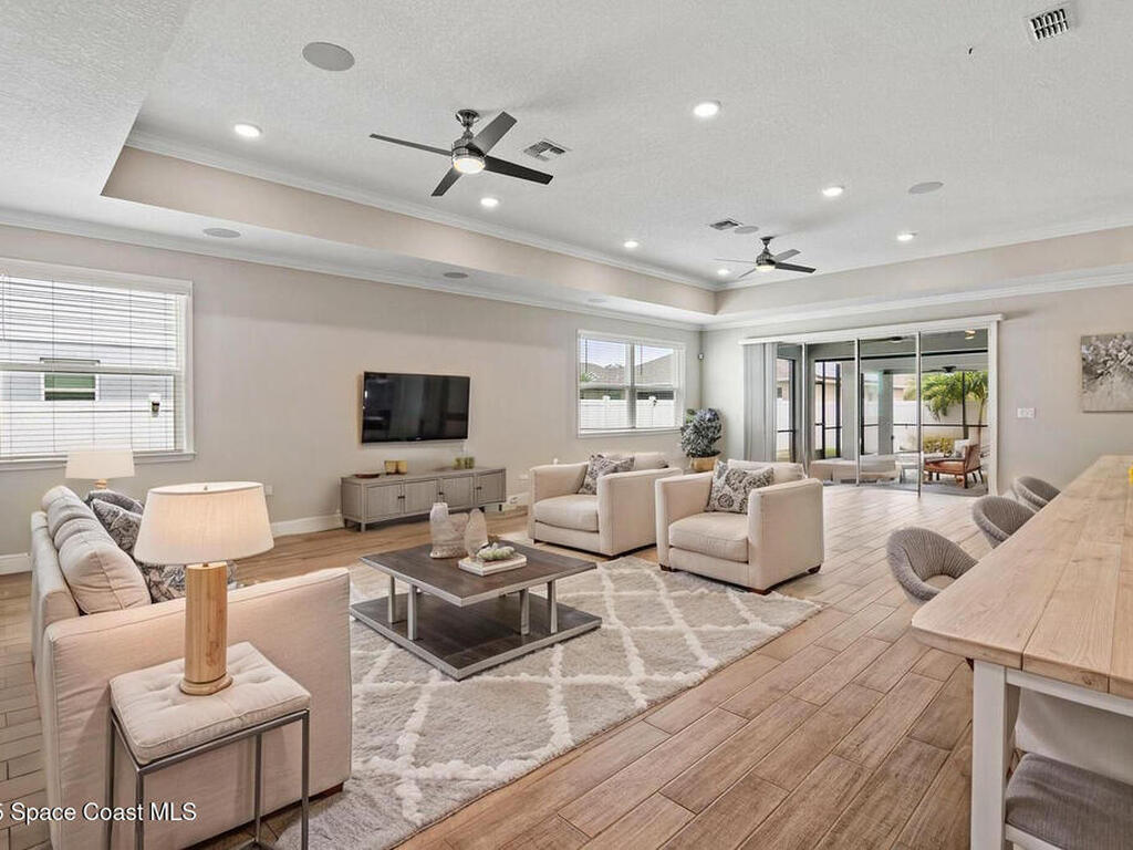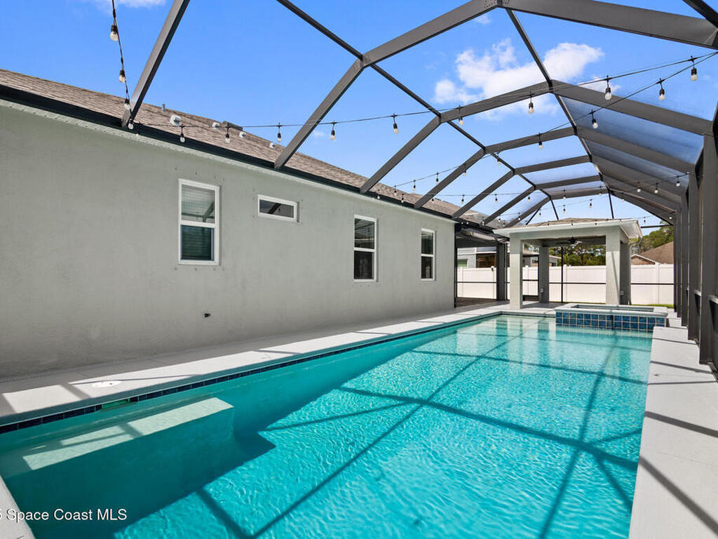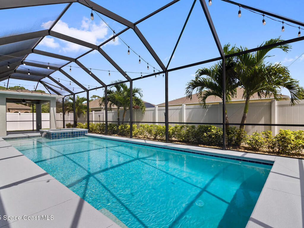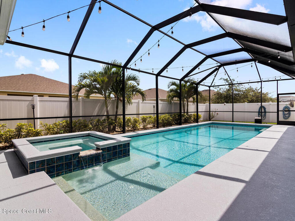 Welcome to Egrets Landing, one of Merritt Island's most sought-after communities! This spacious 4-bedroom, 3-bath home with a 3-car garage offers both comfort and style. The backyard is an entertainer's dream with a sparkling pool, relaxing spa, and custom stucco gazebo with tongue-and-groove wood ceiling--ideal for outdoor dining or lounging. Inside, enjoy a dedicated office, stainless steel appliances, crown molding, and elegant trim details. The primary suite features a luxurious walk-in closet, while Miami/Dade-rated windows, custom blinds, and ceiling speakers throughout add function and sophistication. A tankless gas water heater provides efficiency, and carpet/tile flooring completes the inviting design. This home is truly move-in ready and waiting for you!