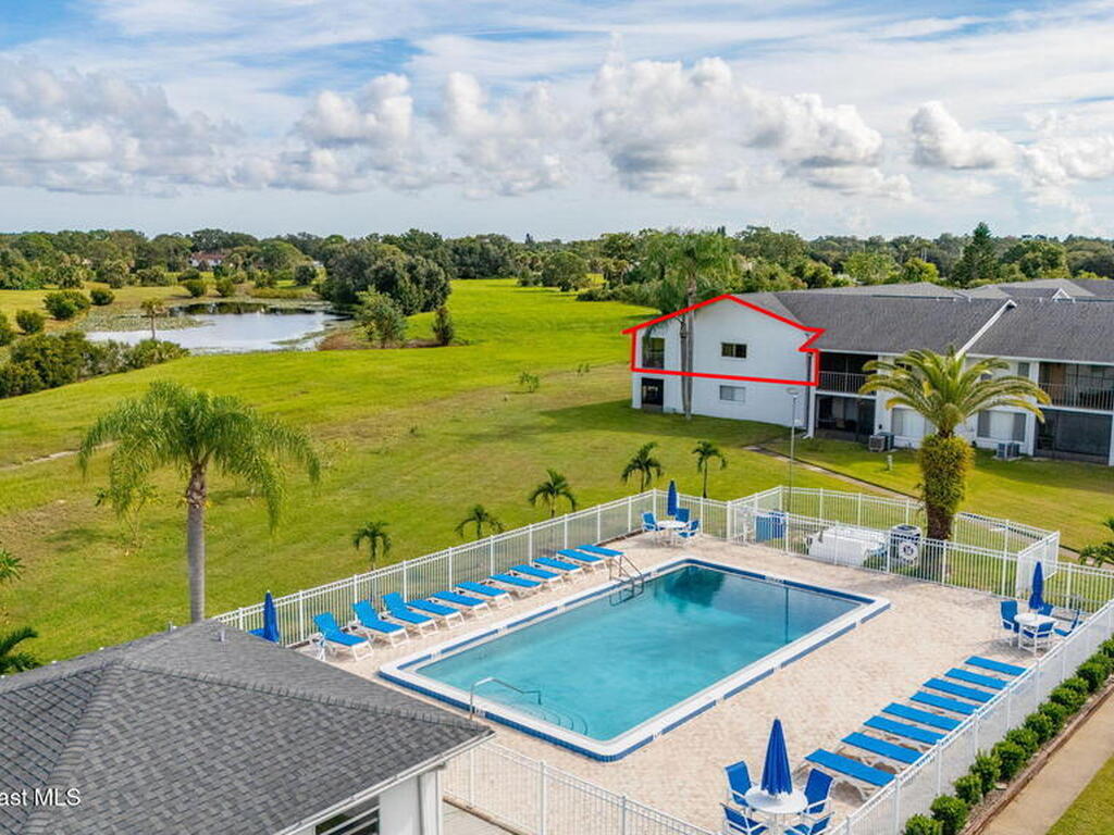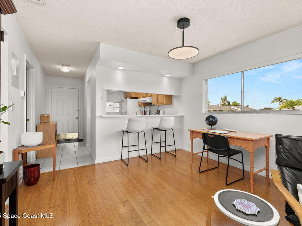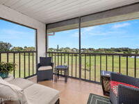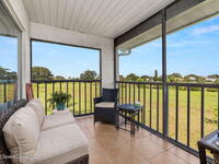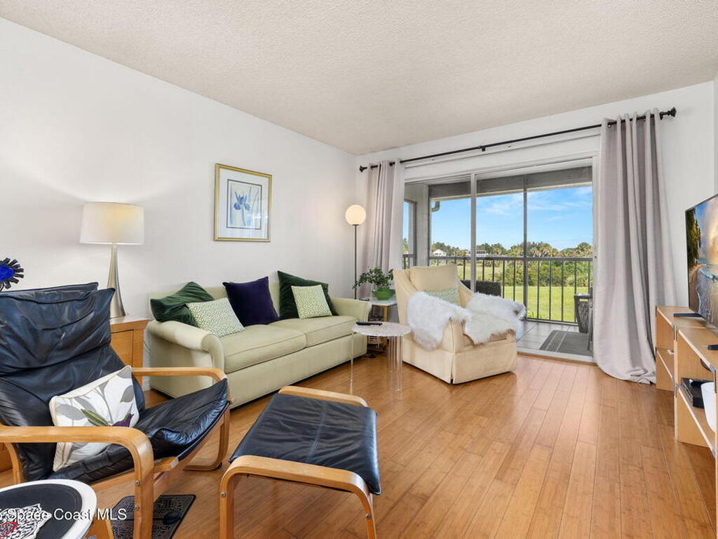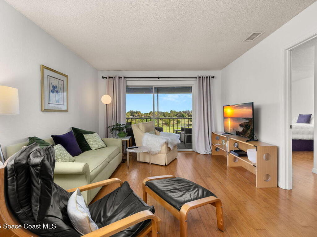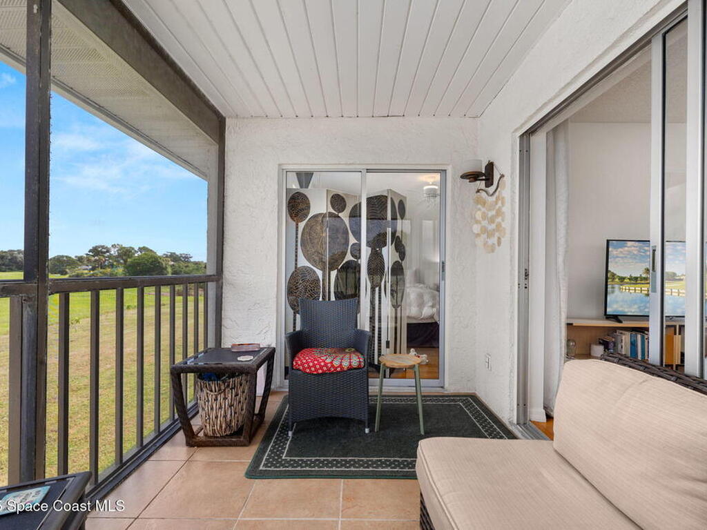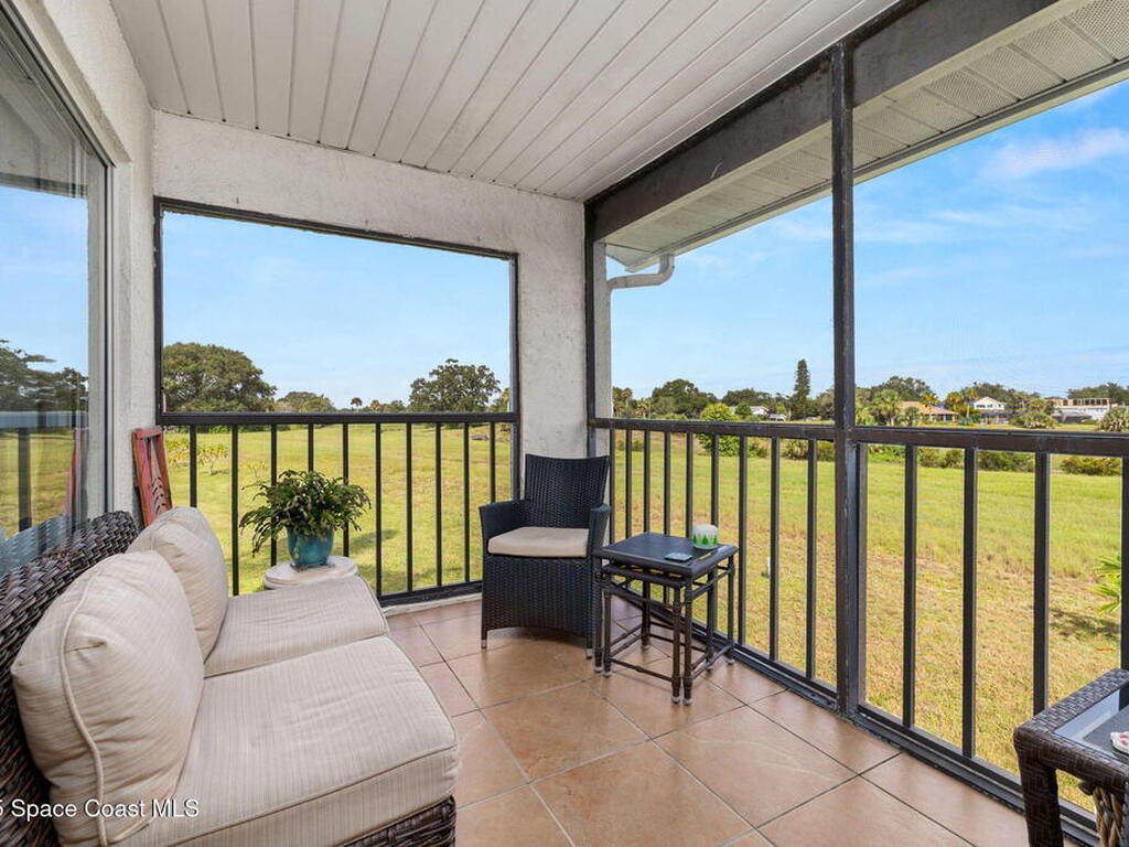 Experience Florida living at its best in this beautifully updated partially furnished corner-unit condo with western exposure, where you can enjoy gorgeous sunsets from your private screened balcony overlooking the former Royal Oak Golf Course. This 2-bed, 2-bath home features an updated kitchen with Wellborn cabinets, white quartz countertops, upgraded appliances, modern lighting, and bamboo wood flooring throughout. The primary suite offers a walk-in shower while the guest bath includes a tub/shower combo. Convenience is key with an in-unit LG washer & dryer (2024), plus peace of mind from recent updates: tankless water heater (2024), updated electric panel (2024), and A/C with heat pump (2016). Enjoy year-round sunshine at the heated community pool or watch rocket launches right from your balcony. This pet-friendly community allows two pets up to 24 lbs, making it the perfect blend of comfort and lifestyle. Don't miss your chance at purchasing this charming coastal retreat!