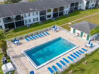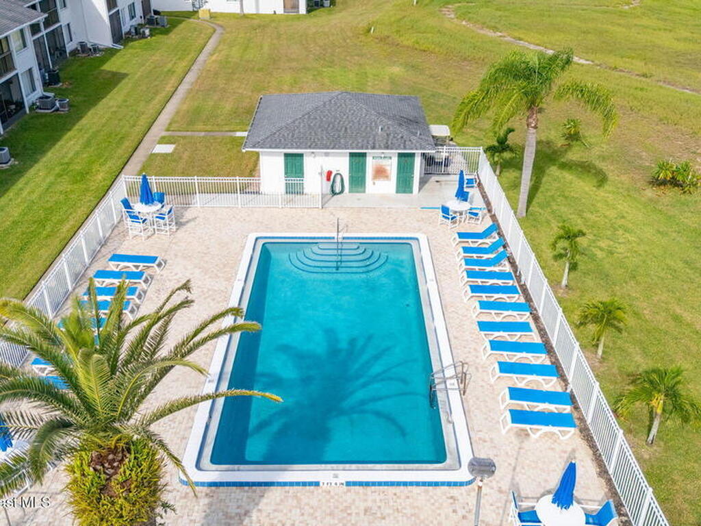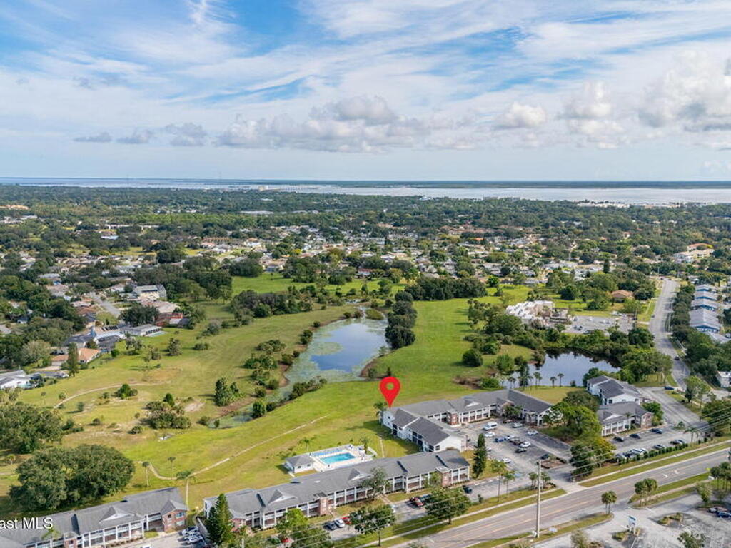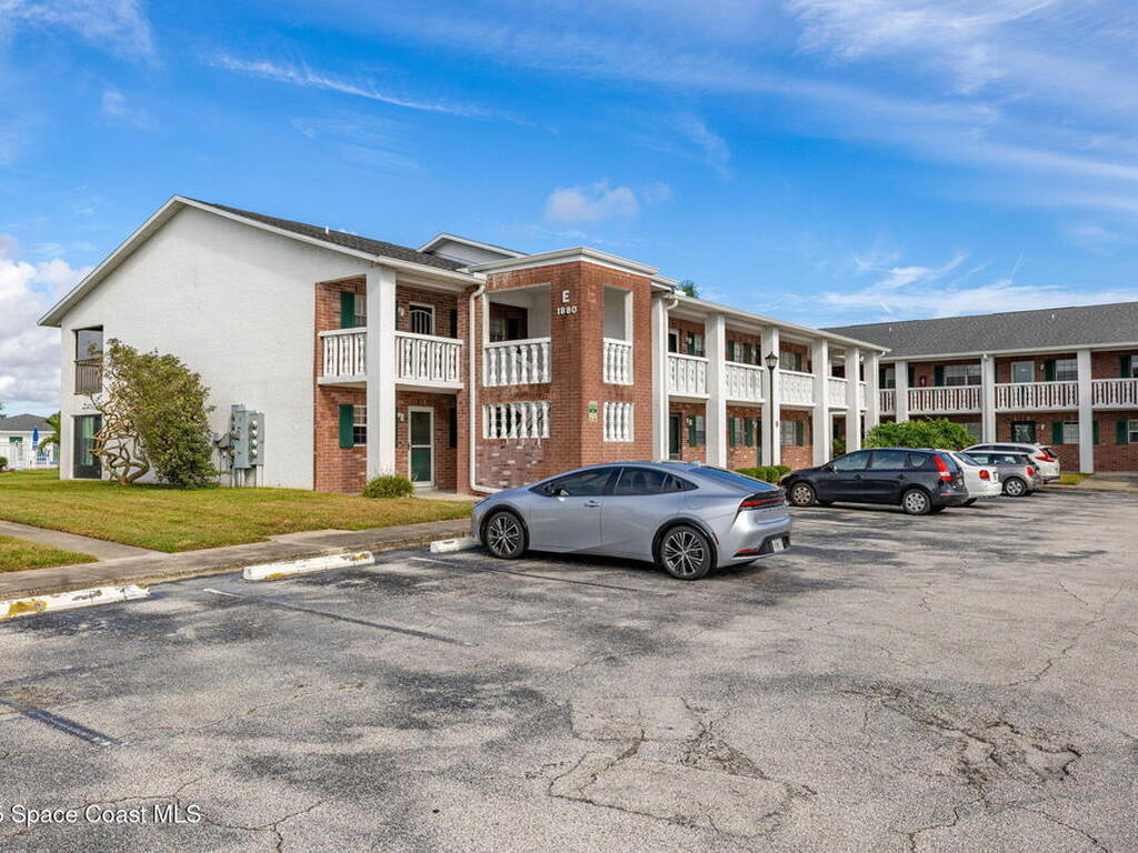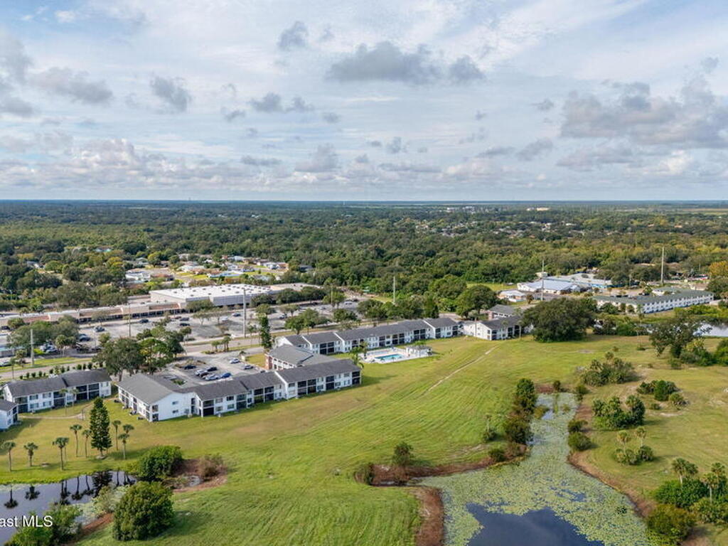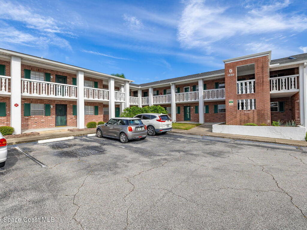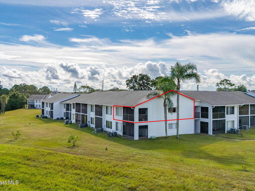 Experience Florida living at its best in this beautifully updated partially furnished corner-unit condo with western exposure, where you can enjoy gorgeous sunsets from your private screened balcony overlooking the former Royal Oak Golf Course. This 2-bed, 2-bath home features an updated kitchen with Wellborn cabinets, white quartz countertops, upgraded appliances, modern lighting, and bamboo wood flooring throughout. The primary suite offers a walk-in shower while the guest bath includes a tub/shower combo. Convenience is key with an in-unit LG washer & dryer (2024), plus peace of mind from recent updates: tankless water heater (2024), updated electric panel (2024), and A/C with heat pump (2016). Enjoy year-round sunshine at the heated community pool or watch rocket launches right from your balcony. This pet-friendly community allows two pets up to 24 lbs, making it the perfect blend of comfort and lifestyle. Don't miss your chance at purchasing this charming coastal retreat!