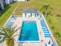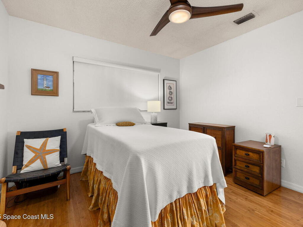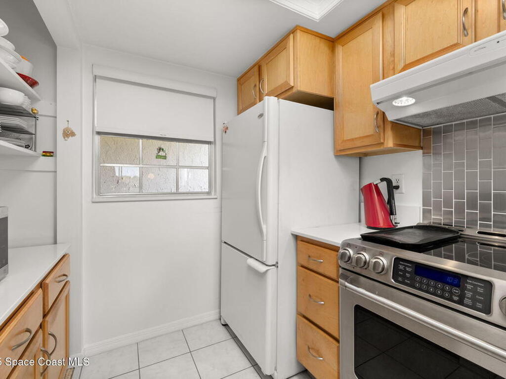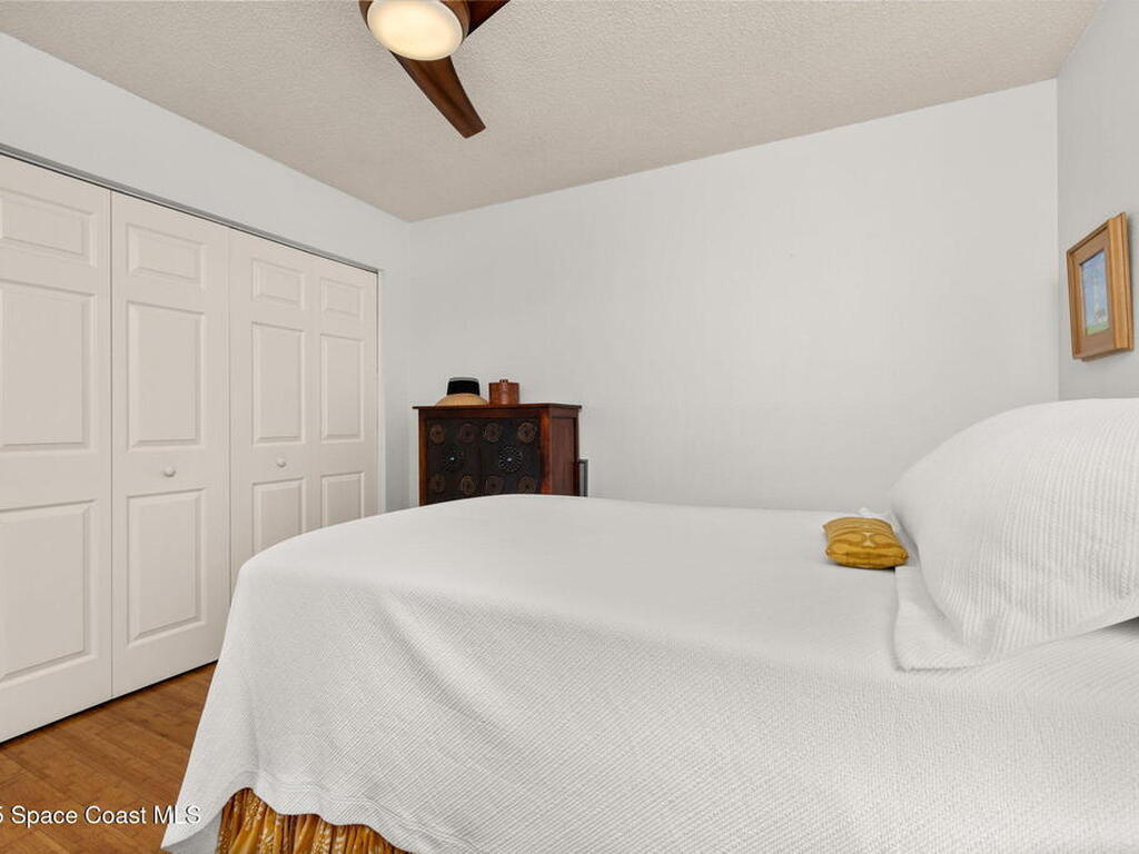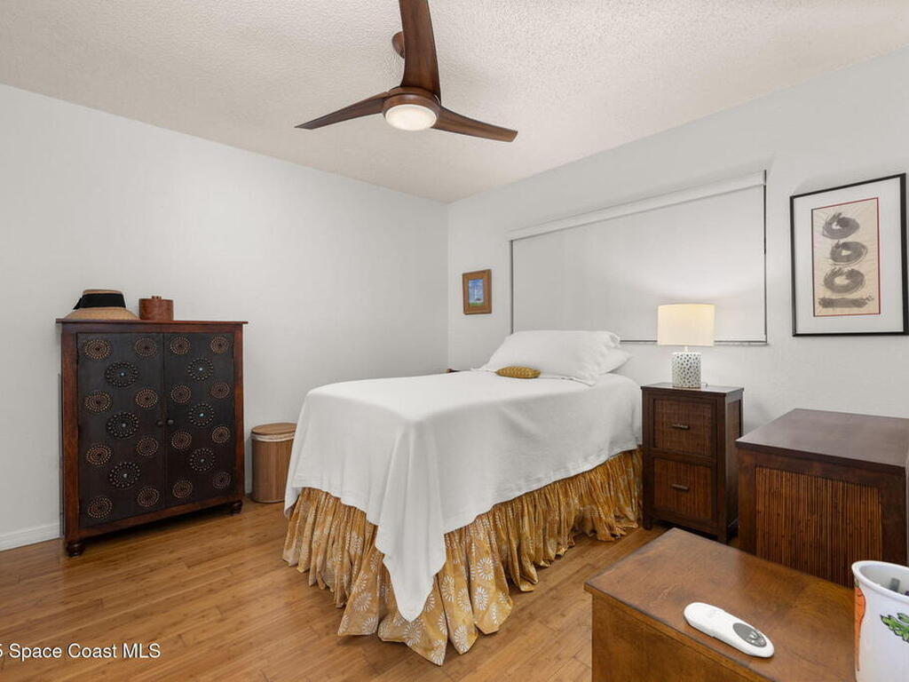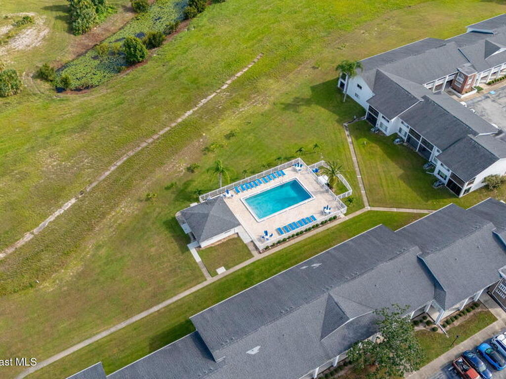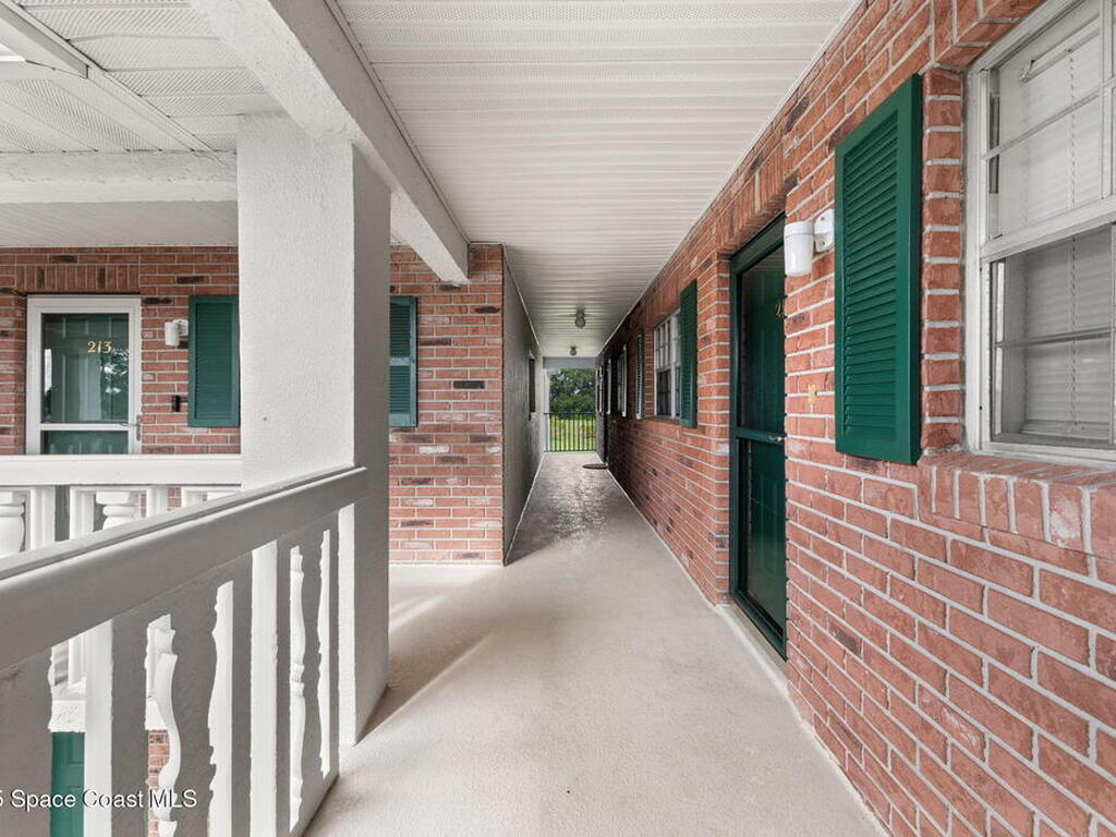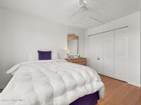 Experience Florida living at its best in this beautifully updated partially furnished corner-unit condo with western exposure, where you can enjoy gorgeous sunsets from your private screened balcony overlooking the former Royal Oak Golf Course. This 2-bed, 2-bath home features an updated kitchen with Wellborn cabinets, white quartz countertops, upgraded appliances, modern lighting, and bamboo wood flooring throughout. The primary suite offers a walk-in shower while the guest bath includes a tub/shower combo. Convenience is key with an in-unit LG washer & dryer (2024), plus peace of mind from recent updates: tankless water heater (2024), updated electric panel (2024), and A/C with heat pump (2016). Enjoy year-round sunshine at the heated community pool or watch rocket launches right from your balcony. This pet-friendly community allows two pets up to 24 lbs, making it the perfect blend of comfort and lifestyle. Don't miss your chance at purchasing this charming coastal retreat!