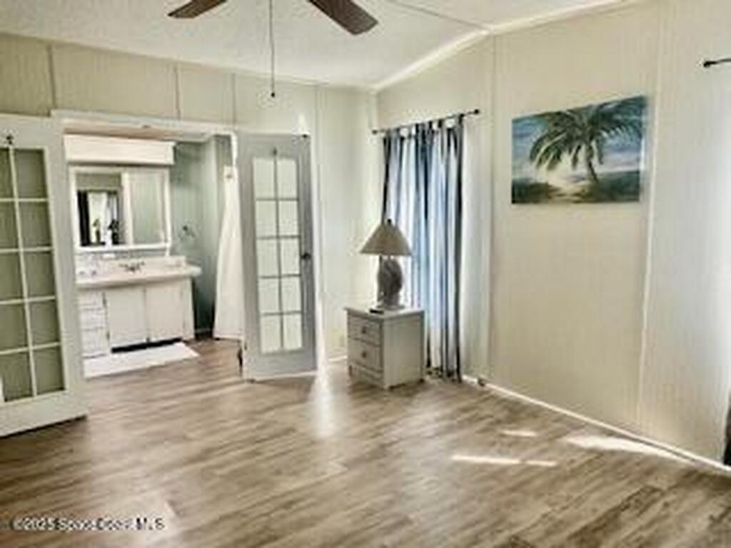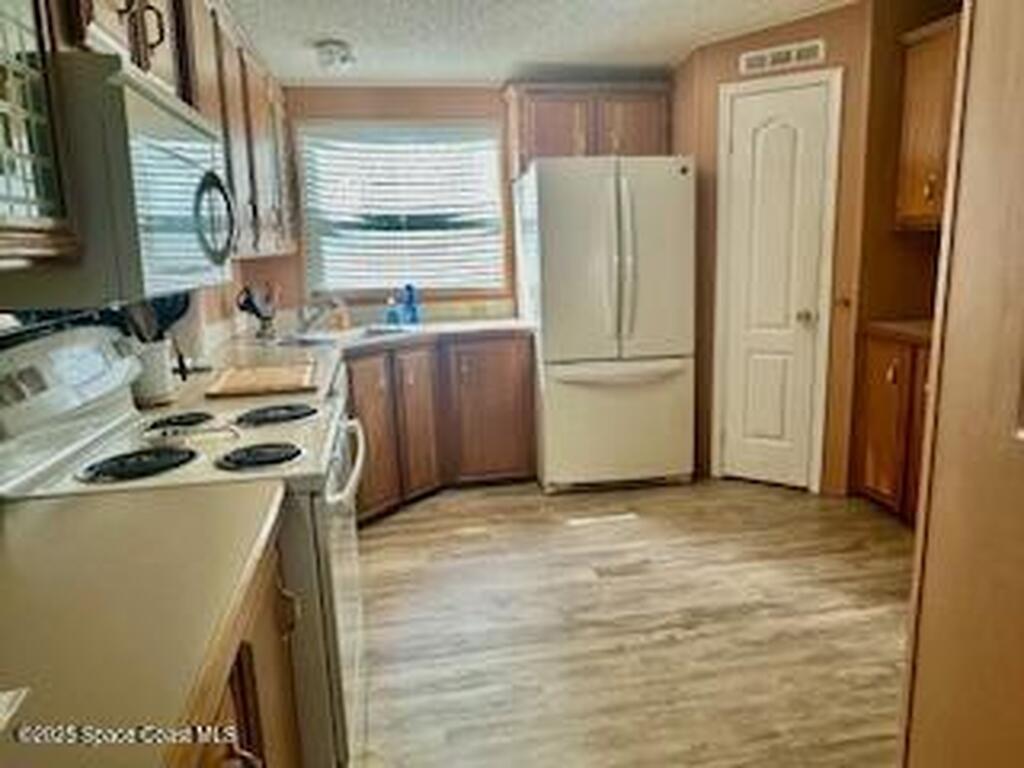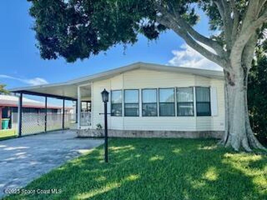 NEW PRICE -NOW $155, 000.00!!!This home has a lovely open floorplan featuring an open kitchen, dining and living room. It's located on a very pretty street in the floral section, close to everything-shopping, golf, pools, fun, and our restarants. Many updates have been done, but you'll love the newer metal roof, new HVAC, updated skirting, plumbing update, a conveniant zero entry main shower and new tiedowns. Rooms are good sized and the ramp is removable. This is a nice one you don't want to miss. Enjoy Barefoot Bay with all it's groups, 18 hole golf, pickleball, dances, food options, ocean beach, lagoon lit pier and so much more!! A fun lifestyle where you can choose your fun awaits!