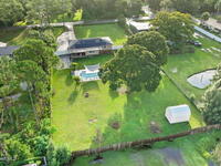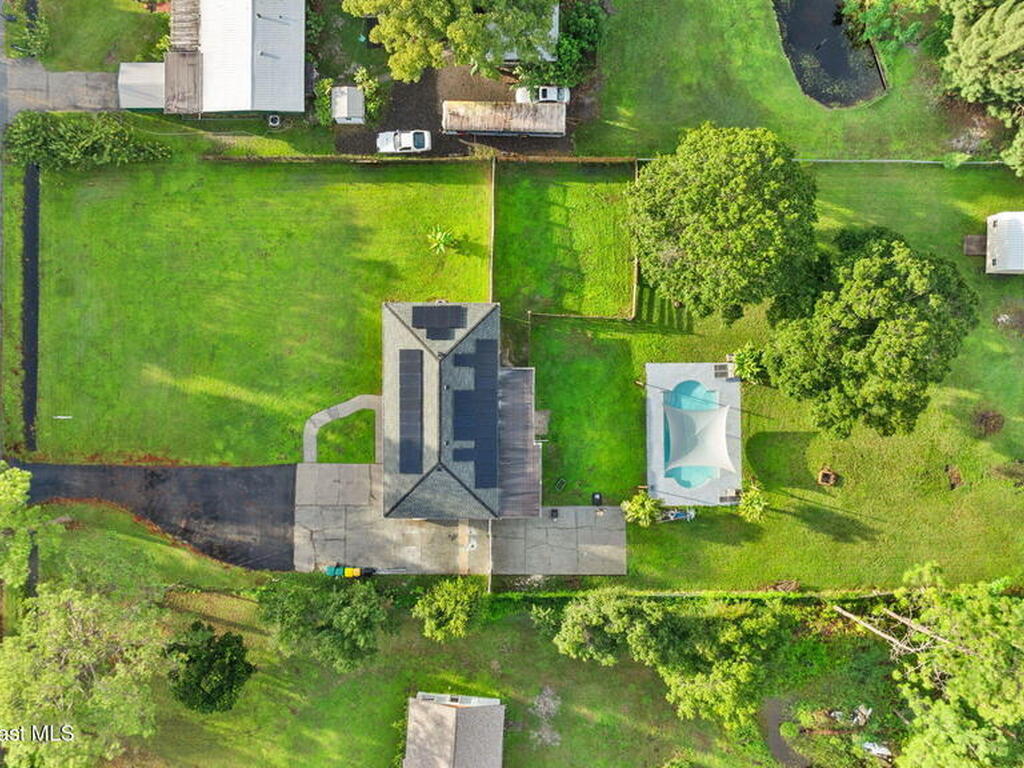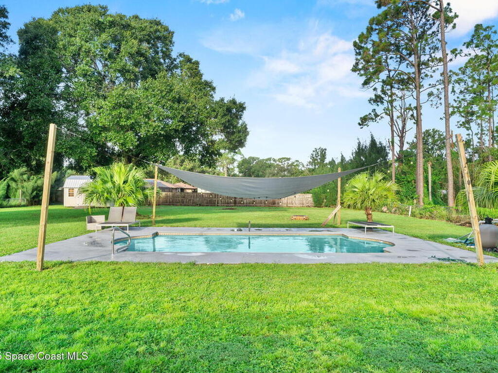 SOLAR PANELS WILL BE PAID IN FULLWelcome Home! House has been professionally cleaned and is just waiting for you to move in! This 3-bedroom, 2-bathroom POOL (salt water) home is packed with upgrades and ready for its next owner. Enjoy energy savings with solar panels, and peace of mind with a new roof (1 year old), HVAC (2022), and a tankless hot water heater for endless hot showers.The 0.85 acres allows a large front yard AND the fully fenced backyard features a separate dog corral, perfect for pets while entertaining guests. An extended driveway with a double gate allows easy access to store a boat, vehicle, or trailer. Inside, you'll find fresh paint, a water softener, and storm shutters for added protection.The eat in kitchen has barn doors that lead to a flex room. The garage has been converted into an additional bedroom with a wall-unit AC, but can easily be returned to garage use if desired. The well (2 years old) provides reliable water service