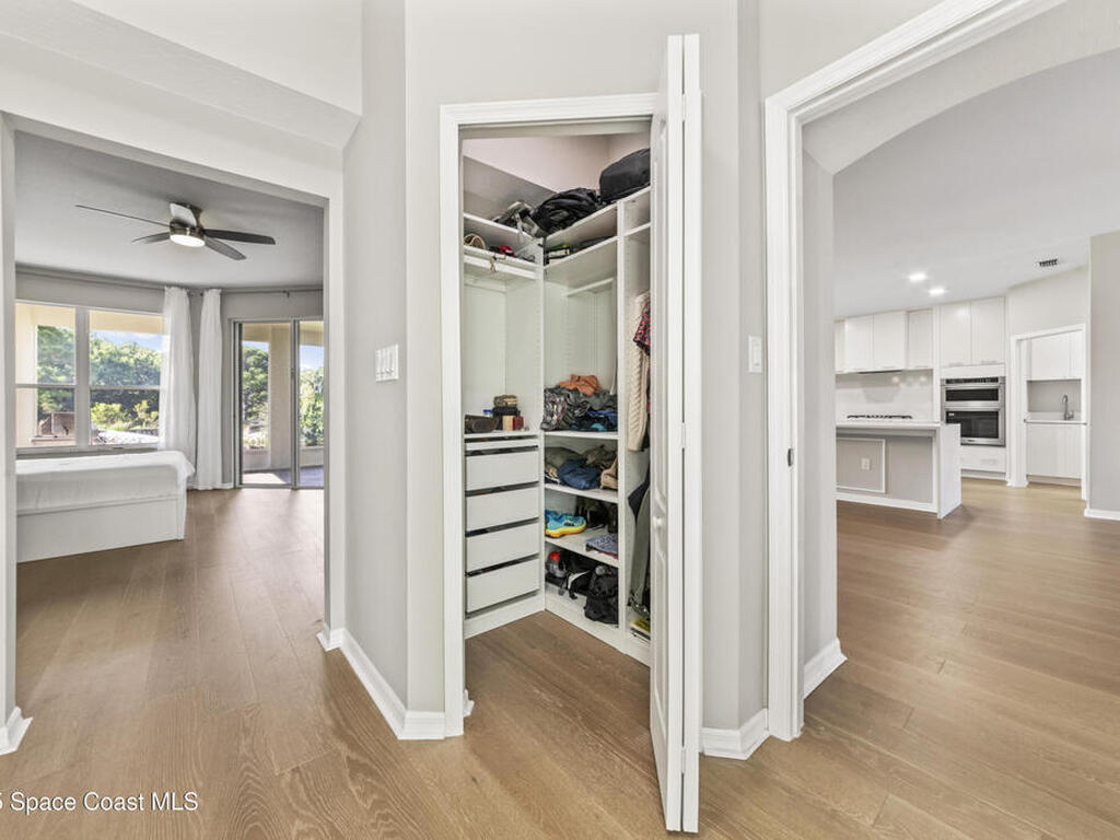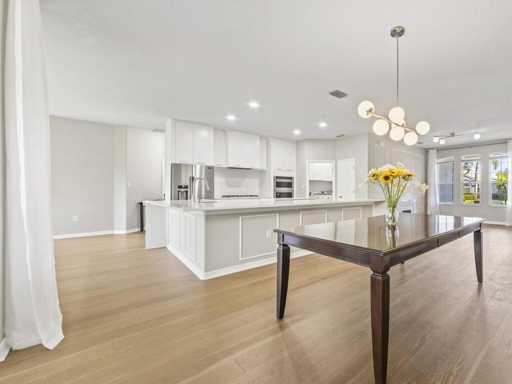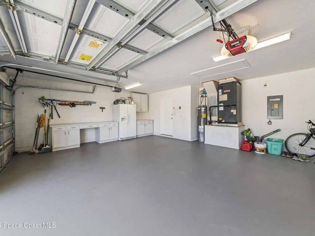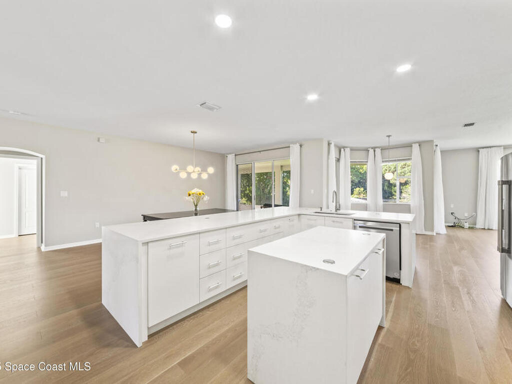 Fully renovated 4 bed/2 bath/3 car garage, 2, 570 sq ft waterfront home in peaceful Suntree. Enjoy manicured landscaping & perennial flowers upon entry. Upgrades include wide plank oak hardwood floors, quartz countertops, & soft-close cabinetry. The chef's kitchen features stainless steel appliances, gas cooktop, large pantry, & wrap-around island. Bathrooms have microcement finishes--no grout to clean! The master suite offers a quartz-surrounded jetted tub & walk-in shower. Built-ins provide ample storage throughout. The finished garage includes built-in storage, a workshop area, & extra fridge. Details include wall moldings, electric fireplace, marble handles, & coordinated nickel finishes. Recent roof, water heater, & A/C. Shutters included. Low HOA offers pools, tennis courts, playground, & clubhouse. The lot faces a nature preserve with water views & beautiful sunsets. Enjoy wildlife from your screened porch in this move-in ready retreat, close to top schools & I-95.