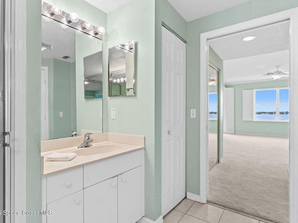 Resort-style living awaits at Oleander Pointe, a premier riverfront community conveniently located just steps from Historic Cocoa Village! This 2BR/2BA ( the larger 2 BR floor plan) 6th-floor unit offers direct Indian River views & is ready for a new owner's personal touch. Features include an eat-in kitchen with white cabinets/appliances, a spacious primary suite complete with custom built-ins, plantation shutters, balcony access. The primary bathroom is complete with a soaking tub + walk-in shower. Enjoy a private balcony with electric hurricane roll-down shutters--perfect for watching spectacular rocket launches, wildlife & July 4th fireworks! Secure lobby entry, garage parking & amenities galore: pool, spa, sauna, gym, clubhouse, tennis, pickleball & more. Pet-friendly (2 pets up to 35lbs). Enjoy marina access or stroll over to Cocoa Village festivals, concerts, events & delicious dining options. World-famous Cocoa Beach is just minutes away. Schedule your showing today!!