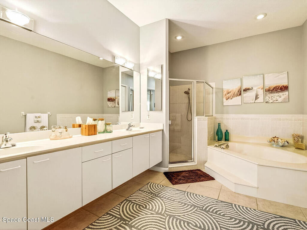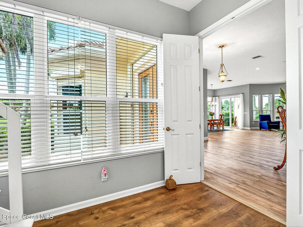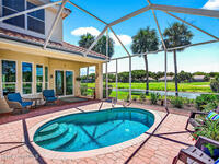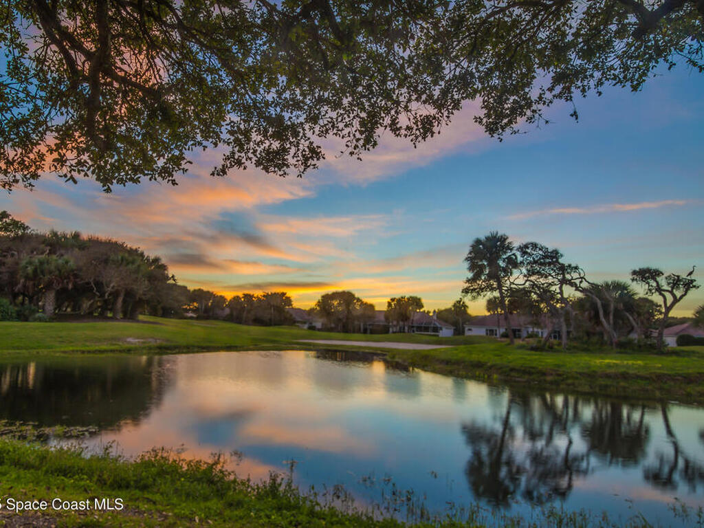 Welcome to Osprey Villas at Aquarina Beach & Country Club - where sweeping golf and water views meet resort-style living. Tucked at the end of a quiet cul-de-sac, this spacious 4BR/3BA villa offers one of the largest floor plans & effortless indoor-outdoor living. Enjoy golden sunsets & tranquil water views from almost everywhere. The main level features vinyl plank flooring, impact windows/sliders, a generous living/dining area, eat-in kitchen, owner's suite with direct access to the pool, guest room/den plus a full bath. Upstairs, 2 bedrooms, a guest bath, loft office, and media/bonus room create a perfect space for hosting family & friends. With a newer roof (2024), 2 car garage & panoramic views throughout, this home is a rare opportunity & ideal seasonal escape.Enjoy beach, golf, tennis, fitness, riverfront amenities in this gated ocean-to-river community offering resort-style living on Florida's Space Coast, where rocket launches & sea turtles hatchlings are part of the view.