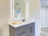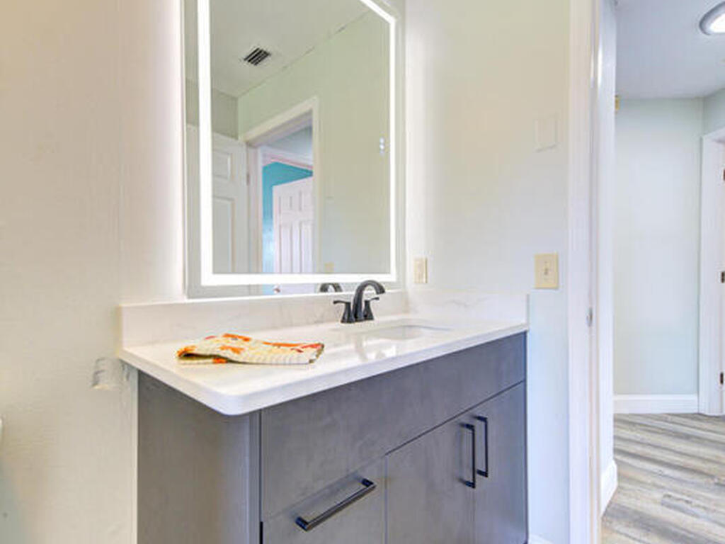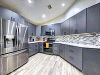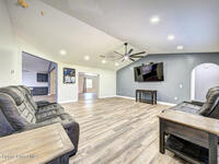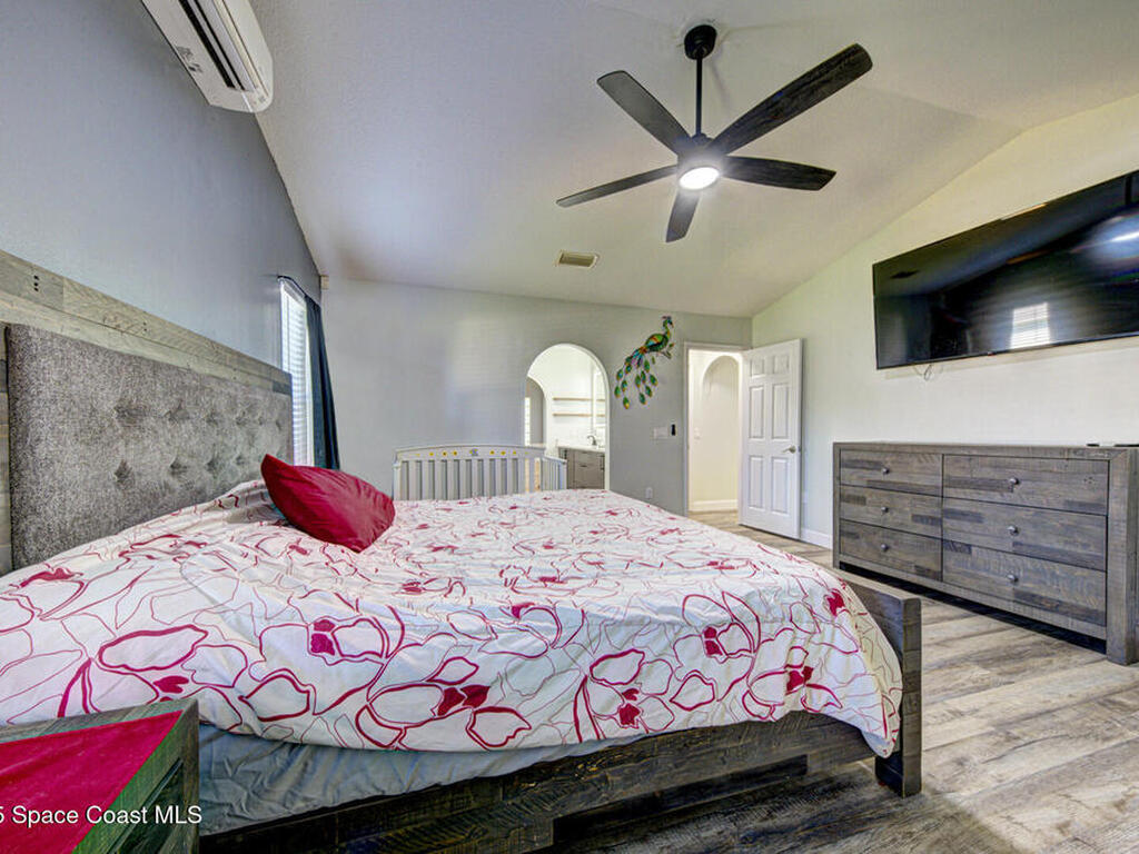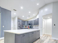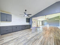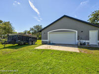 Beautifully updated 3 Bedroom 2 Bath 4 Car Garages (2 car attached & 2 car detached) w/ detached workshop located on 1 acre lot in Canaveral Groves. This home has plenty of room w/ 2644 sqft under air (enclosed porch for family room) 3161 sqft under roof plus a detached 30x30 garage/workshop. Offers open floor plan, vaulted ceilings, split plan, new remodeled gourmet eat-in chef's kitchen w/black SS appliances double oven range w/built in air fryer, custom cabinetry, pantry, huge island & quarts countertops. New LVP flooring throughout home, new bathroom vanities, faucets & drains, Roof replaced 2023, new gutters 2023, new 18 seer AC 2019, 2 mini splits added 2024, New water heater 2024, exterior paint 2025, septic emptied 2024, whole house solar powered (solar panels 20 yr warranty - $278.54 monthly & for the entire lease term). Detached garage/workshop roof replaced 2023, garage door replaced 2025, workshop has 100 amp service and 220 power. Property cleared and fenced