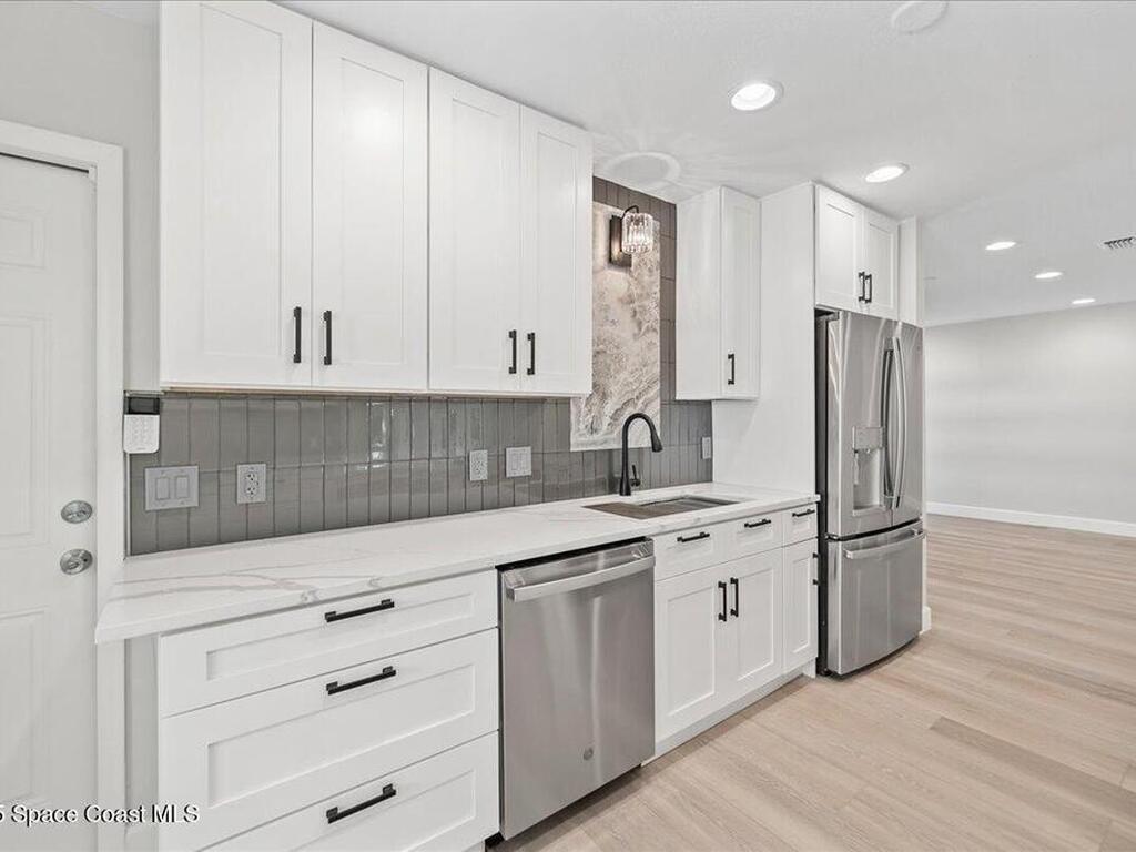 Nestled close to A-rated schools and great dining and shopping, this beautifully updated residence is designed for modern, comfortable living. The home features luxury vinyl flooring, recessed lighting and a gourmet kitchen with quartz countertops, tile backsplash, stainless steel appliances and a breakfast bar. A large flex room offers versatile space for an office, dining area or playroom. The primary suite includes a walk-in closet, dual vanities and a walk-in shower. Additional highlights include a laundry room with quartz folding table, epoxy-coated garage floor with stainless sink. With a new roof (2022), A/C (2023) and whole-house replumbing supply lines (2022), enjoy stress-free living. The outdoors impresses with a screened porch, THOR summer kitchen, pergola with fire pit and private side gate for RV or boat storage, all set on a professionally landscaped, low-maintenance yard.