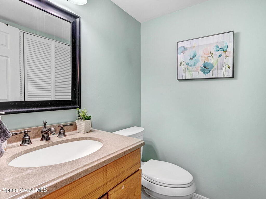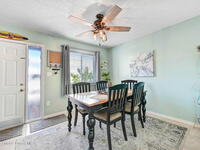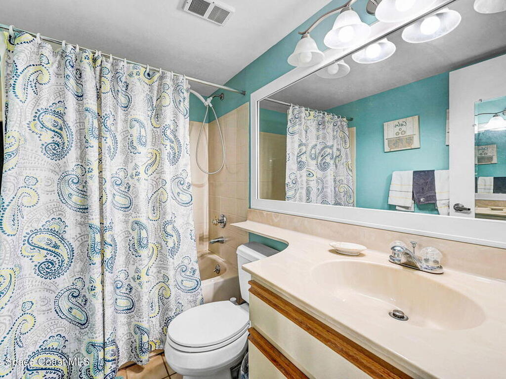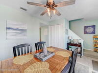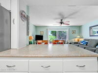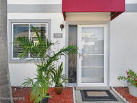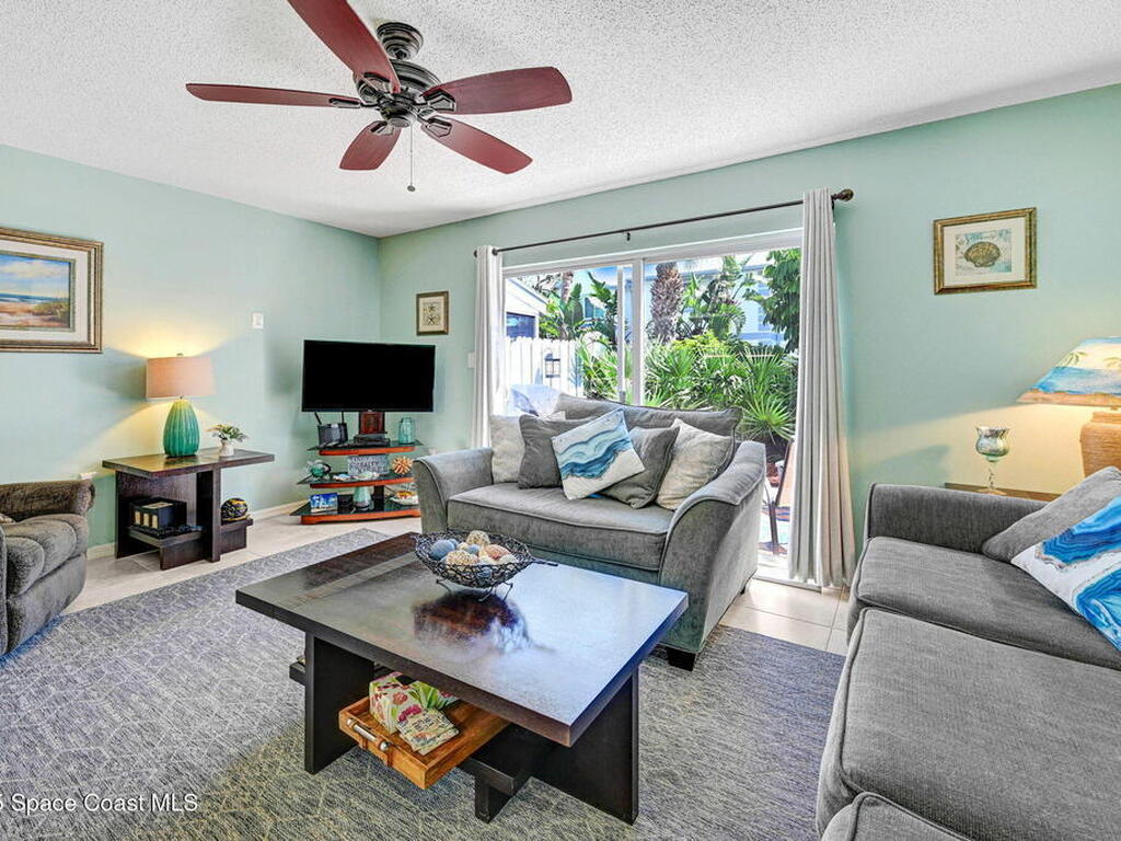 Lush Tropical Resort Property LOADED with amenities AND on the Best Beaches of the Space Coast! Everything you want to enjoy is here--Rocket launch viewing, 3 pools, tennis & thriving Pickleball league. Oceanview Deck, Basketball/racquetball, car wash, Gym at the Clubhouse Private Beach access. Peacocks strut around and the grounds are beautifully maintained. Perfect central location! Turn Key ready to enjoy!Freshly painted throughout- Tasteful beachy decor that's classy & comfortable, too. All appliances included, many are newer. Tile downstairs, Vinyl Planking upstairs. New toilets installed. Newer Bosch dishwasher, new receptacles throughout. New Larson Hurricane rated sliding glass door. That door leads to lovely, private back area that has room to grill and hang out. 2 designated parking spaces as well as nearby guest parking are helpful. Port Canaveral is very nearby and loaded with restaurants and entertainment and cruise ships of all kinds. BEACHLIFE is here for YOU.