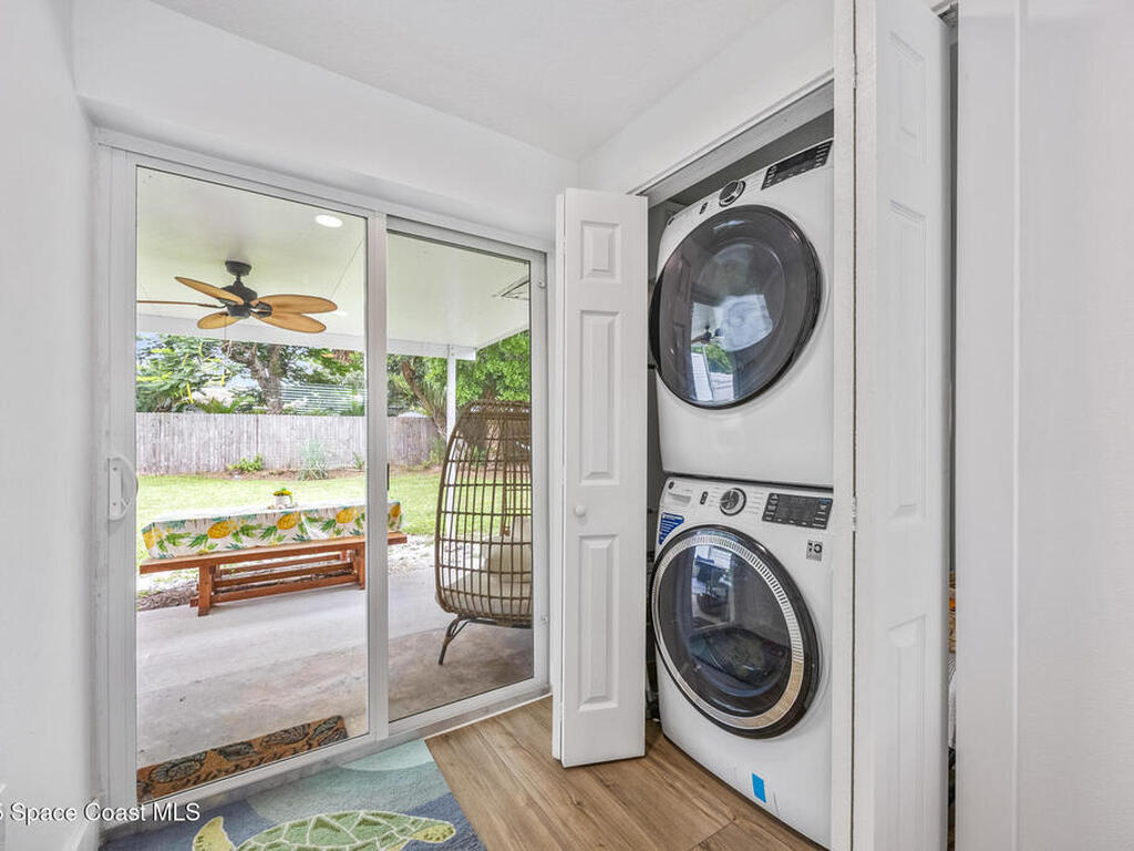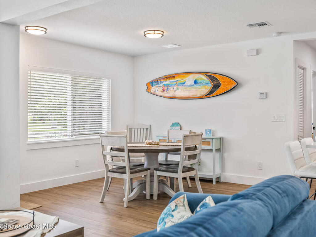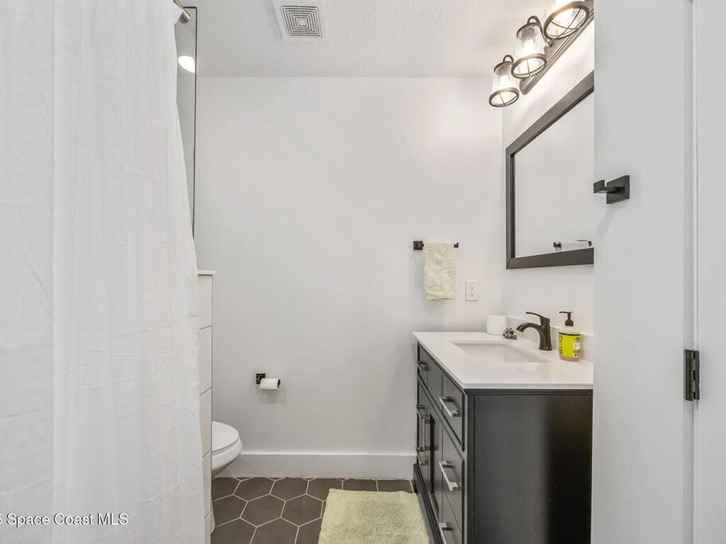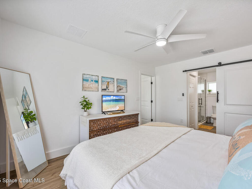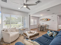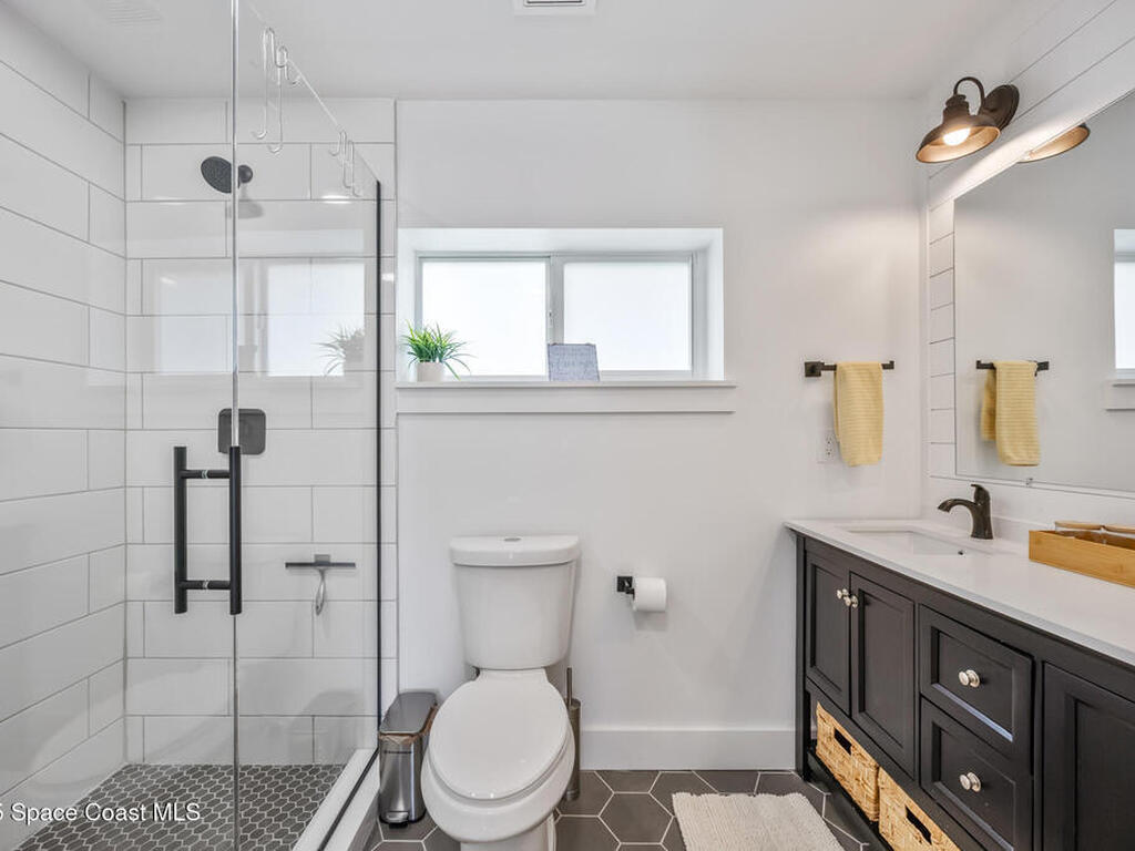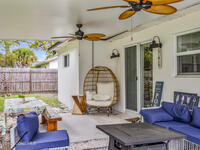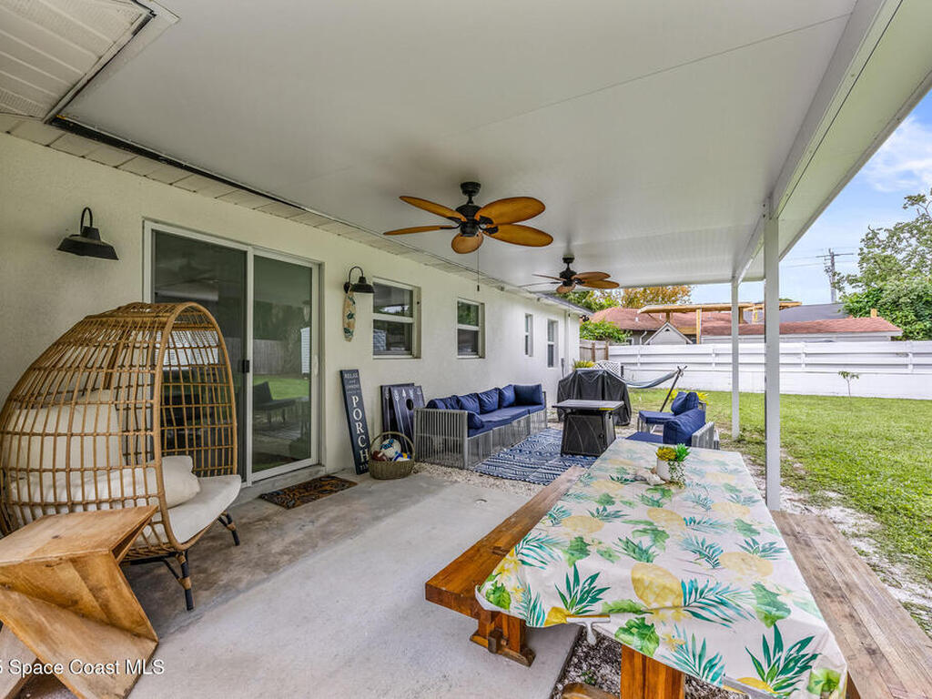 This stylish home is fully renovated & perfectly located w/ a quick hop to the beach, Melbourne airport, downtown Eau Gallie, shopping & more! Nestled in a quiet, coveted neighborhood near scenic Ballard Park, you can walk to the Eau Gallie River & enjoy sunrises, boat ramp, fishing, tennis, playground & more. This 3 bdrm, 2 bathroom home has an open floor plan with very nice flow, great for entertaining. The home has all the modern finishes - quartz countertops, tile flooring/shower surrounds, LVP flooring, breakfast bar, barn door, 2024 roof & HVAC, updated plumbing, on demand hot water heater. The wide open backyard has plenty of room for a pool & a large, high quality awning that you could screen in to make a Florida room. The property has low maintenance landscaping & ample room for parking your RV or boat! The home is perfect as a second home for snowbirds or full time living & in a true gem of a neighborhood. Currently a functioning vacation rental, furnishings are negotiable.