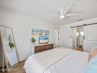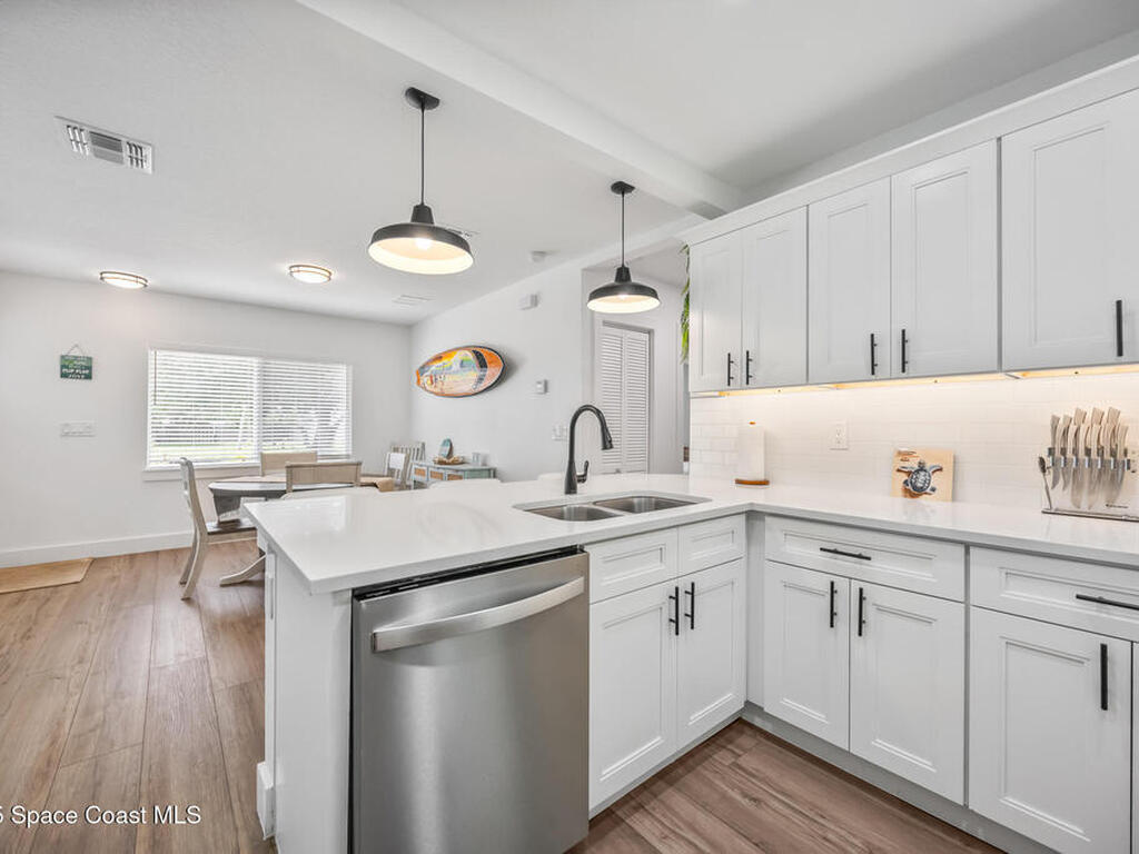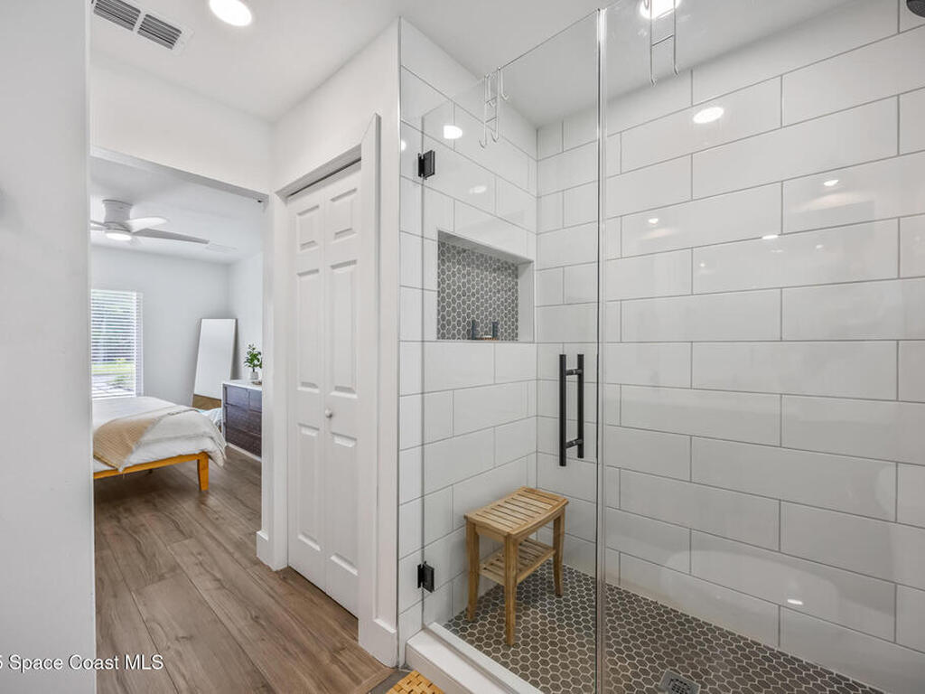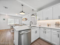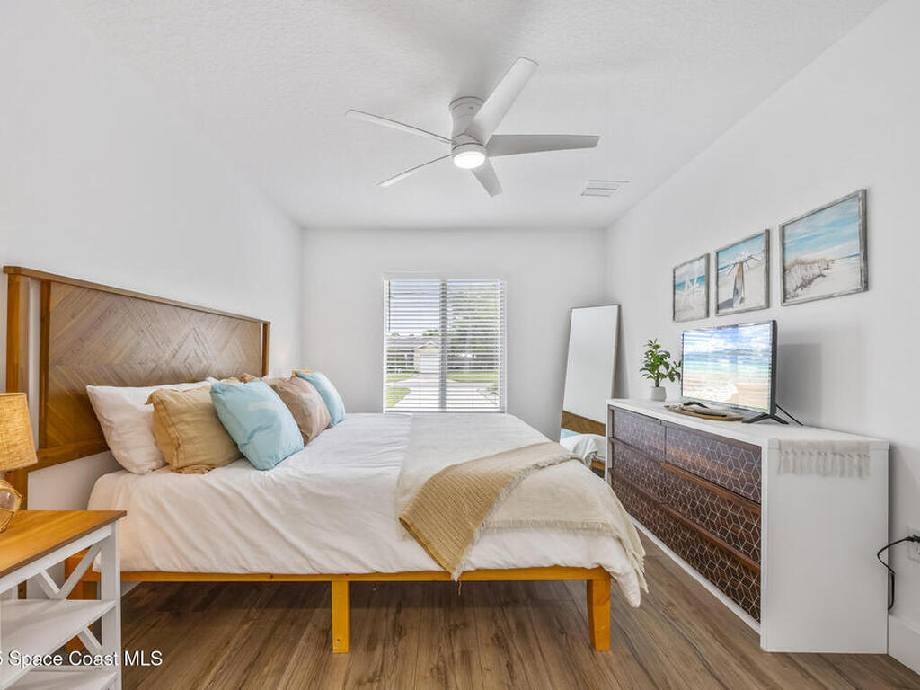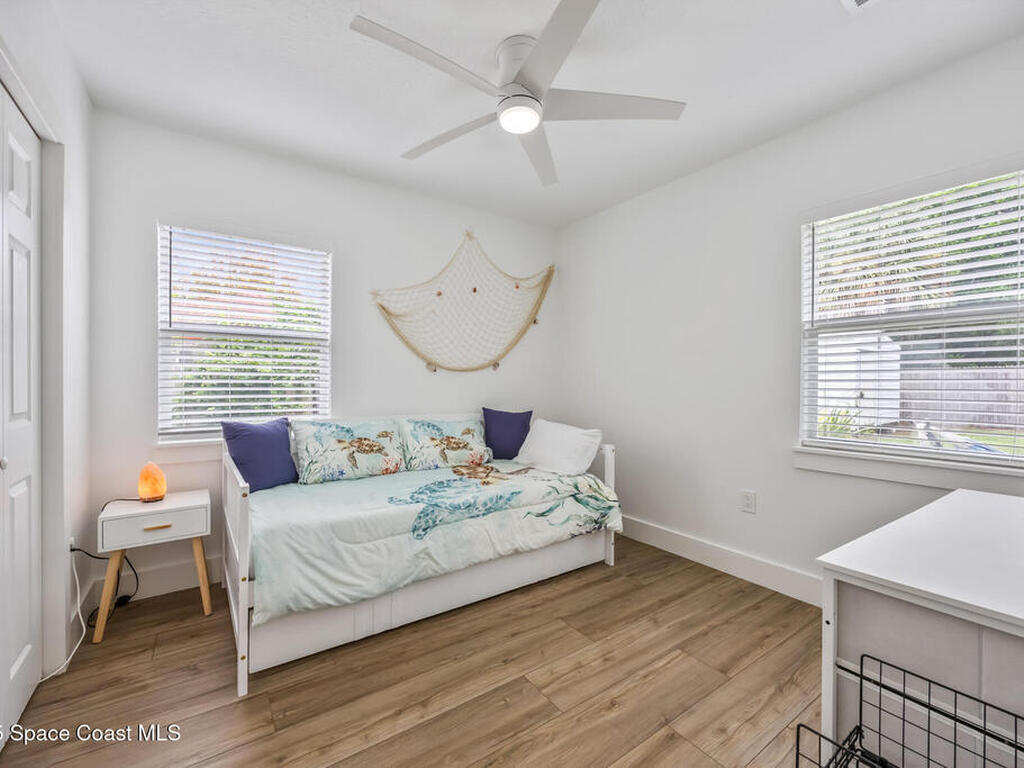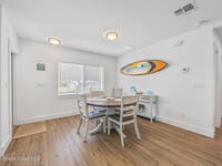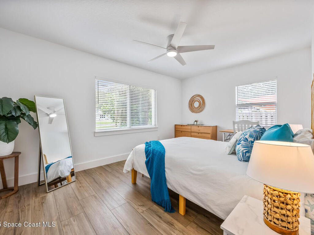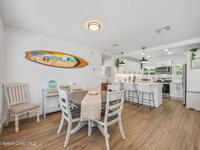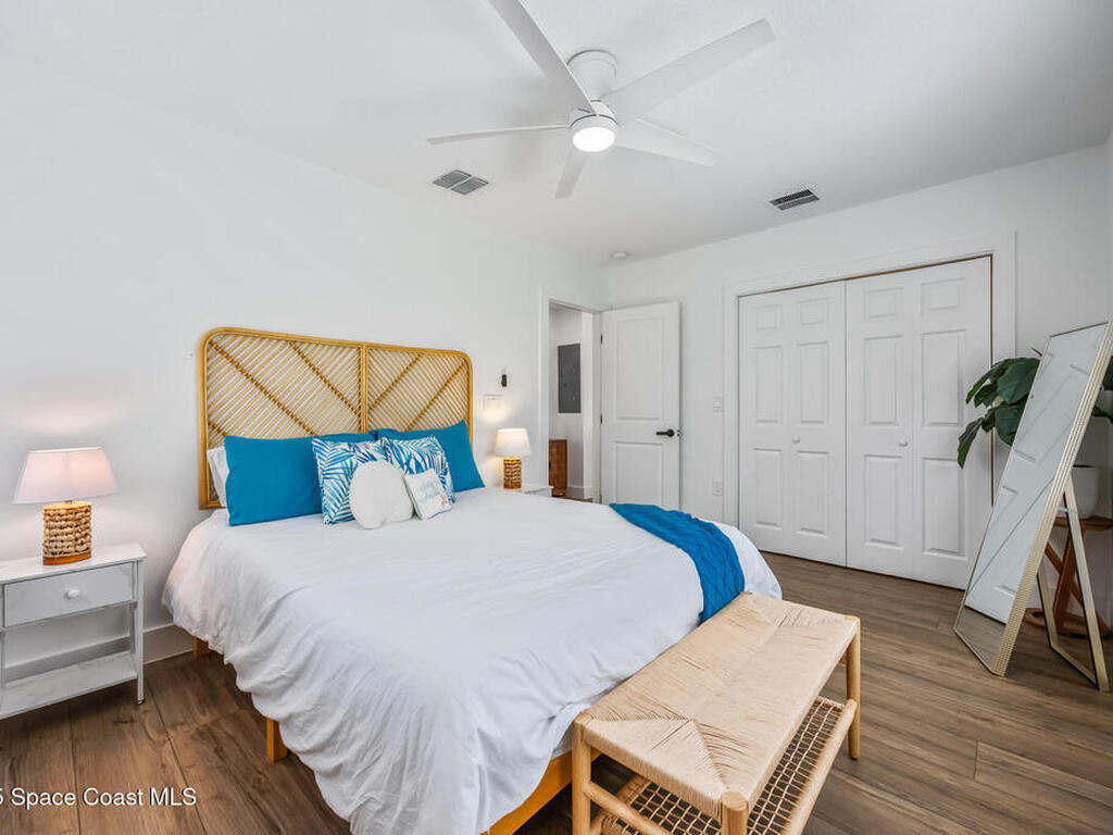 This stylish home is fully renovated & perfectly located w/ a quick hop to the beach, Melbourne airport, downtown Eau Gallie, shopping & more! Nestled in a quiet, coveted neighborhood near scenic Ballard Park, you can walk to the Eau Gallie River & enjoy sunrises, boat ramp, fishing, tennis, playground & more. This 3 bdrm, 2 bathroom home has an open floor plan with very nice flow, great for entertaining. The home has all the modern finishes - quartz countertops, tile flooring/shower surrounds, LVP flooring, breakfast bar, barn door, 2024 roof & HVAC, updated plumbing, on demand hot water heater. The wide open backyard has plenty of room for a pool & a large, high quality awning that you could screen in to make a Florida room. The property has low maintenance landscaping & ample room for parking your RV or boat! The home is perfect as a second home for snowbirds or full time living & in a true gem of a neighborhood. Currently a functioning vacation rental, furnishings are negotiable.