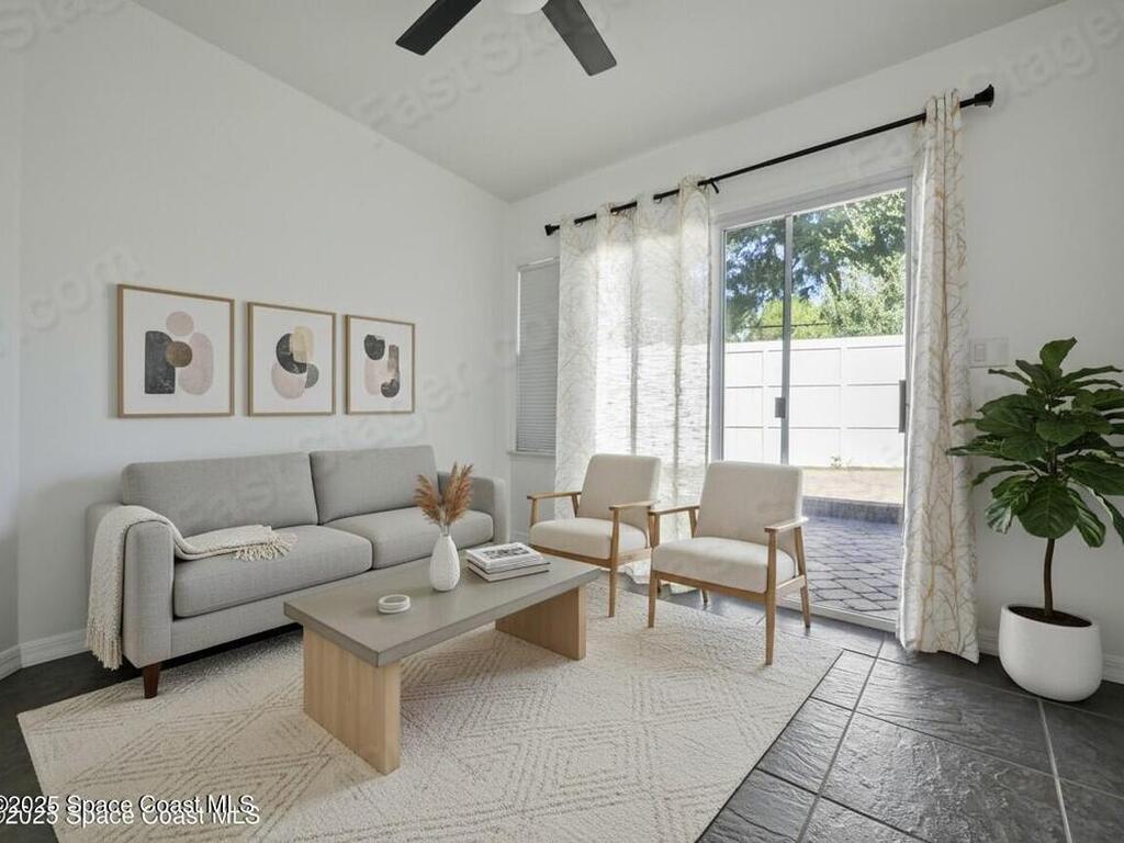 Charm meets convenience in this delightful 2 bedroom, 2 bathroom abode! Step into a world of warmth and comfort as you enter the open concept living space, perfect for creating lasting memories with loved ones. This home features an extra room which can be used as an office or an extra living area. It has vaulted ceilings which makes it light and airy. It has new appliances, new quartz countertops, updated kitchen, and a new roof. The house is a split bedroom plan for privacy and the master bedroom features a large walk in closet. This home has been freshly painted inside and out and has a beautiful paved driveway and back patio. The garage has plenty of storage and a convenient utility sink. Easily accessible to the community pool for relaxing. This location is really convenient to hop on 95 or just a short drive to the beaches or shopping.
