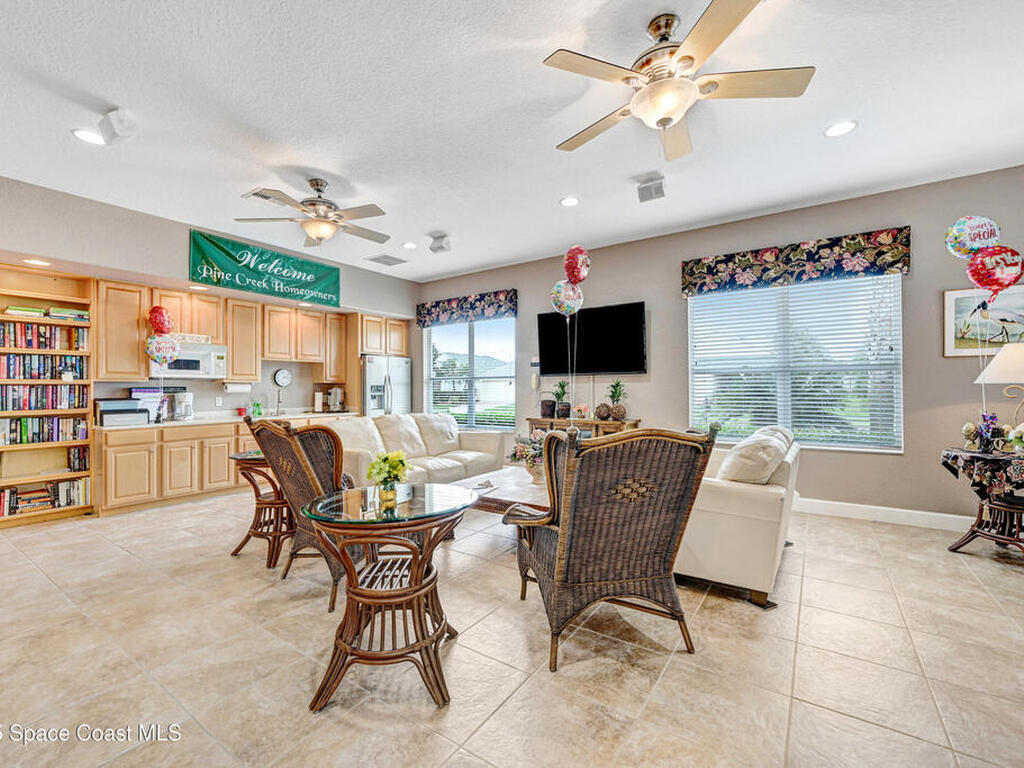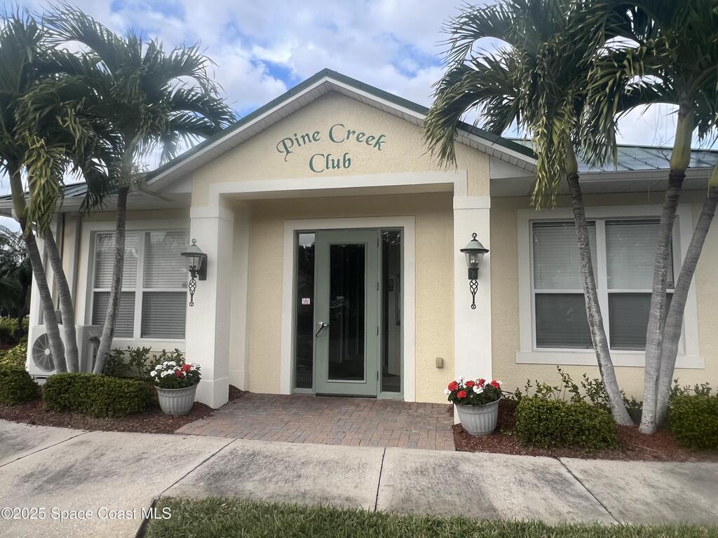 Please check this bright and welcoming 2-bedroom, 2-bath home in the highly sought, gated 55+ Pine Creek community. Enjoy an open living and dining area, a flexible bonus room perfect for an office or hobby space, and a sunroom filled with natural light. The primary suite offers comfort and privacy, while the second bedroom and bath are ideal for guests. New carpet in bedrooms and flex room. The white kitchen is the perfect backdrop for your personal accessories. Roof 2024 and AC 2023. Easy to operate accordion shutters makes buttoning down a cinch! Step outside to a paved patio for relaxing or entertaining. Low-maintenance living in this secure, active neighborhood with community amenities and your lawn care and exterior painting responsibility of HOA.