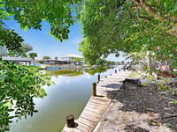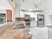 Discover navigable waterfront living here in North Waterway Estates! This large, updated 4 bedroom, 3 bath home sits on a navigable canal with room for a large boat and plenty of space to relax and entertain on your back patio! Inside, you'll find a remodeled kitchen with new white cabinets, granite countertops, backsplash, and stainless steel appliances. The main living areas feature tile flooring, while the bedrooms have laminate, so there's no carpet to worry about. The primary suite offers an oversized sitting area and an en-suite bath with a newer vanity with granite and a walk-in shower, plus sliding doors that open to the lanai. The fourth bedroom works perfectly as a guest or in-law suite with its own private bath. Important updates include: Roof (2024), garage door (2024), and a newer AC system, Large windows throughout bring in tons of natural light! Step outside to a spacious backyard deck, ideal for gatherings under the shade of your mature mango and oak trees. MORE..