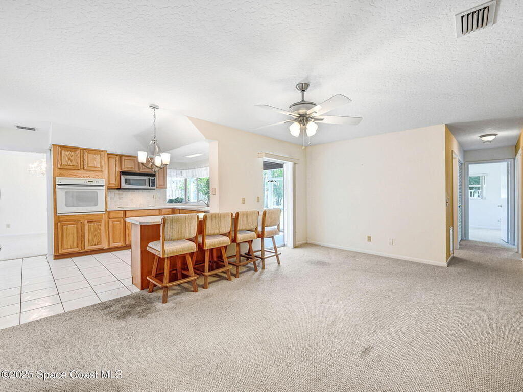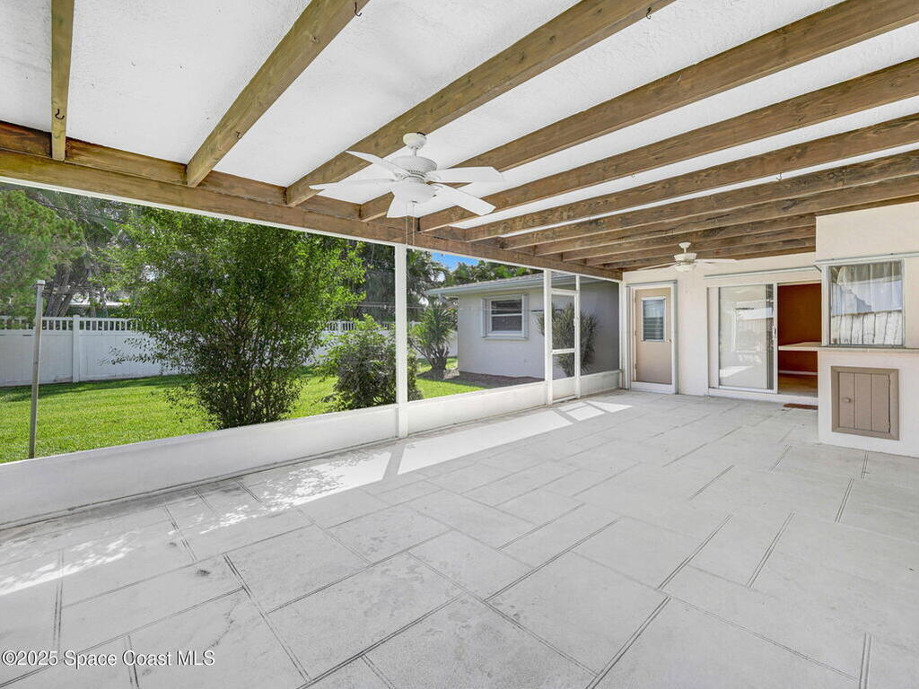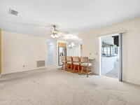 Welcome to Coastal Living!This beautifully maintained 4-bedroom, 2-bath home with a 2-car garage offers generous square footage and an inviting open floor plan. Kitchen offers oven, cook top, large pantry and a breakfast bar, Pass-thru window to enclosed huge patio. The spacious master suite features his-and-her closets, while all bedrooms are comfortably large.Enjoy a huge enclosed patio overlooking a lovely garden--perfect for relaxing or entertaining, Plenty of room to add your own swimming pool. Upgraded windows (with just three left to complete) and accordion shutters provide peace of mind.Located just minutes from the beach, shopping, restaurants, scools, parks and only 45 minutes to Orlando, this home is ideally situated for both convenience and leisure.Don't miss your chance--schedule a showing today!