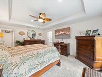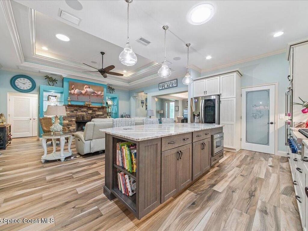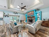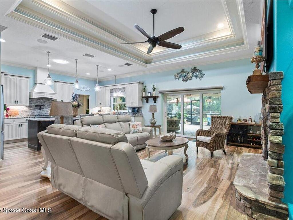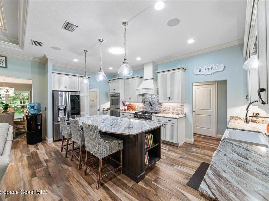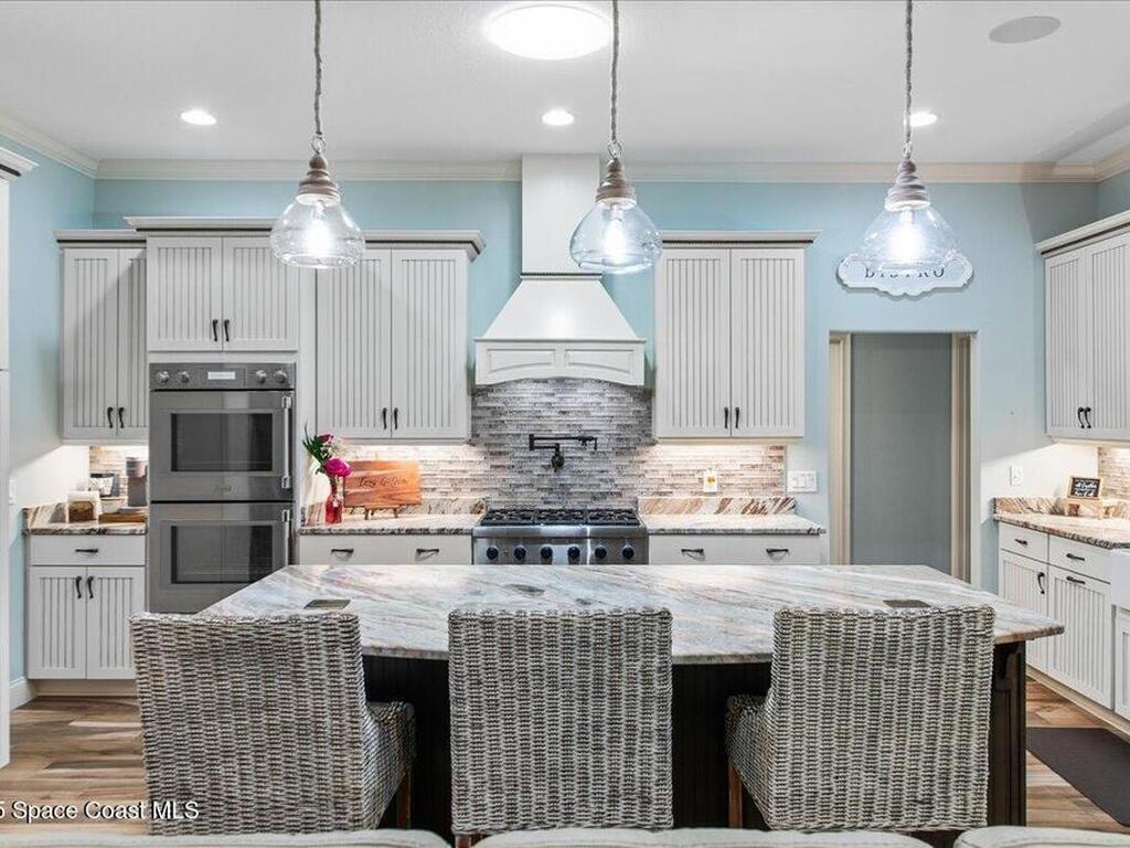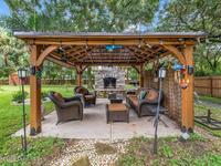Gorgeous Custom Home with all current upgrades throughout the entire home. Attention to quality, energy efficiency, and design with detail in EVERY aspect of this ''one of a kind'' home. Nestled on 1.45 acre of lavish tropical landscape, enjoy privacy and a resort style backyard with oversized back-porch, summer kitchen, custom deck and a covered Pergola with pizza oven pit for amazing entertaining options. Welcomed by a gated brick-paver driveway that leads to an oversized front porch. Enter home to a large welcoming foyer, spacious Family Room with stunning fireplace, designer double tray ceiling with custom lighting, built in features, dining room, and a Gourmet Kitchen of your dreams! ALL HIGH END Appliances, stunning granite countertops and oversized island, walk in pantry and all the designer finishes in cabinet design and coastal colors. Owner suite offers plush carpet, ceiling fan, custom window treatments, an owners bath & closet that is a must see.Split bedroom plan and more