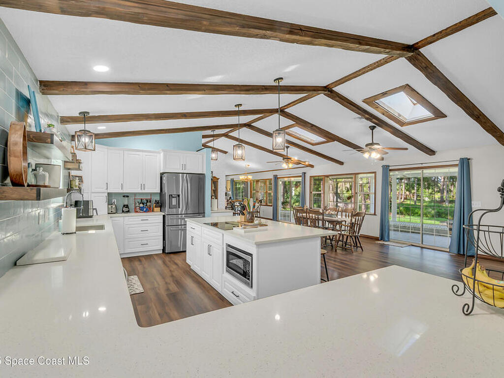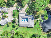 2 HOMES-2.5 ACRES-ENDLESS POSSIBILITIES!! Main home has 4240 SF, 3 bdrms each with their own en-suite bath and walk-in closets. Features include a spacious and open floor plan, perfect for entertaining. Recently remodeled kitchen with white shaker cabinets, quartz, SS appliances and huge island. The In-law suite is next to the main home with 1/1 and small kitchen. Guest home is almost 2100 SF with 4/2/2. (tenant in place mo. to mo.) There are 7 garages for boat, RV storage + workshop. Incredible sunsets overlooking the private pond, or view the courtyard pool (re-surfaced in '22) from anywhere in the home. Outdoor screened lanai and grilling area, flag lot and private natural foliage. Roof updated in '18, new AC '22, new luxury vinyl floors in main living areas and 2 new septic tanks '22. This truly versatile estate has so much to offer with the income potential and multi-generational living opportunities for extended families. Close to the KSC and easy access to the beaches! no HOA!