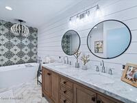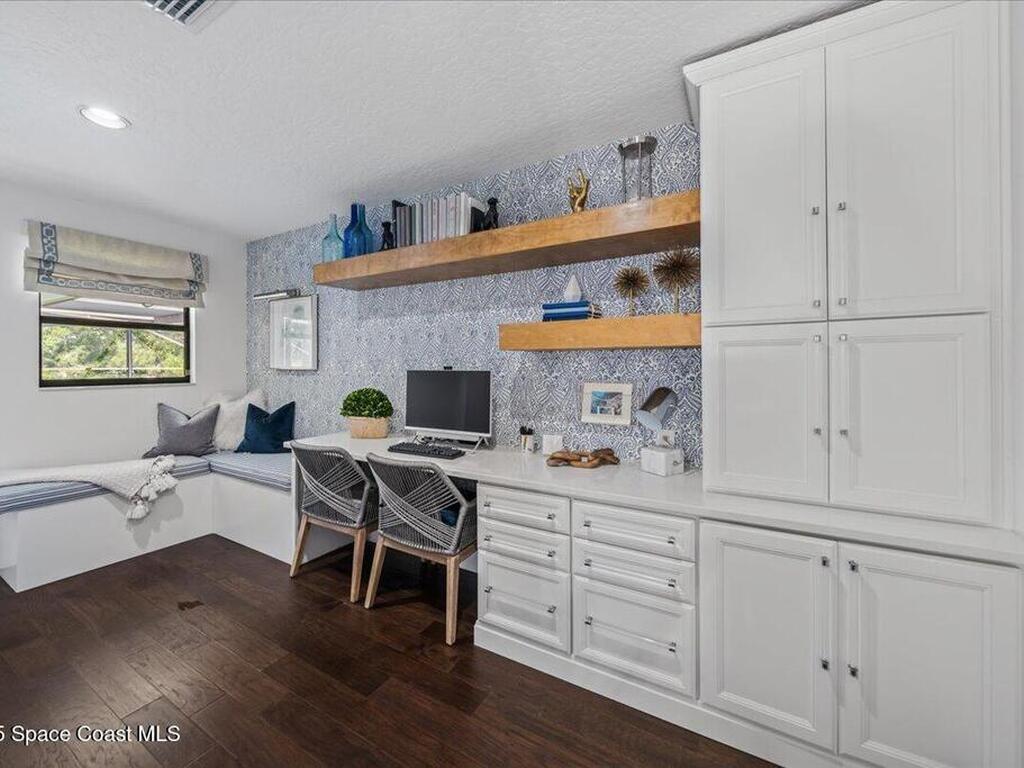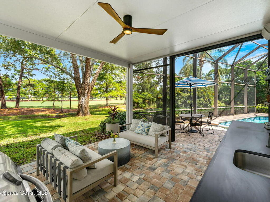Welcome to 610 Woodbridge Drive, where celebrity-level design meets an unrivaled setting on the 18th hole of Suntree Country Club, Brevard's most exclusive Golf and Tennis Club. Homes along this stretch rarely come to market, making this a truly exceptional opportunity. Featured on Houzz TV's ''My Houzz: Kate Upton's Surprise Renovation, '' this 4-bedroom, 3.5-bath, 3, 340 sq. ft. residence was reimagined in 2019 by renowned designer Motivo Home, who delivered curated updates to the primary suite, guest bath, and private office retreat. That same year a new roof was installed, with additional enhancements in the years following, including new pavers on the driveway and pool deck, a turf side yard, and extensive landscape upgrades.Positioned on a wide, private cul-de-sac lot, the home offers both prestige and seclusion, an unparalleled combination within Suntree's most desirable enclave.