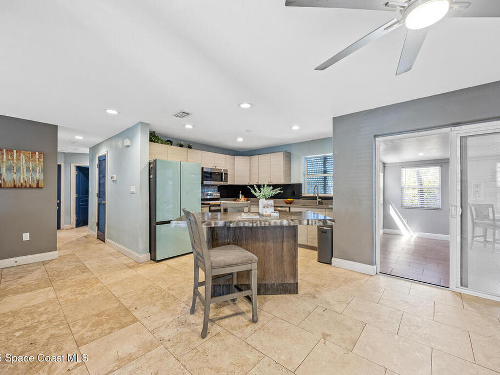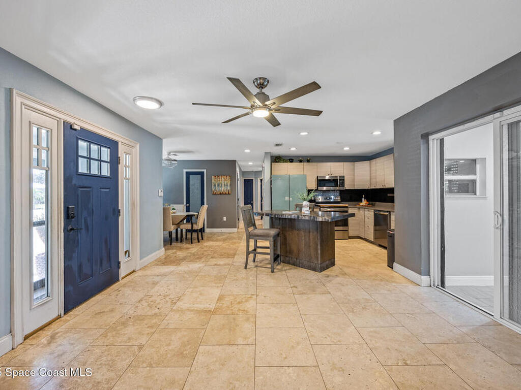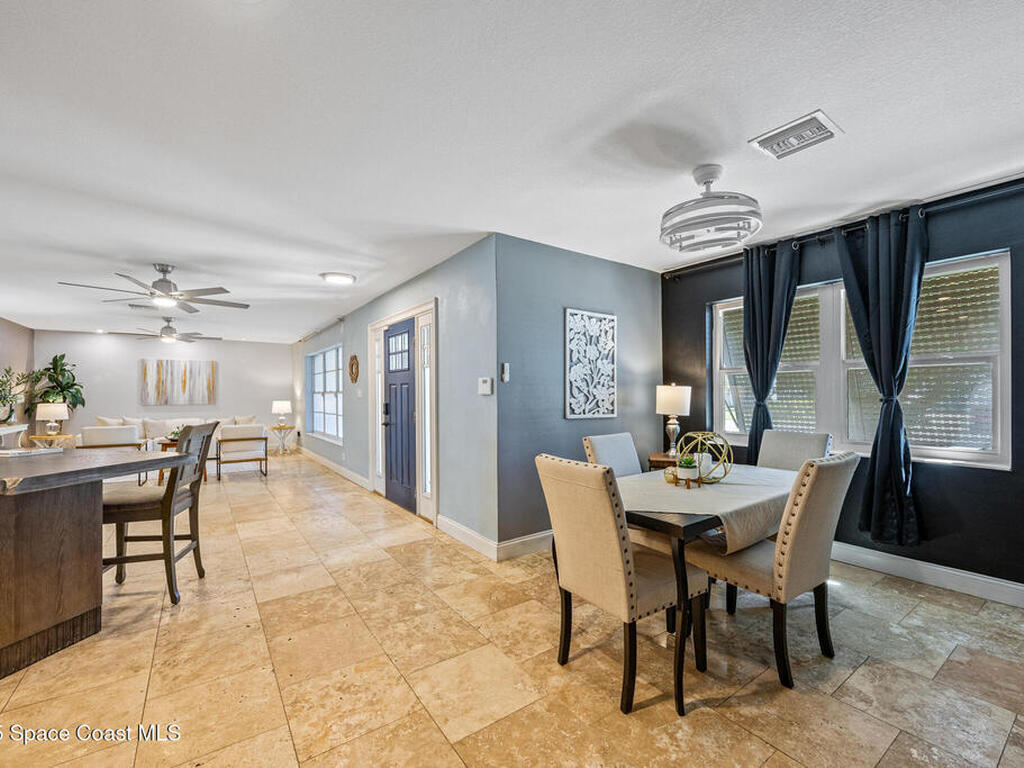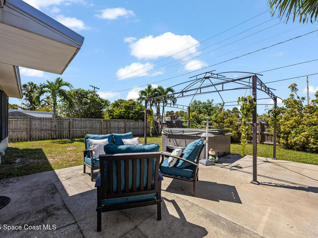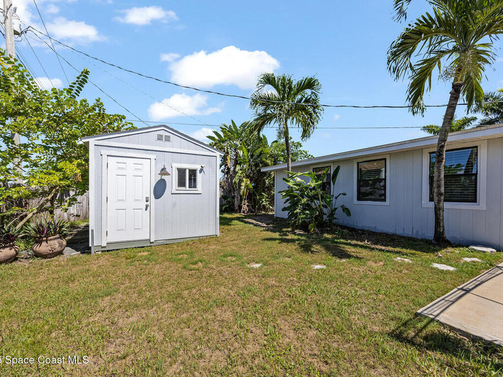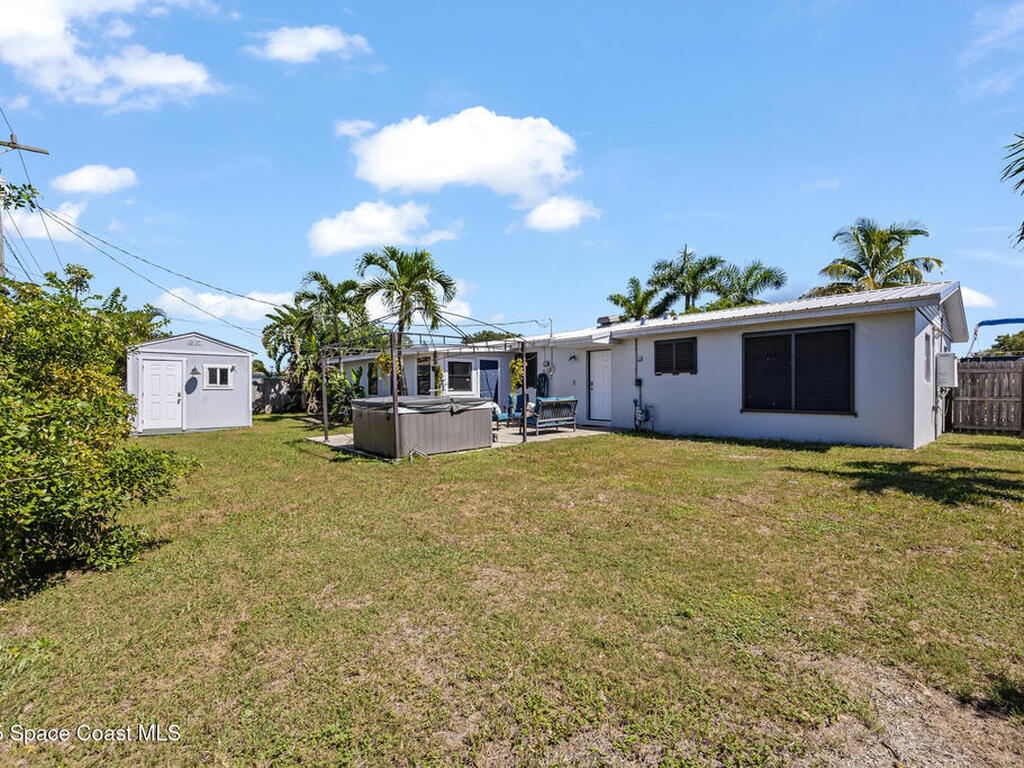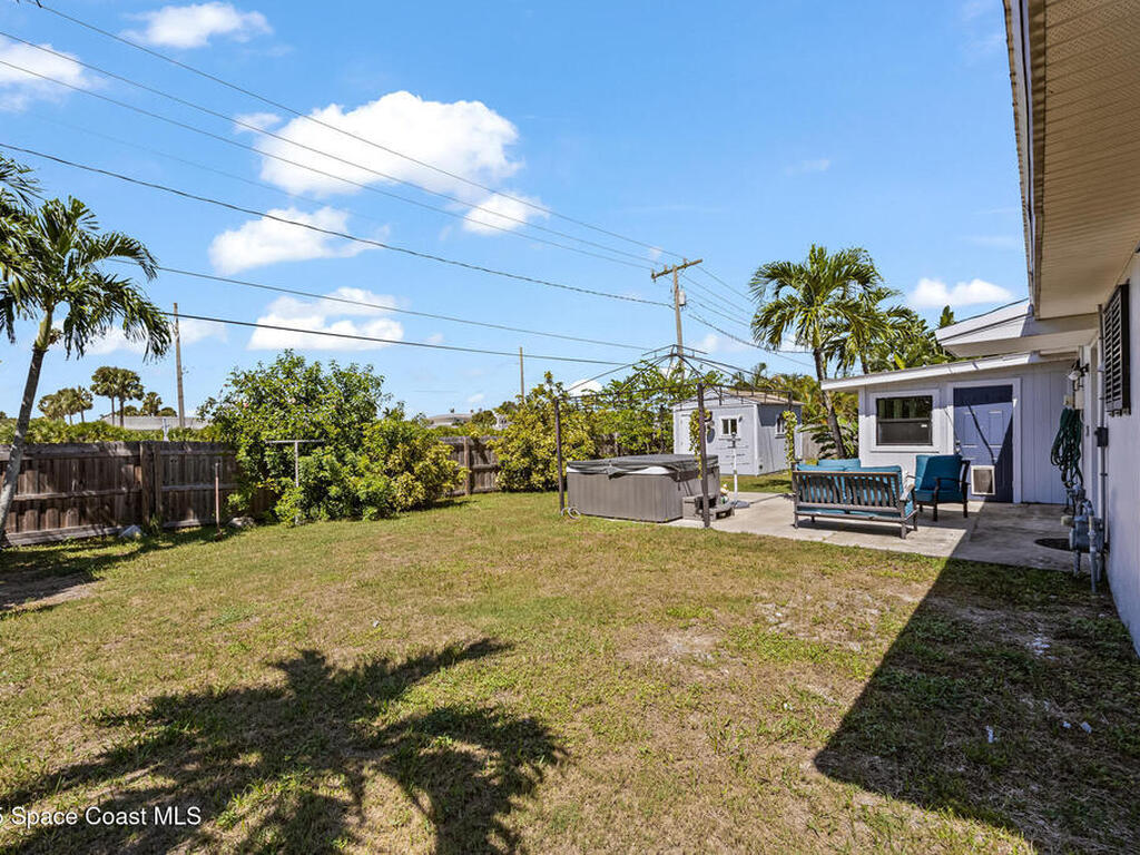 Just steps from the Atlantic Ocean and Banana River in this beautifully renovated 3-bed, 2-bath Satellite Beach home. Watch rocket launches and thrilling military flyovers from nearby Patrick Space Force Base, with quick access to A1A, US-1, and I-95. The open layout flows from the living and dining areas to a modern kitchen with island and a removable bar for flexible entertaining. Both bathrooms feature floating vanities with accent lighting and built-in LED mirrors. Outside, enjoy a durable metal roof, fully fenced yard, and boat/RV parking. Relax under a charming pergola with spa, or escape to the air-conditioned, electric-powered she shed perfect for a studio or retreat. Close to shopping, dining, and entertainment, this home blends coastal lifestyle with everyday convenience.