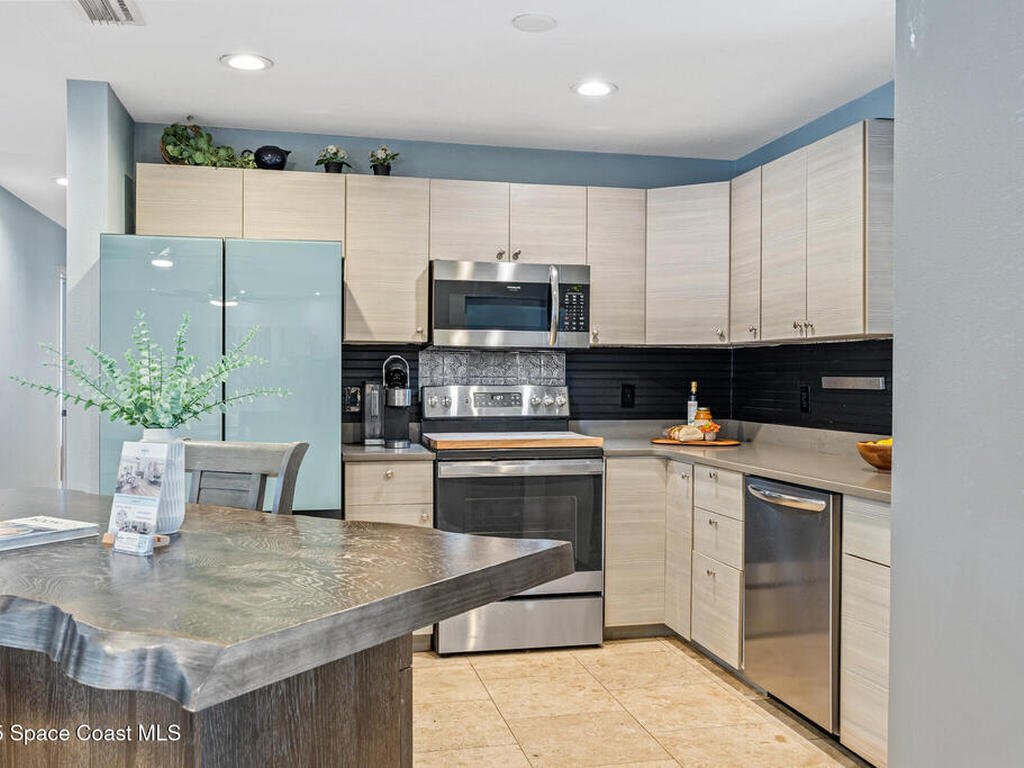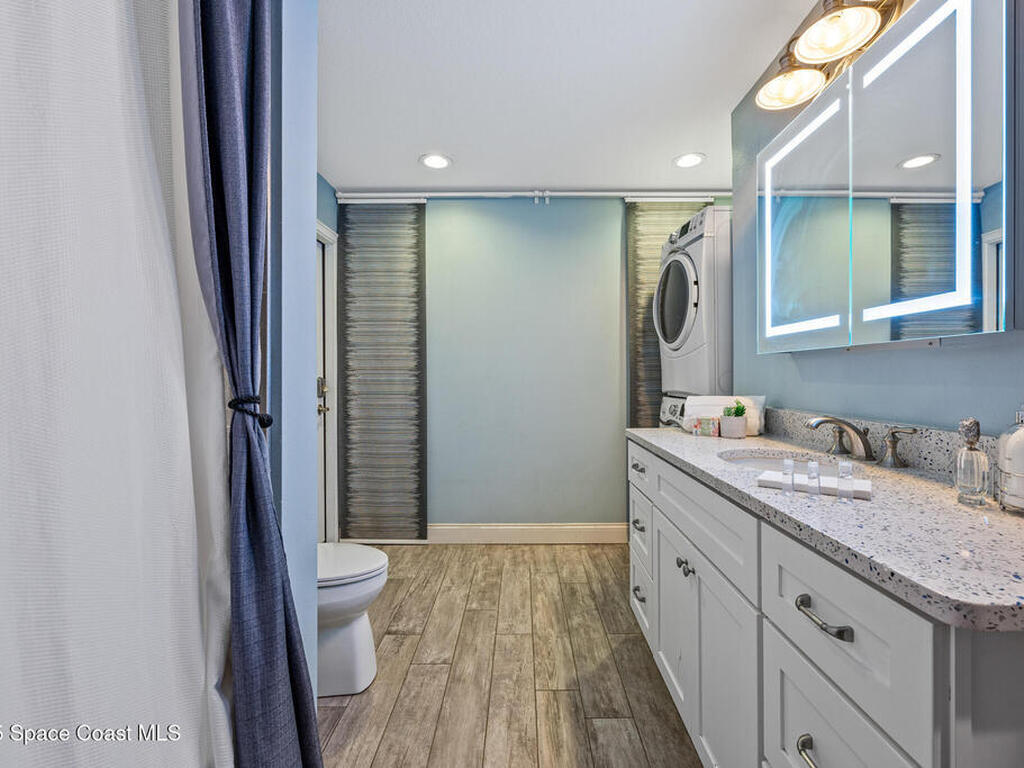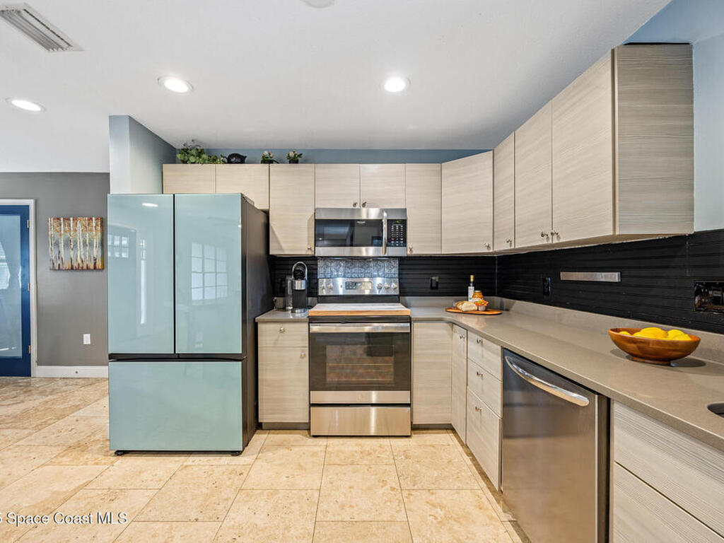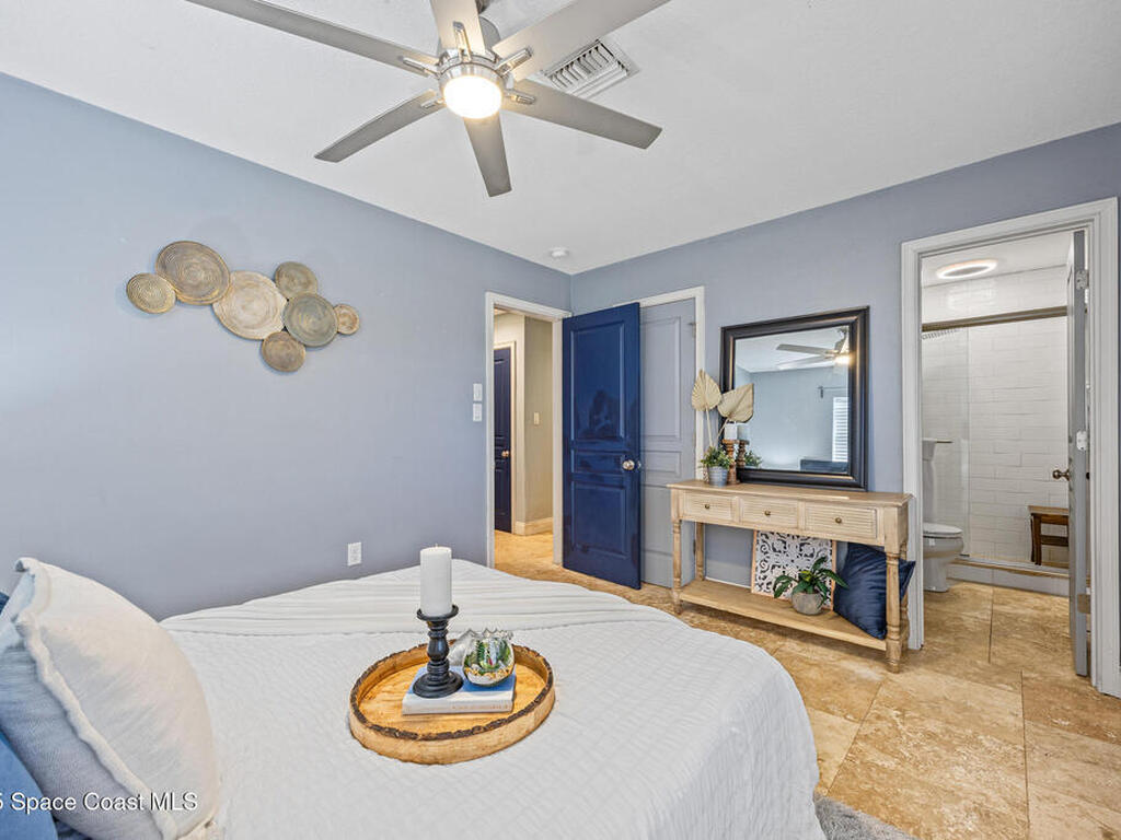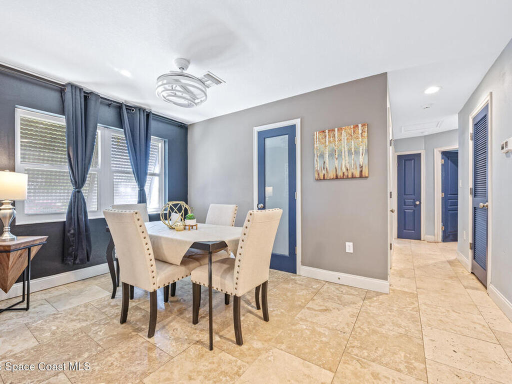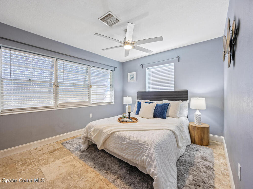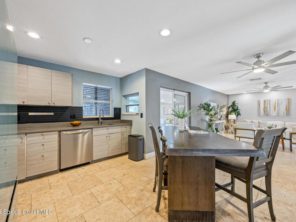 Just steps from the Atlantic Ocean and Banana River in this beautifully renovated 3-bed, 2-bath Satellite Beach home. Watch rocket launches and thrilling military flyovers from nearby Patrick Space Force Base, with quick access to A1A, US-1, and I-95. The open layout flows from the living and dining areas to a modern kitchen with island and a removable bar for flexible entertaining. Both bathrooms feature floating vanities with accent lighting and built-in LED mirrors. Outside, enjoy a durable metal roof, fully fenced yard, and boat/RV parking. Relax under a charming pergola with spa, or escape to the air-conditioned, electric-powered she shed perfect for a studio or retreat. Close to shopping, dining, and entertainment, this home blends coastal lifestyle with everyday convenience.