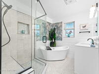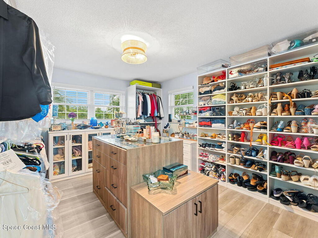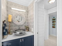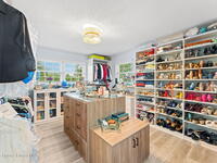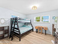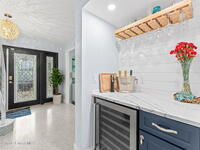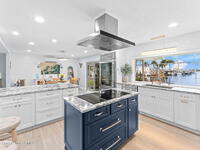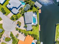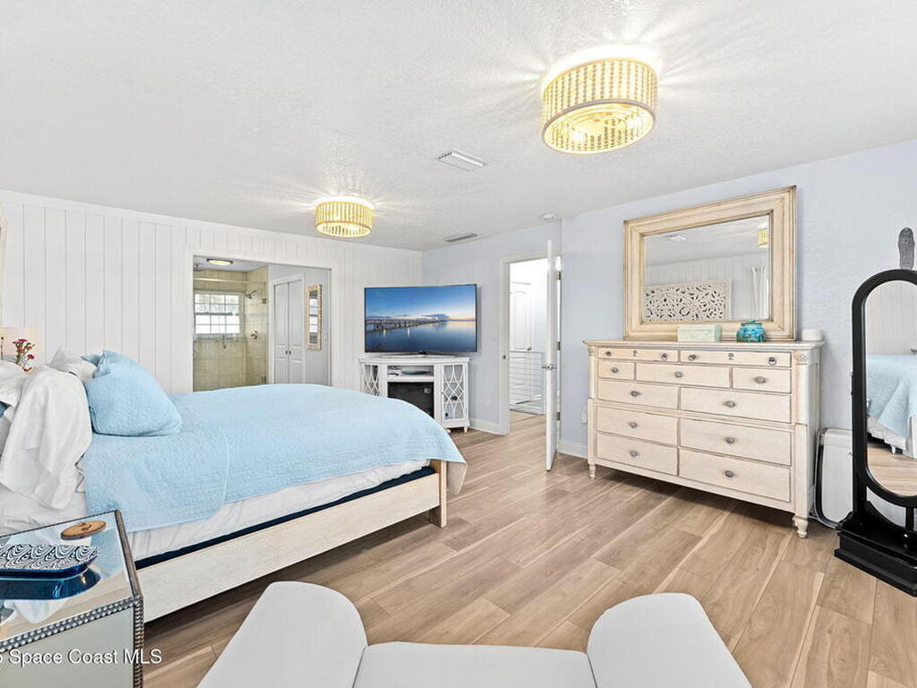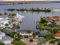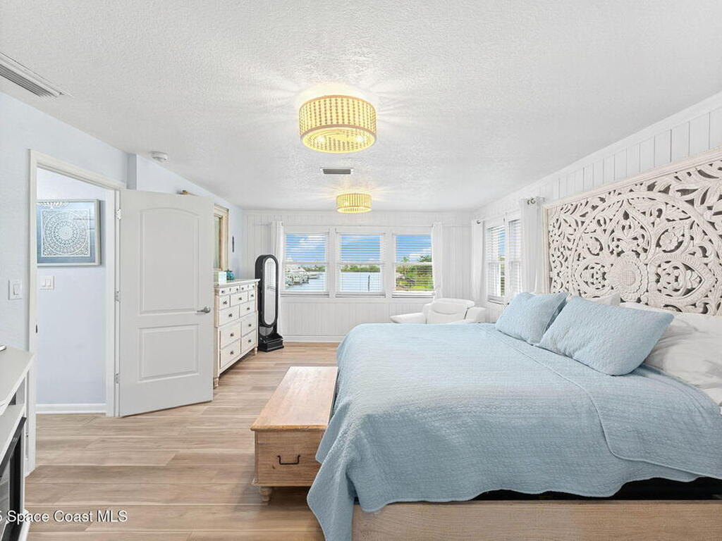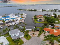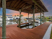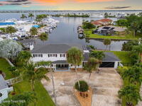 Life on the water takes center stage with 195 ft of canal frontage, two docks including a lift & deep-water access ready for boating. The outdoor spaces feel like a private resort with a custom-shaped pool, hot tub, screened lanai, sun deck & full pool bath designed for endless gatherings by the water. Inside, a reimagined kitchen frames Indian River views w/ quartz countertops, Thermador appliances, a True fridge, an island w/ electric cooktop plumbed for gas stub in, wine bar & coffee station. Luxury vinyl & terrazzo floors flow through the living spaces, anchored by a wood burning fireplace. Upstairs, the primary suite captures wide water views w/ a granite dual sink vanity, dual shower heads & pocket door bath. A guest suite offers a remodeled en suite w/ tub & shower, while additional bedrooms provide flexibility, including one redesigned as a full custom closet. With a new pool heater, 3 mini splits & thoughtful upgrades, this property embodies the full waterfront lifestyle.