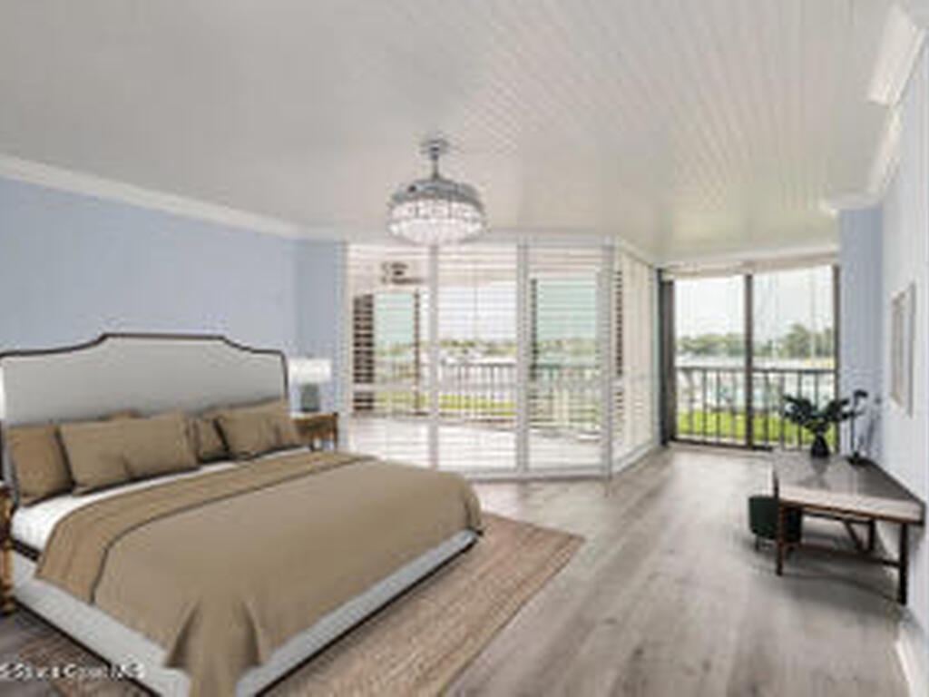 Welcome to 18 Marina Isles, where waterfront living reaches its finest. Nestled in a sought-after gated subdivision surrounded by water, this rare opportunity places you directly on the Intracoastal Waterway with panoramic views and endless sunsets over the Banana River. Enjoy daily scenes of dolphins at play, soaring birds, and the lively energy of boats, jet skis, paddleboards, and kayaks. Perfect for morning coffee or evening wine, the setting also offers front-row seats to rocket launches. This upscale condominium features an elevator, under-building parking, and a beautifully updated first-floor residence. The 2 bedroom, 2 bath layout includes an open chef's kitchen with white shaker cabinets, KitchenAid appliances, and a Carrara marble wet bar with French gray cabinetry. The spacious primary suite showcases breathtaking water views and a designer bath with travertine shower. Impact glass windows and wood-look flooring complete this stylish, move-in ready home.