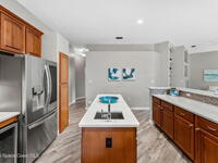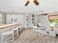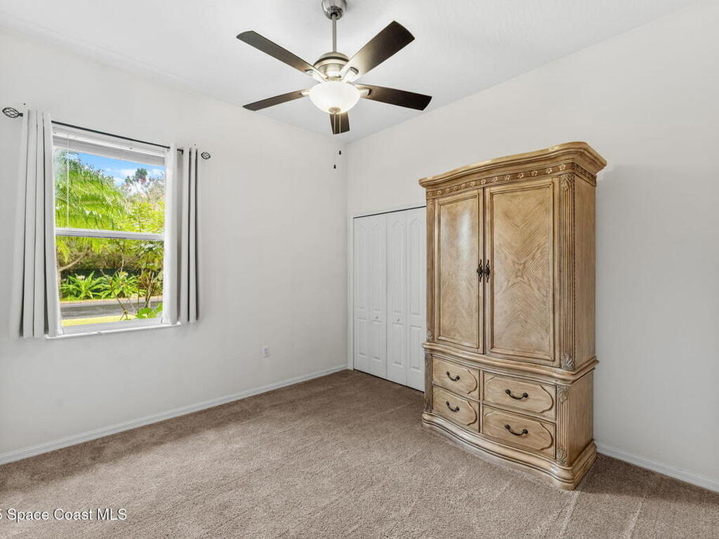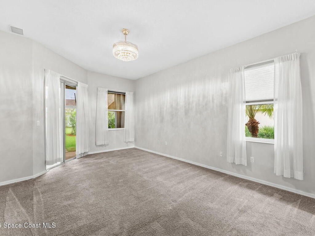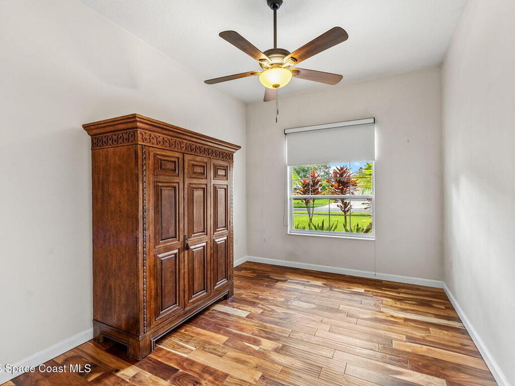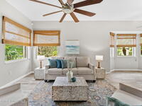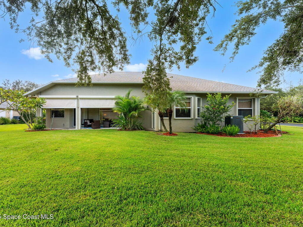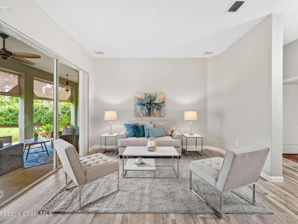 Located in Baytree's gated golf community, this 4-bedroom, 2-bath home blends comfort, security, and style. Accordion shutters cover every window, with electric screen shutters enclosing the patio for instant storm protection. A 2019 roof, 2022 HVAC, and 2020 water heater add confidence, while crown molding and updated flooring define the interiors. The kitchen is designed to impress with quartz counters, a large island, stainless steel appliances, solid wood cabinetry, pantry, breakfast bar, and wine cooler. Bedrooms are finished in carpet, baths in tile, and main spaces in durable laminate/LVP. Beyond the home, Baytree offers resort-style amenities including a pool, clubhouse, tennis courts, and picnic pavilions, all just moments from The Avenue Viera, where premier shopping, dining, and entertainment define the lifestyle.