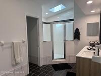 Indian Harbour Beach's most desirable neighborhoods, 3 beds, 2 bath pool home with open layout and tall vaulted ceiling brings all the modernity desired for today's living. Open kitchen to living and dining areas. Primary suite with access to trussed back patio and pool. Large bath floorplan has great potential for a large separate tub and shower bath suite. Modern split-bedroom layout with generous sized bedrooms. Huge covered porch overlooking the pool/privacy fenced backyard spacious and private for entertaining or just relaxing in the shade for year-round Florida living. Indoor laundry room and oversized 2 car garage for tons of storage. Quiet Cul de sac location with no HOA means happiness. Walk to town and quick 5-minute ride to beaches and parks. Upgrades include, new paint inside and out. 2 new impact rated windows and skylight and lighting. Hurricane panels. New roof 2019, pool pump 2025.
