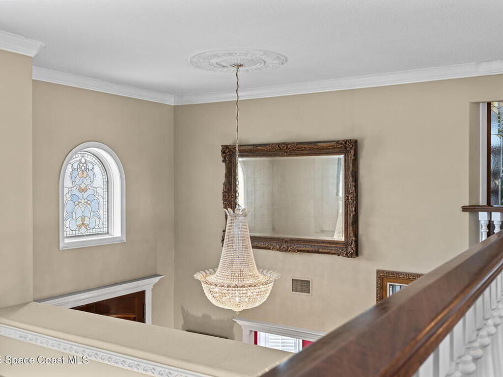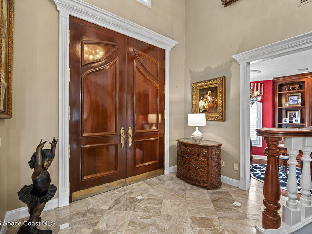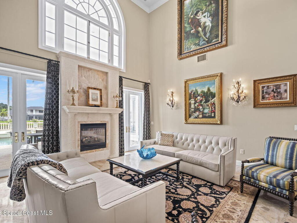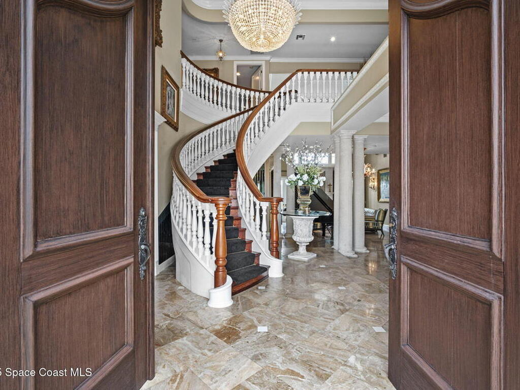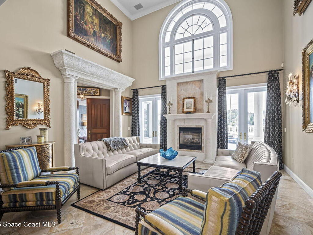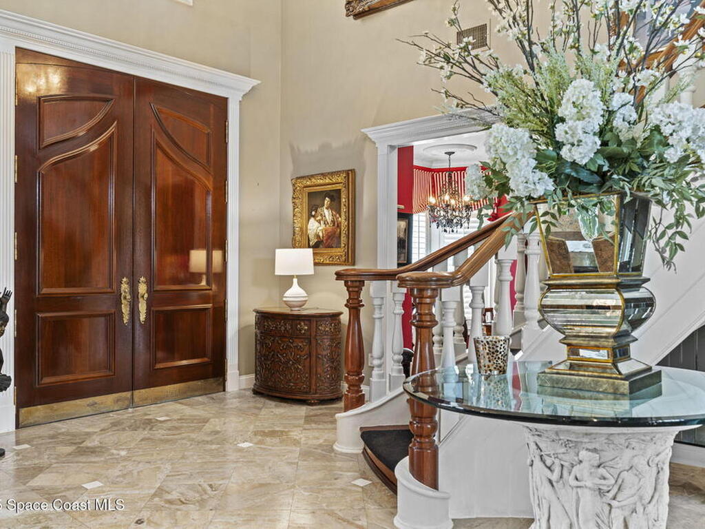 A opportunity to own a home in the most exclusive neighborhood on the Space Coast does not come around often. Lansing Island is home to some of Florida's most prestigious waterfront estates. This original owner residence, set on .83 acres along the coveted south side of the island, is now being presented to the market for the very first time. The arrival is unforgettable. Nearly 30 foot ceilings rise above the grand foyer where marble floors, a sweeping staircase, and a dazzling chandelier set the tone for timeless elegance. Just beyond, a breathtaking room is filled with natural light pouring through an antique window salvaged from the historic Brevard Hotel, a piece of history that now gives this estate its warm and inviting character. The layout offers both scale and comfort with six bedrooms, seven bathrooms, a private office, and a sprawling downstairs master suite in its own wing. Nearly every bedroom has its own private bath, and select guest suites open to large balconies with