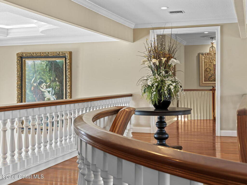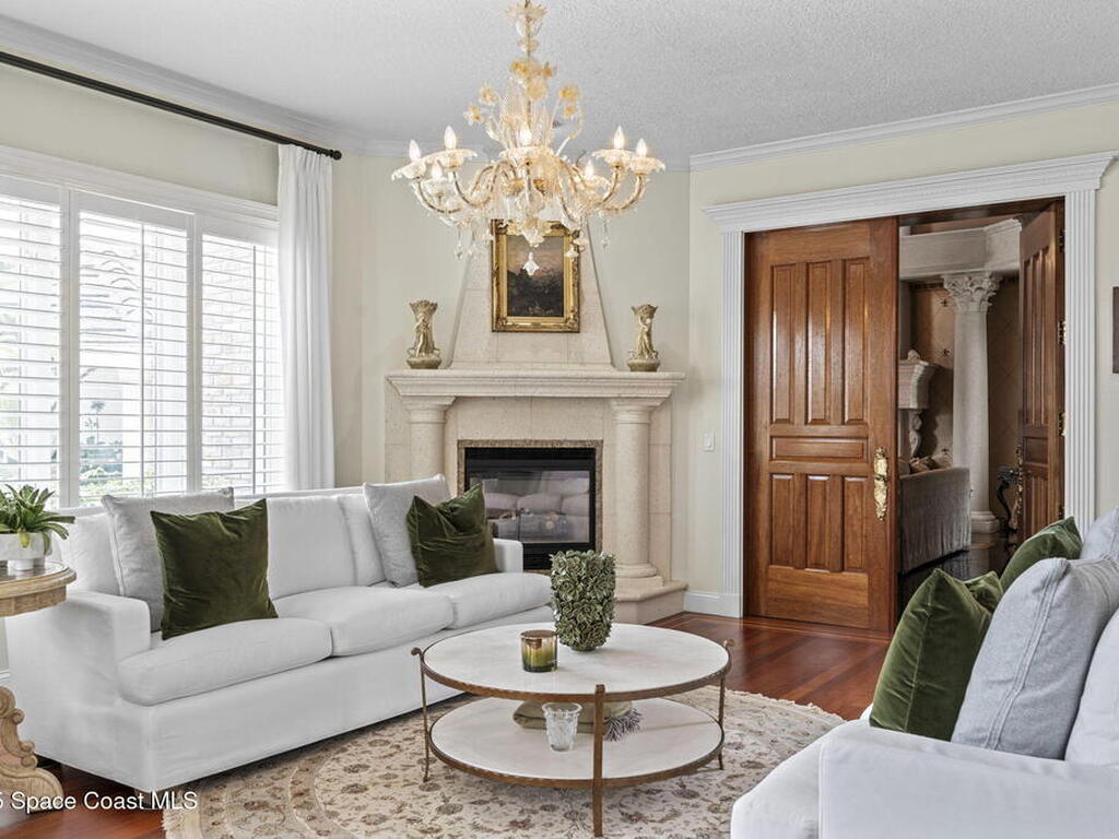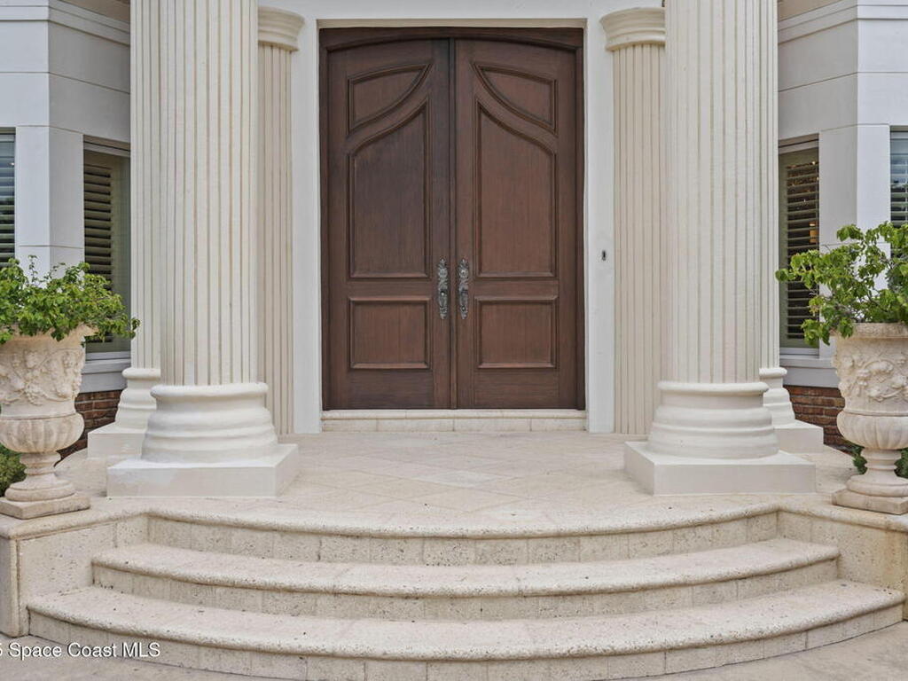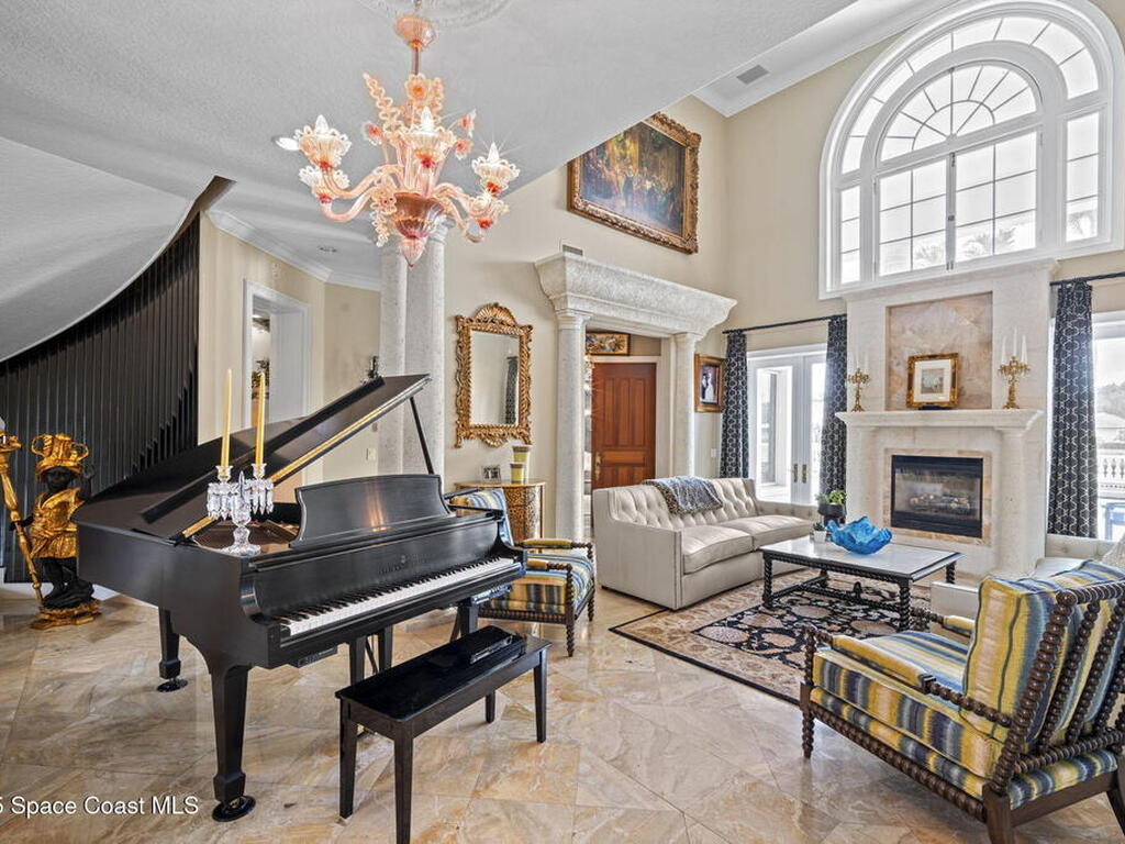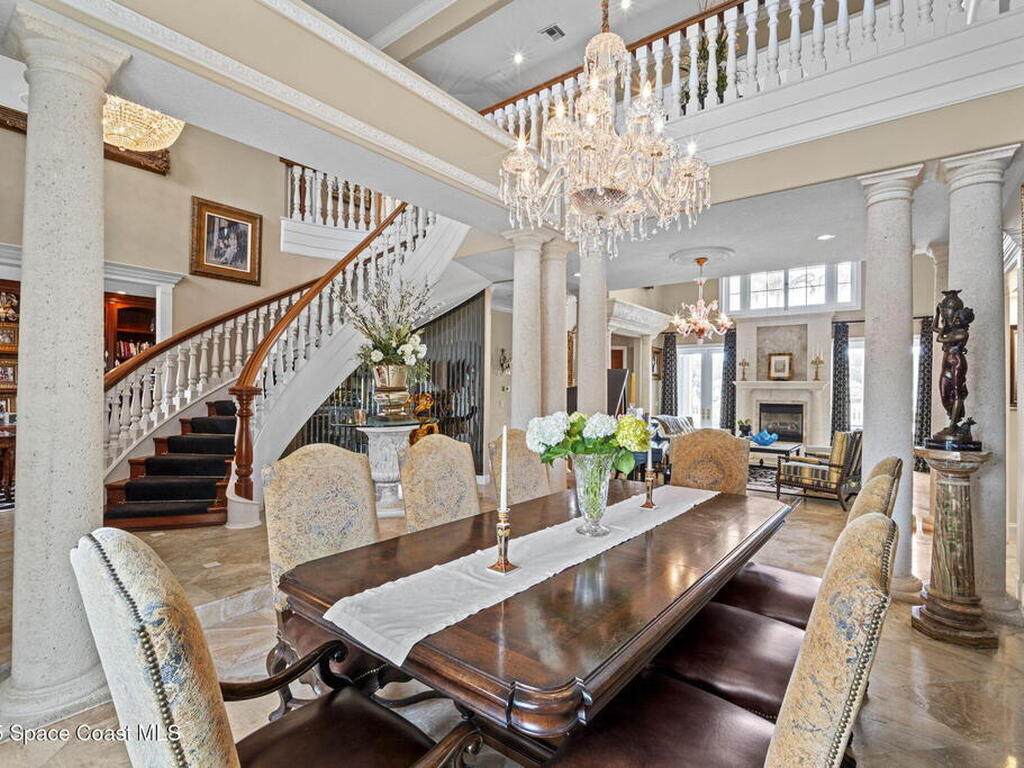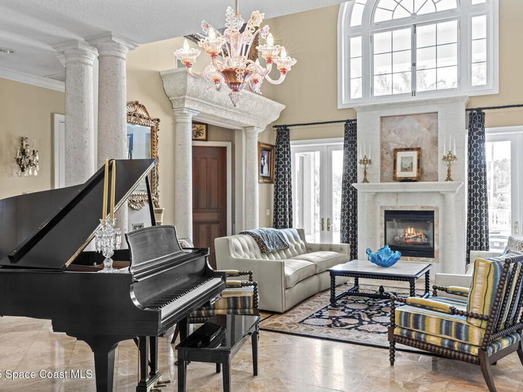A opportunity to own a home in the most exclusive neighborhood on the Space Coast does not come around often. Lansing Island is home to some of Florida's most prestigious waterfront estates. This original owner residence, set on .83 acres along the coveted south side of the island, is now being presented to the market for the very first time. The arrival is unforgettable. Nearly 30 foot ceilings rise above the grand foyer where marble floors, a sweeping staircase, and a dazzling chandelier set the tone for timeless elegance. Just beyond, a breathtaking room is filled with natural light pouring through an antique window salvaged from the historic Brevard Hotel, a piece of history that now gives this estate its warm and inviting character. The layout offers both scale and comfort with six bedrooms, seven bathrooms, a private office, and a sprawling downstairs master suite in its own wing. Nearly every bedroom has its own private bath, and select guest suites open to large balconies with