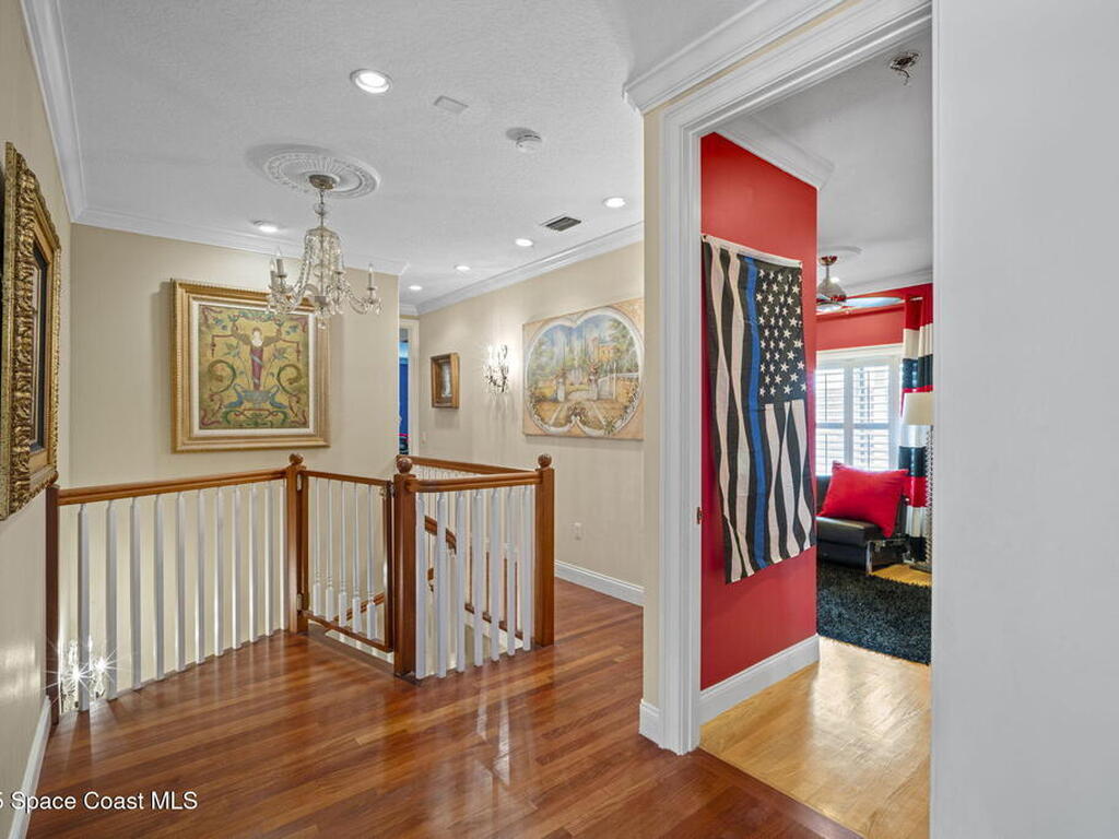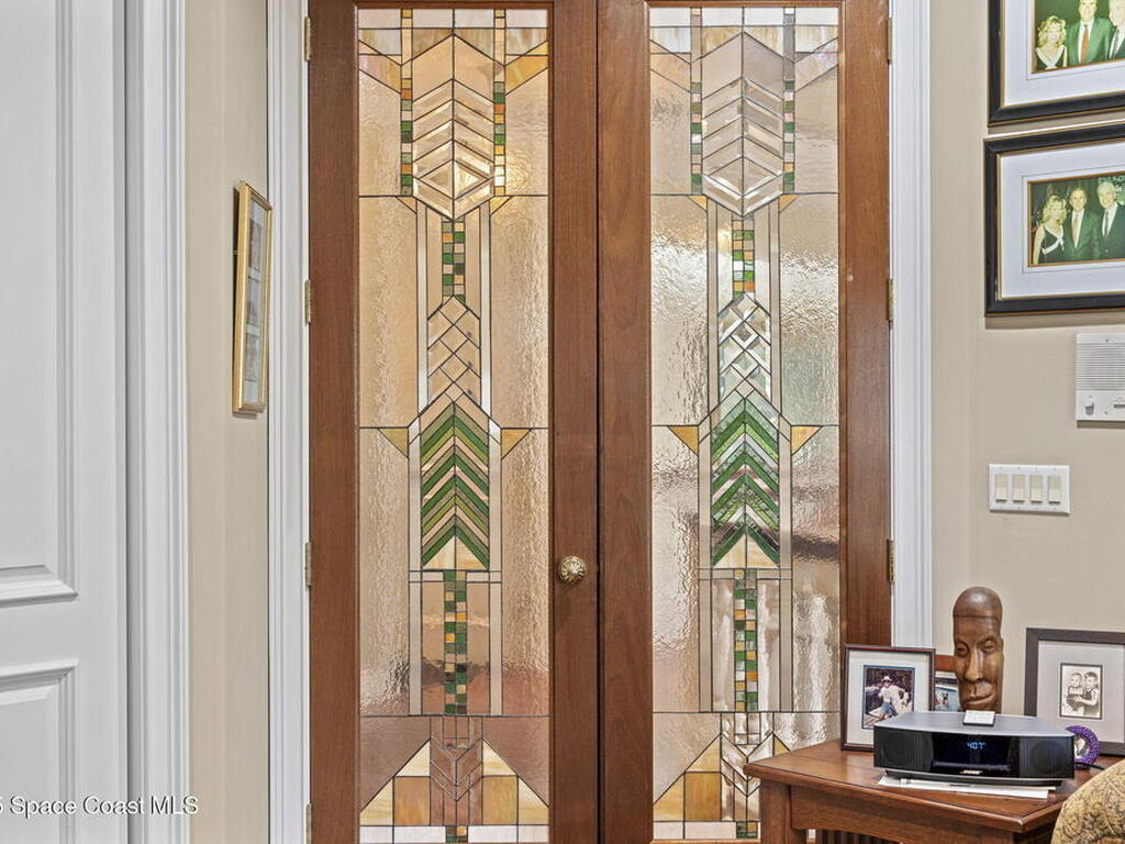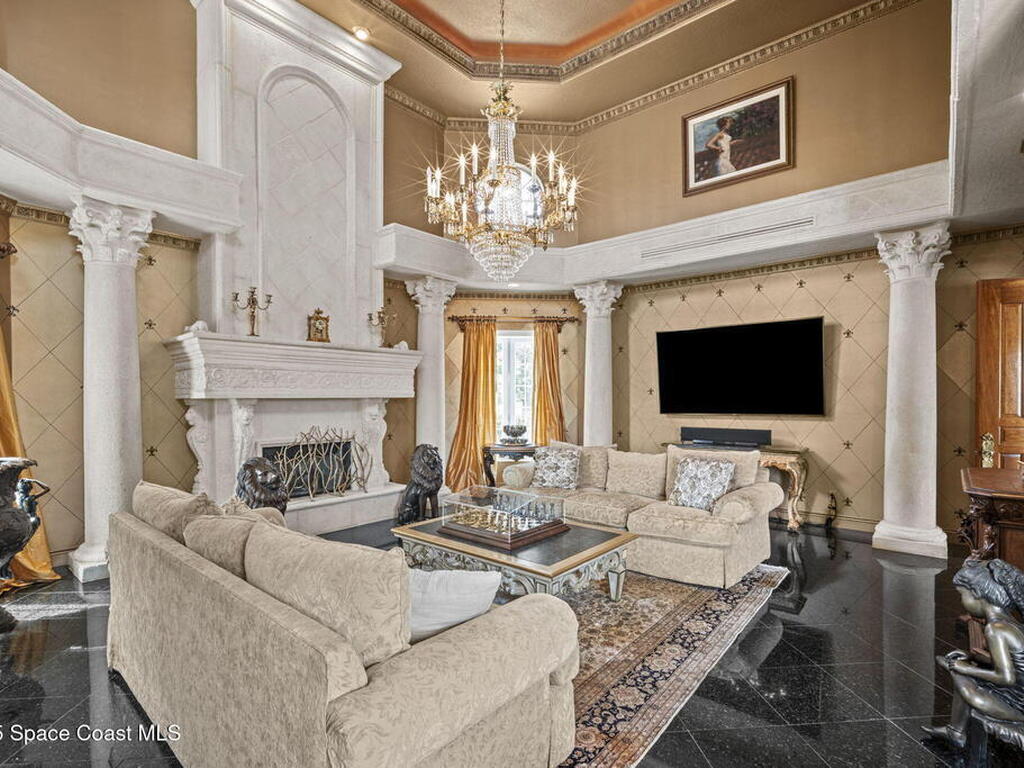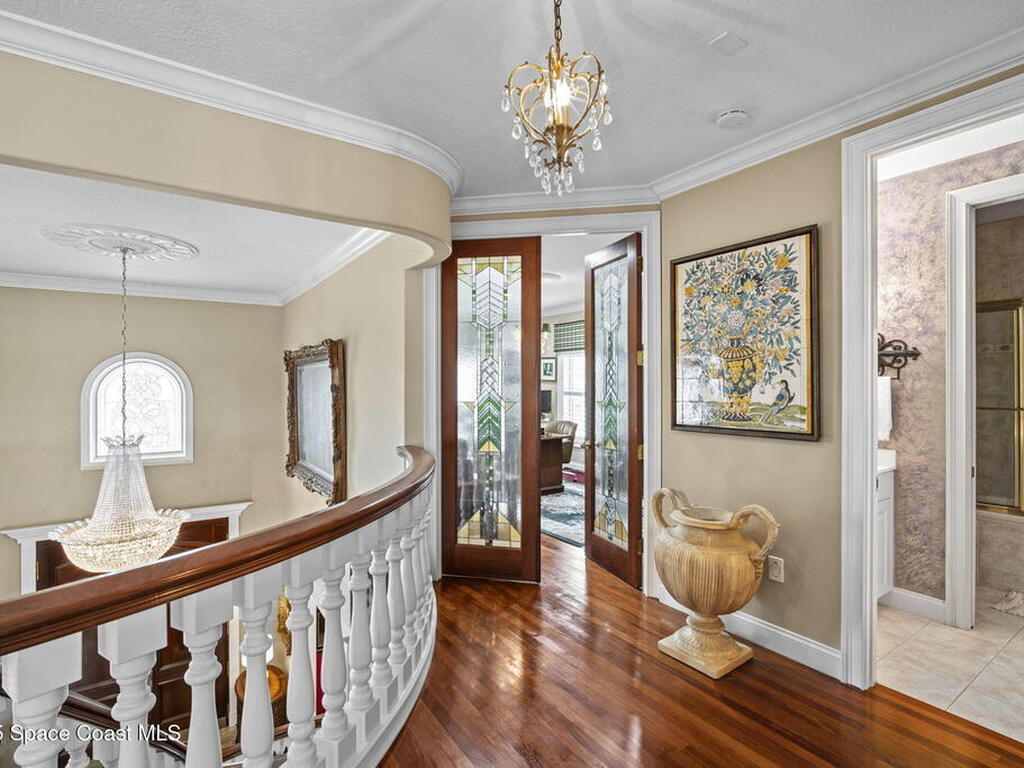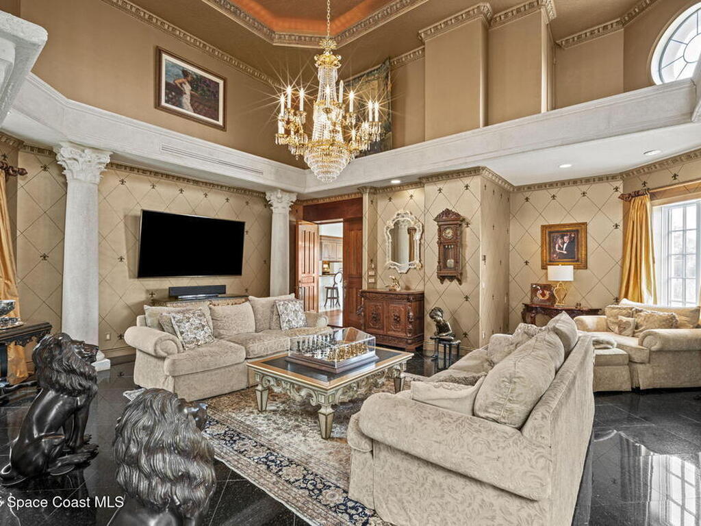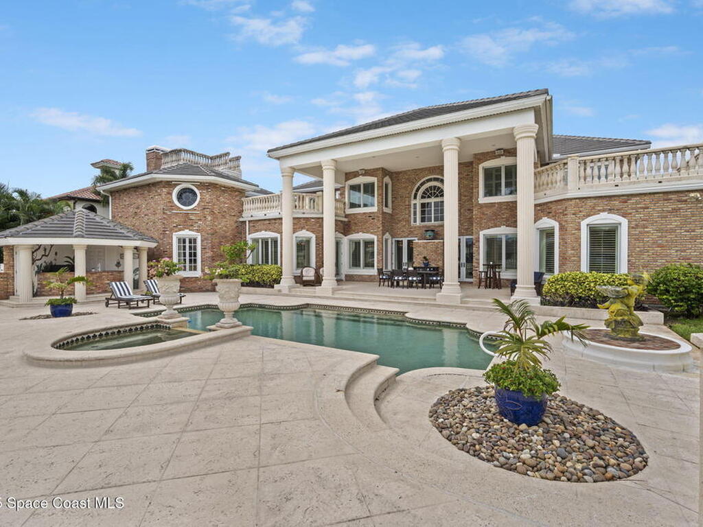 A opportunity to own a home in the most exclusive neighborhood on the Space Coast does not come around often. Lansing Island is home to some of Florida's most prestigious waterfront estates. This original owner residence, set on .83 acres along the coveted south side of the island, is now being presented to the market for the very first time. The arrival is unforgettable. Nearly 30 foot ceilings rise above the grand foyer where marble floors, a sweeping staircase, and a dazzling chandelier set the tone for timeless elegance. Just beyond, a breathtaking room is filled with natural light pouring through an antique window salvaged from the historic Brevard Hotel, a piece of history that now gives this estate its warm and inviting character. The layout offers both scale and comfort with six bedrooms, seven bathrooms, a private office, and a sprawling downstairs master suite in its own wing. Nearly every bedroom has its own private bath, and select guest suites open to large balconies with