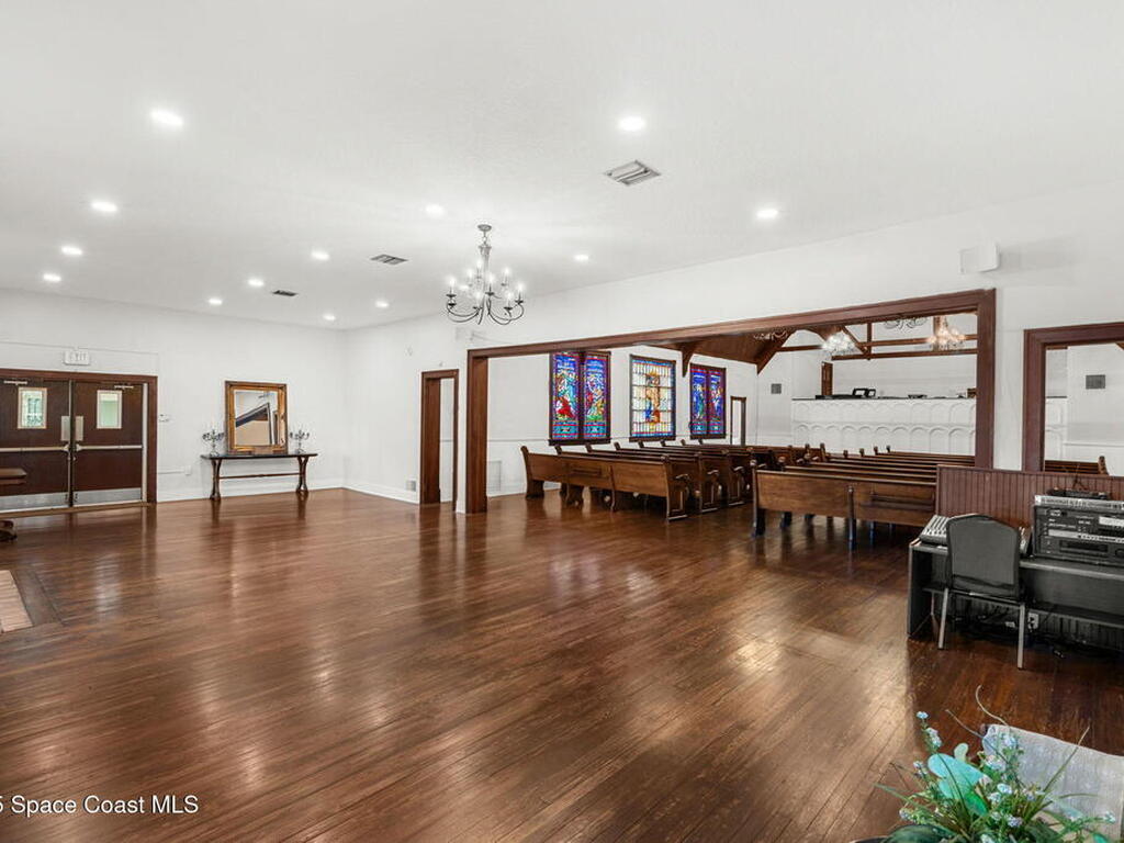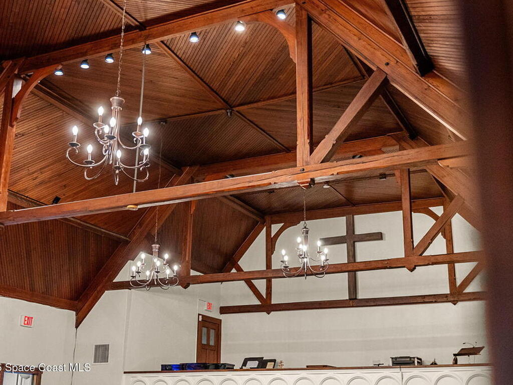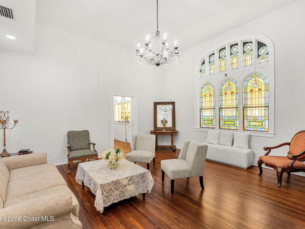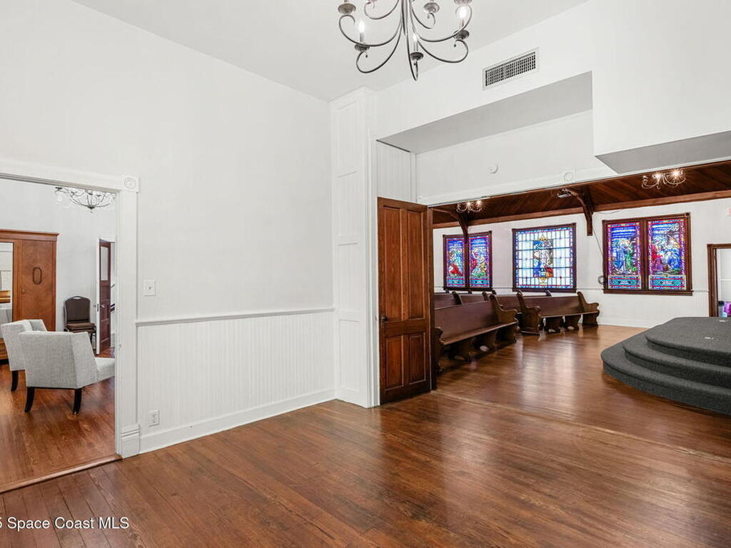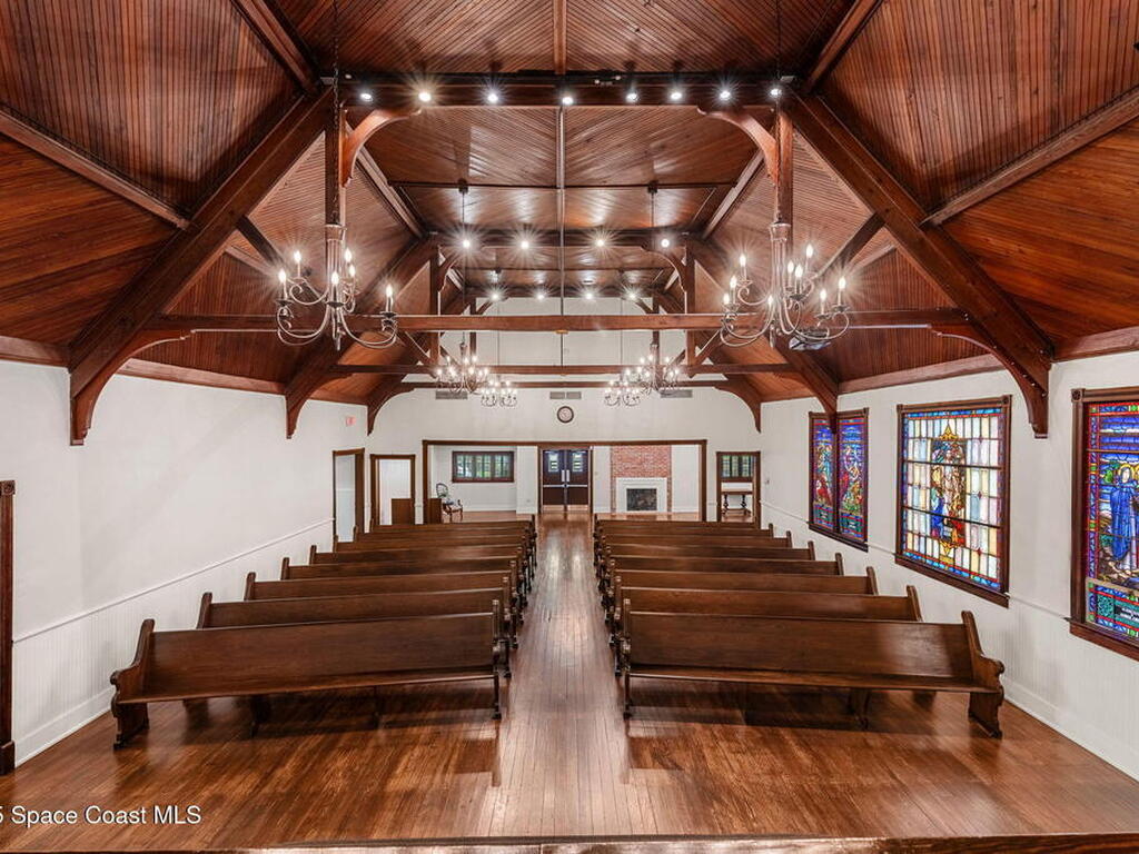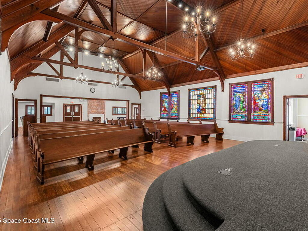 An enchanting landmark property in the heart of vibrant Downtown Melbourne. On just over 1/2 acre, 9000 sq ft of historic character, stained glass windows, hardwood floors, soaring wood ceilings, exposed beams. In addition to the historic structure and blending charm with functionality there is a modern event hall, commercial kitchen, 5 bathrooms, offices and several flexible spaces throughout. Zoned C-2. Current use is event venue/church but this property supports a variety of uses: restaurant, music venue, retail, offices, future redevelopment potential.No historic restrictions, building can be modified or removed for redevelopment of the lot.The 2024 est.traffic count is 37, 750 vehicles daily.In addition to the private parking on the property, there is a City of Melbourne 1 acre parking lot less than 300 feet away(approx. 120 to 140 cars) with direct sidewalk access and separate alleyway access to the building.History, presence and potential in one of Melbourne's most thriving districts