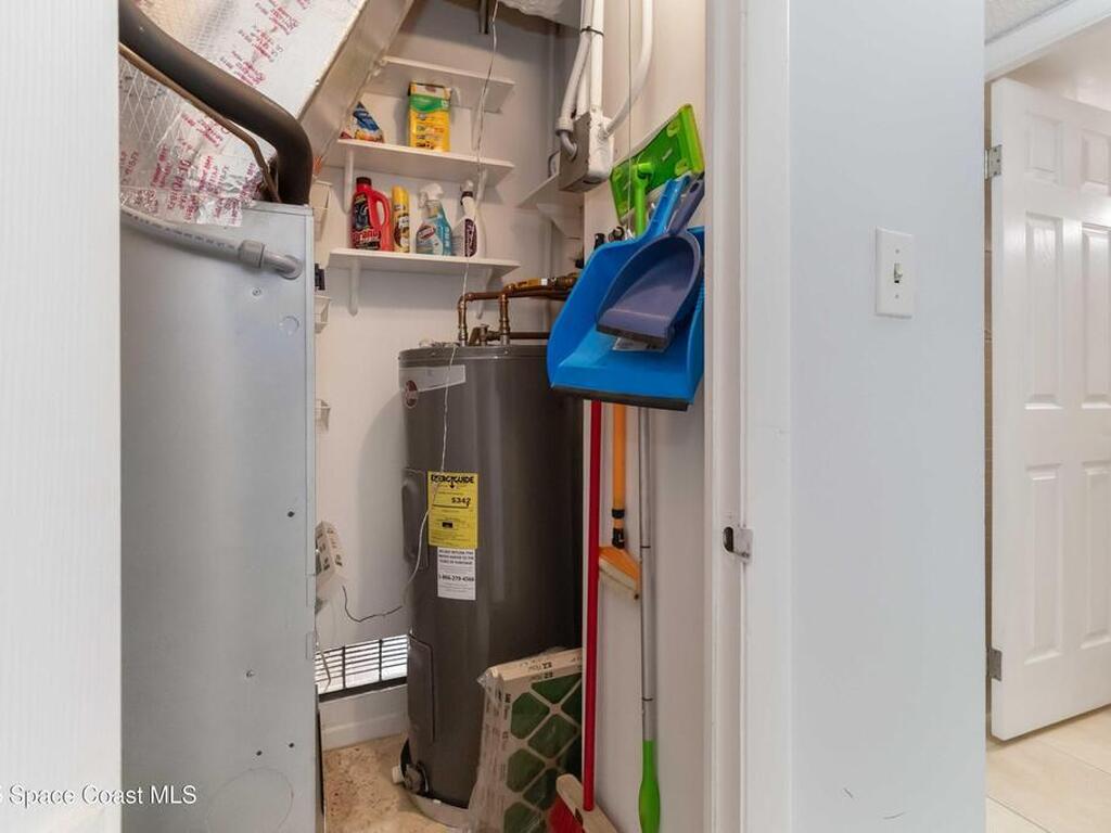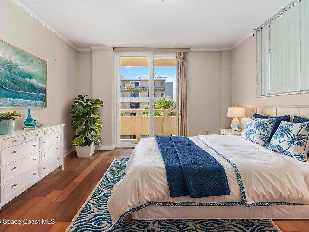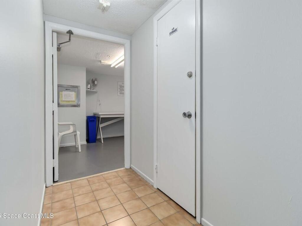 Bright and spacious 1-bedroom corner unit with wraparound balcony offering ocean views and exceptional storage. Open-concept living and dining area filled with natural light. Kitchen features ample cabinetry and a large pantry. Hallway includes utility, linen, and hall closets for added convenience. Spacious bedroom fits a king-sized bed and has its own impact slider to the balcony. Rare full-length private storage closet, perfect for bikes, boards, fishing poles, and more. Additional shared storage near community laundry. Secure lobby, plus access to pool, pickleball, clubhouse, shuffleboard, and private beach access. Located in the heart of Cocoa Beach, just steps from dining, shopping, and entertainment. Perfect for full-time living or a beachside getaway.