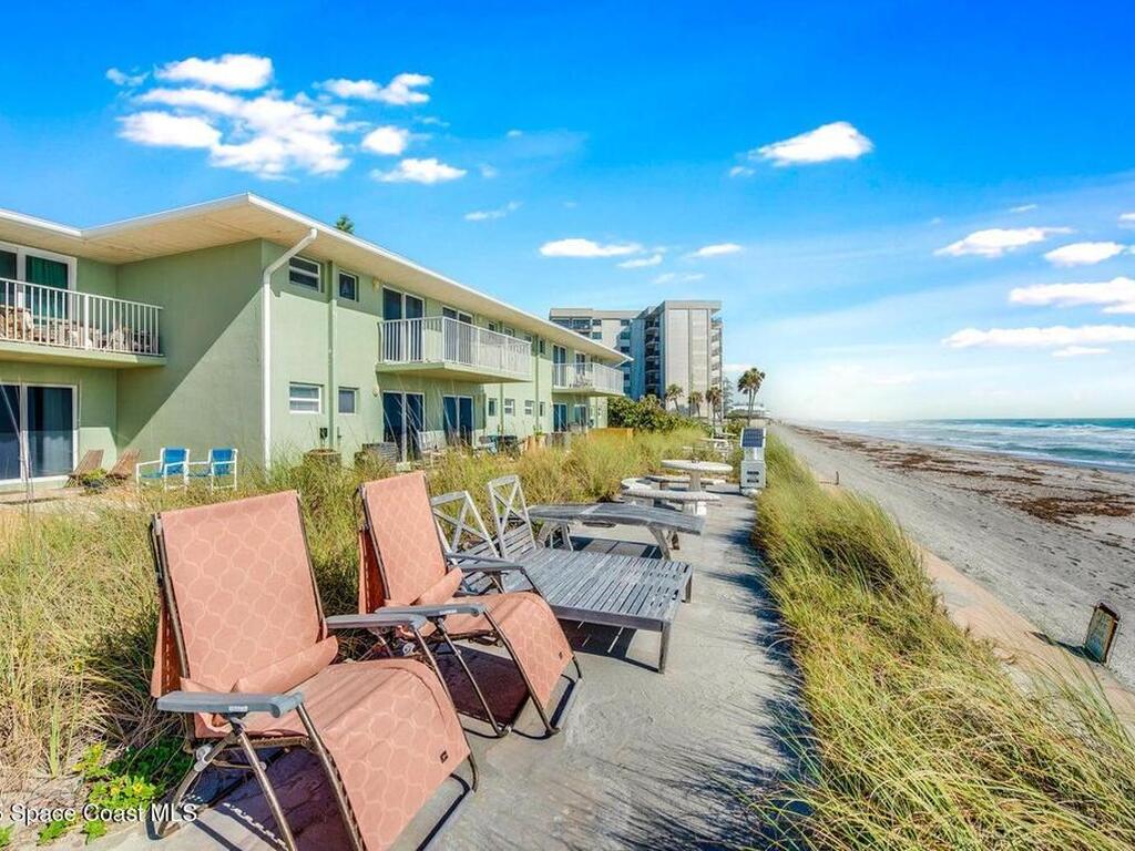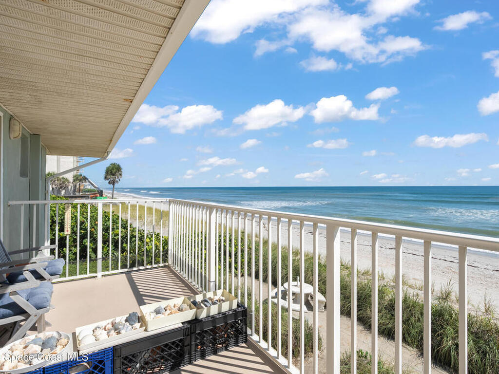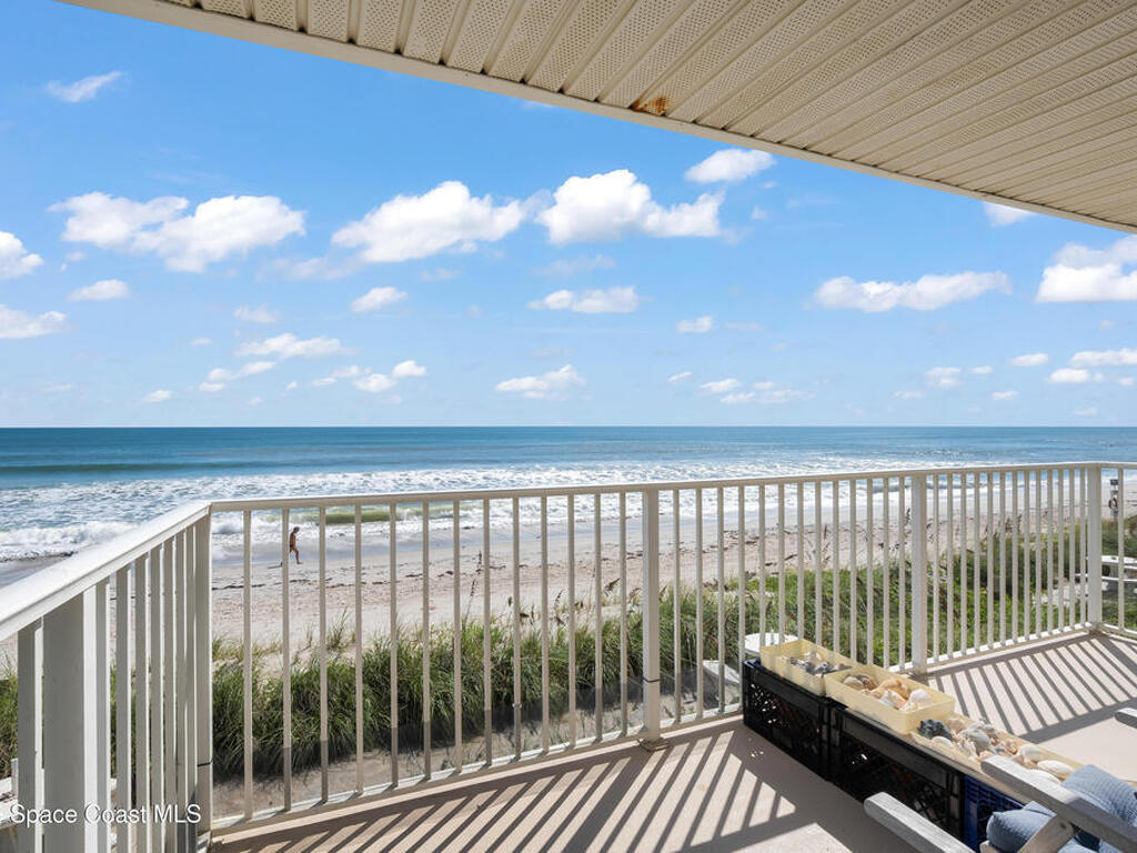 Welcome to your beachfront escape, nestled in the heart of Satellite Beach, with direct oceanfront views footsteps from the sand and surf!Step inside to find a bright open concept unit, filled with natural light and stunning views of the Atlantic Ocean. The cozy living area flows effortlessly into the kitchen and dining space. Wake up to breathtaking sunrises in this oceanfront bedroom complete with a balcony. Your own slice of paradise where you can watch the waves, dolphins play, sea turtles surface all while experiencing the best of the Space Coast viewing rocket launches directly over the ocean. You'll find plenty of storage space throughout the condo, including a cedar-lined walk-in closet. This condo offers direct beach access with a private boardwalk for residents and guests built atop a reinforced seawall. The complex is well maintained and features a newer roof, vehicle wash station and an on-site laundry facility operated by mobile app.