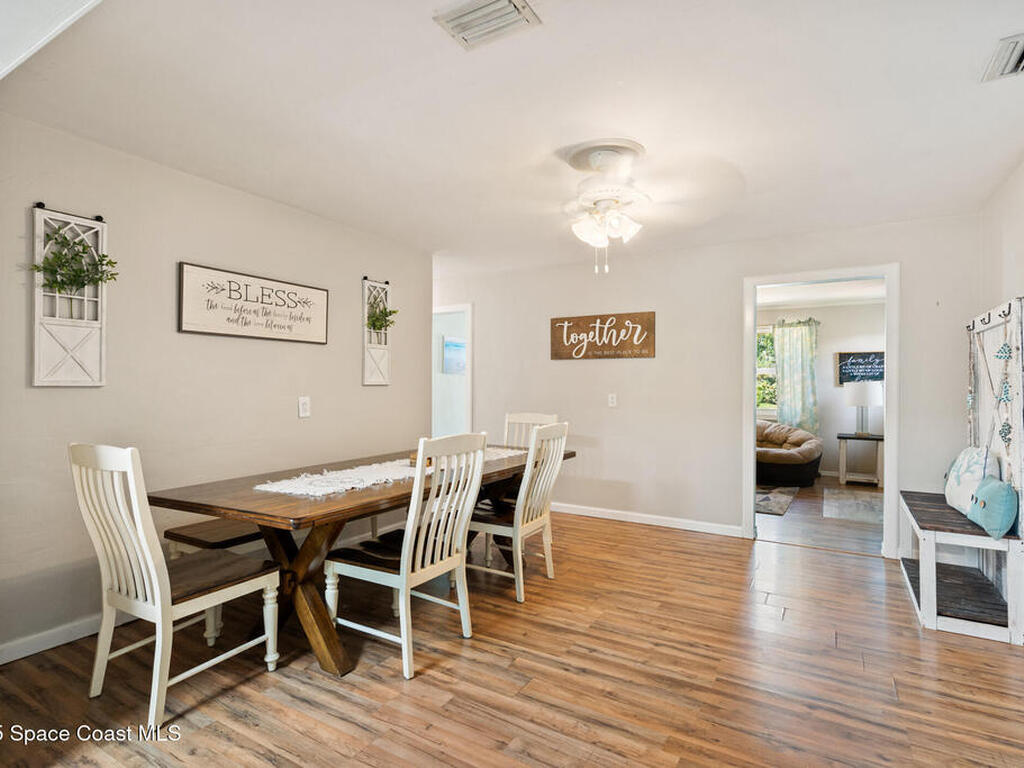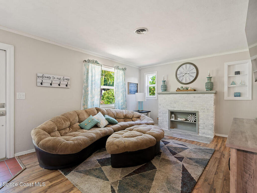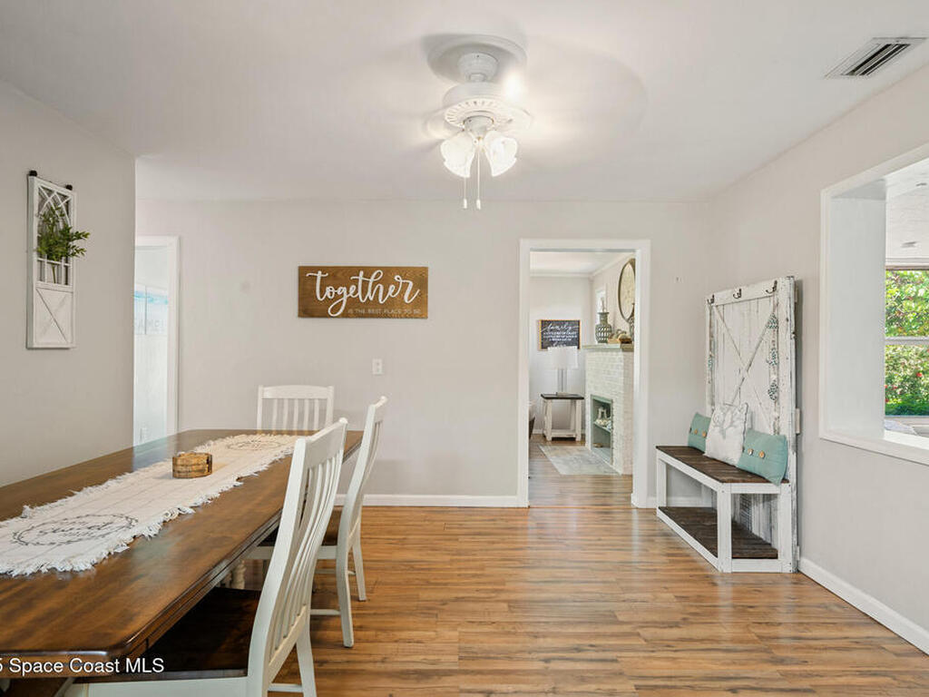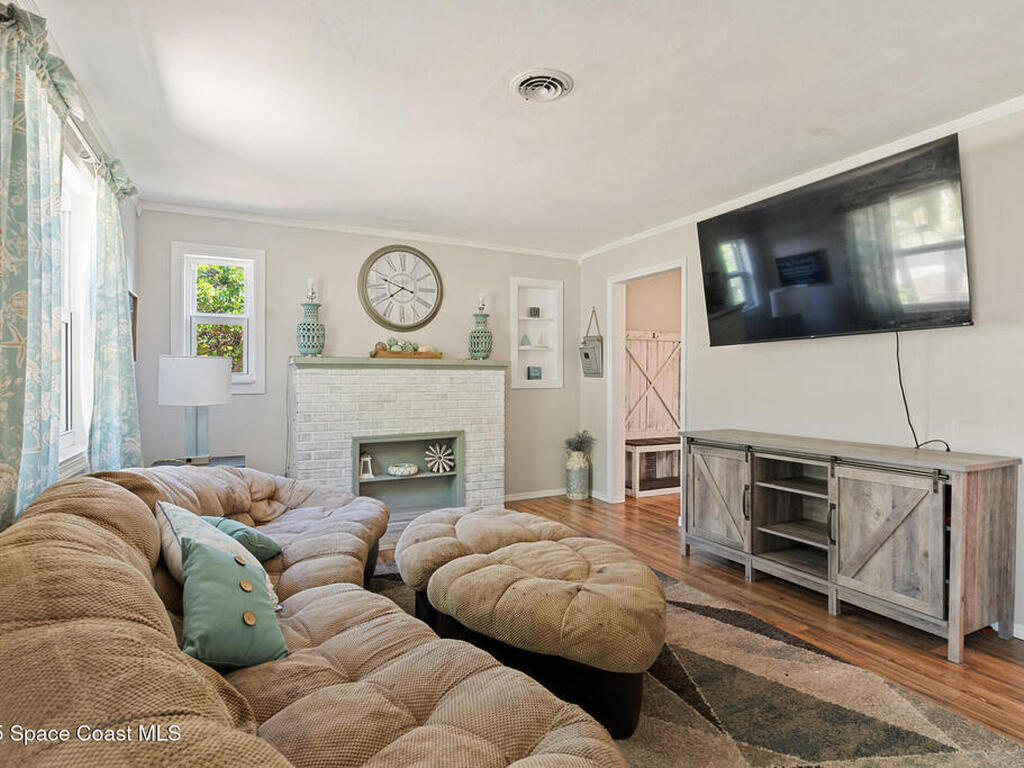 Charming and spacious Vero Beach cottage offering 3 bedrooms, 3 full baths, plus a bonus room currently used as a 4th bedroom. This light-filled home features a renovated kitchen & baths, crown molding, a faux fireplace, & an oversized dining room. Enjoy peace of mind with a newly replaced Reem AC system (inside and out) and a new 50-gallon water heater. Impact windows and doors, a metal roof with transferable warranty, and no carpet throughout. The fenced backyard is perfect for entertaining, complete with a firepit and mature fruit trees--avocado, mango, pomegranate, passion fruit, banana, fig, and chestnut. City water and sewer. Ideally located near SR 60, I-95, downtown Vero Beach, shopping, dining, and the beach!