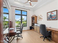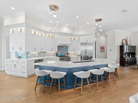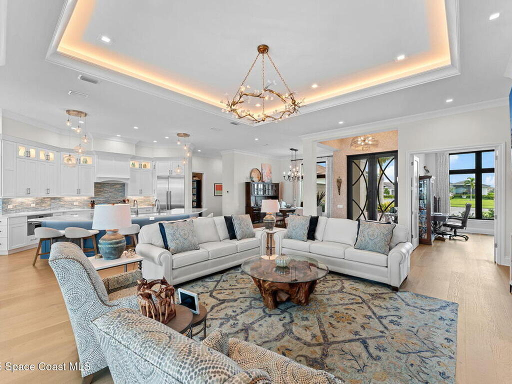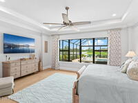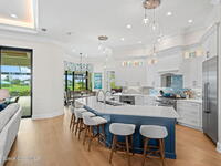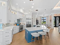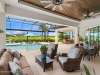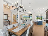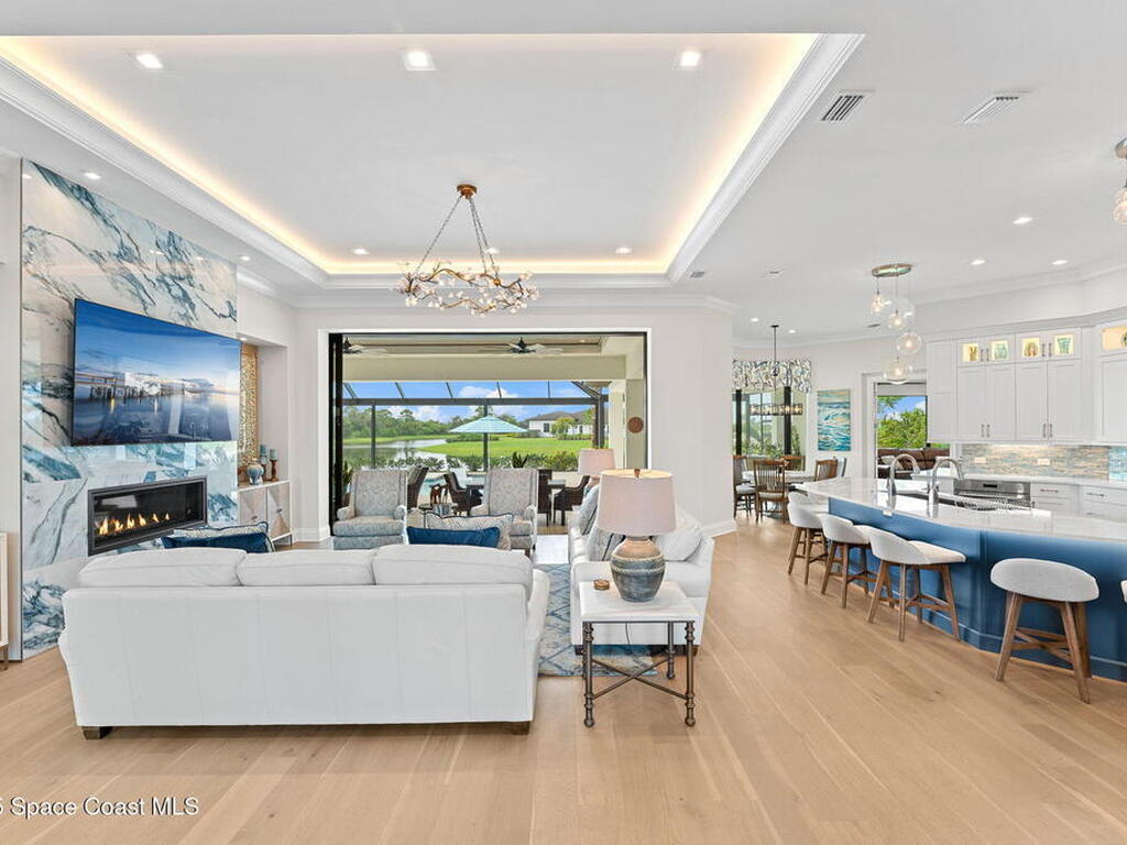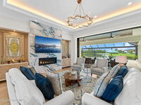 Grand scale & resort living combine in this 4, 222 sq ft custom home on a .70-acre corner lot with breathtaking lake & preserve views. A dramatic 14' foyer with iron double doors opens to oak hardwood floors, soaring ceilings, & walls of glass. The kitchen is a culinary showpiece--quartz counters, custom white cabinetry, Thermador appliances, 6-burner gas range, oversized pantry with coffee bar, & a 52'' stainless sink with dual faucets. Each bedroom offers a private en suite, while the primary suite stuns with dual custom closets & tray ceiling. Living areas center on a porcelain gas fireplace & flexible spaces designed for entertaining or retreat. Step outside to a private paradise: heated saltwater pool, spa, wood-planked lanai, summer kitchen, natural-gas firepit, & picture-panel screening that frames the view. Two oversized 2-car garages, whole-house generator, advanced water systems, & lush landscaping complete this luxury statement.