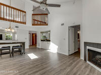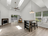 PRICED TO SELL! Discover the charm of this beautiful end-unit townhouse, nestled in a serene waterside setting. Step into the welcoming foyer, which leads to a convenient updated half-bath/laundry room. The spacious kitchen flows seamlessly into the large, vaulted dining and family room, where new flooring, baseboards and painting create a fresh, inviting ambiance. Entertain from the built in bar with sink then sit by the cozy electric fireplace or unwind on the private lanai, newly screened and carpeted. This home offers two spacious bedrooms and a versatile loft that can serve as a third bedroom. The first-floor master suite features a walk-in closet, updated his-and-her vanities, new flooring, and direct access to the lanai. With numerous upgrades throughout, this home combines modern convenience with tranquil living. Newly painted interior, garage door/opener.