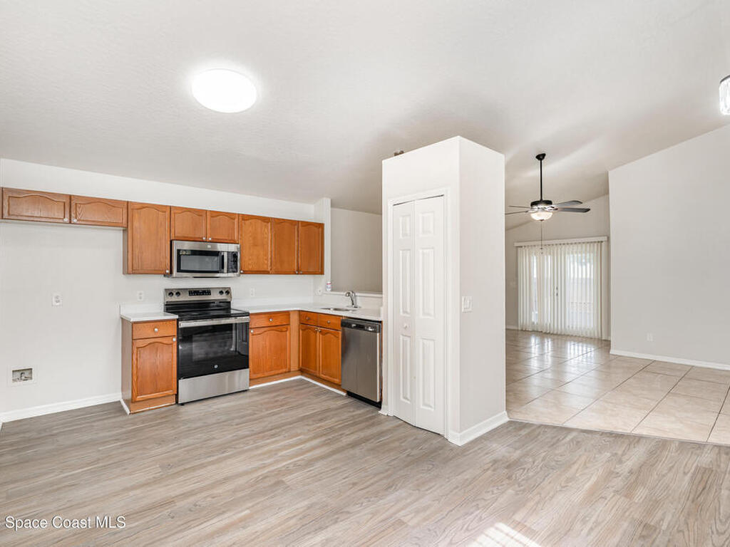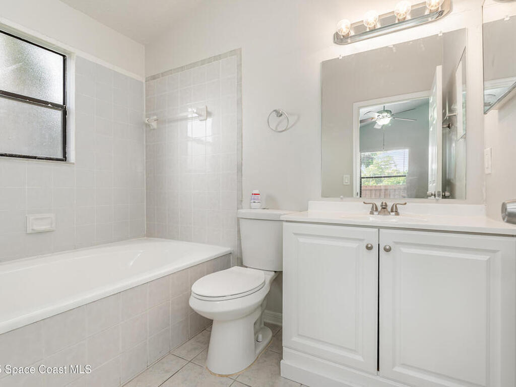 Welcome to this spacious 3-bedroom, 2-bathroom home in the desirable Lake Pointe / Suntree area. Built in 1993, the residence offers an open layout with vaulted ceilings, split-bedroom floorplan, and a two-car garage. Interior features include tile flooring in the living area, laminate in the bedrooms and kitchen, a dedicated laundry room, and ceiling fans throughout. A screened‑in back porch overlooks lush landscaping and invites outdoor living. Just 12 minutes to Hightower Beach Park, 5 minutes to The Avenue Viera for top shopping and dining, and close to I-95 and A-rated schools. Prime location with quick access to parks, golf, and the best of Melbourne living.
