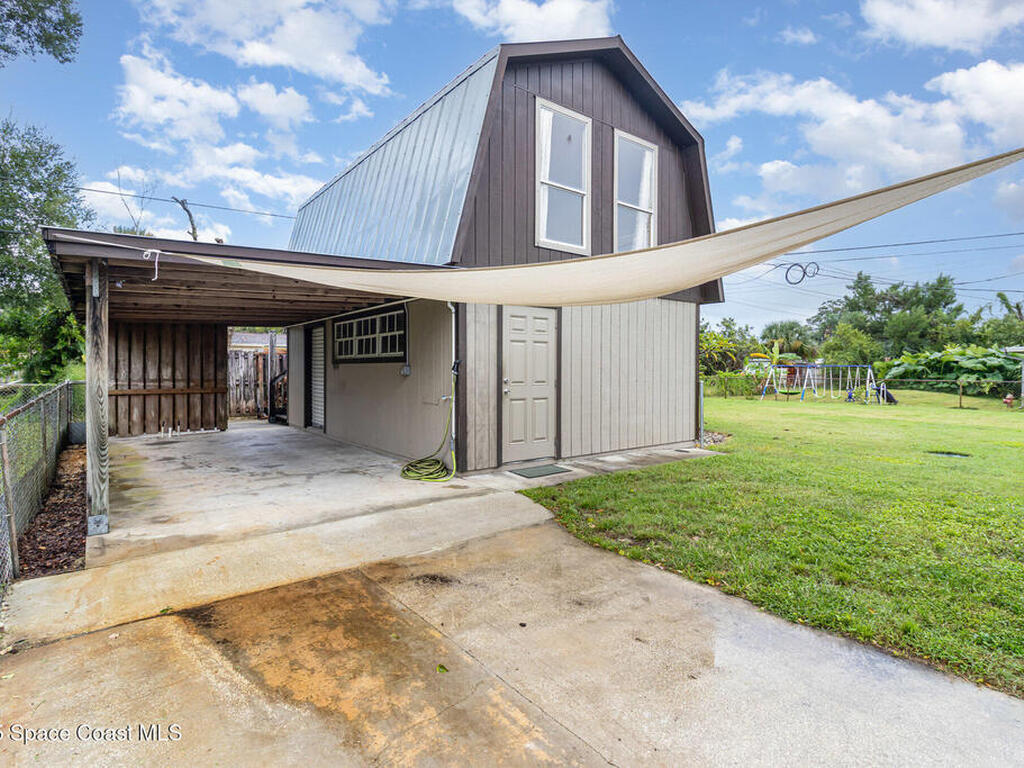 Your Coastal Escape: Modern Comforts + Endless Possibilities! Spacious and updated, this 2, 092 sq. ft. home offers the perfect blend of charm and modern upgrades. Inside, you'll love the warm exposed western cedar planks in the living room, a cozy wood-burning fireplace (chimney rebuilt 2019), and a beautifully remodeled kitchen with granite counters, gas stove, and coffee bar. Major improvements include a new septic system (2024), Generac generator (2023), mini-split A/C in the primary suite (2025), water heater (2019) and water treatment with PFAS removal, reverse osmosis, and softener. Outdoor living shines with new irrigation, well pump, lighting, and lush zoysia grass (2024). Property also features 2 driveways, 2-story workshop with overed carport-type work area --perfect for projects or storage and room for your boat and cars. No cast iron plumbing. Enjoy peace of mind plus quick access to beaches, Kennedy Space Center, Orlando, maj& or highways. Some pictures virtually staged.
