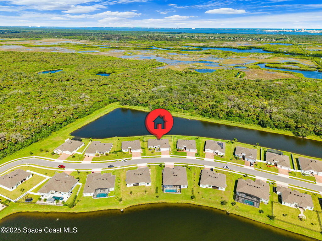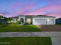 Priced to Sell! This can be your Dream Home!Set on a premium lot with stunning direct pond views and a tranquil preserve backdrop, this North Merritt Island gem is located in a NON-Flood Zone which offers peace and tranquility. Enjoy peaceful sunrises, birdwatching, local wildlife, and even breathtaking rocket launches--all from your own private screened porch.This beautifully designed open concept home with soaring high ceilings.Gourmet kitchen with a large island--perfect for entertainingTile flooring in all main living areas and flex room (ideal for office, gym, or playroom), 3-car garage with utility sinkHouse build in 2021.Pre-wired for a whole-house generator, pool, and porch theater. Iron backyard fence meets pool code height requirements. Cozy backyard fire pit--perfect for winter evenings. Less than 10 minutes to Kennedy Space Center, Port Canaveral, beaches and Cruise ships. Orlando international Airport 30min away.