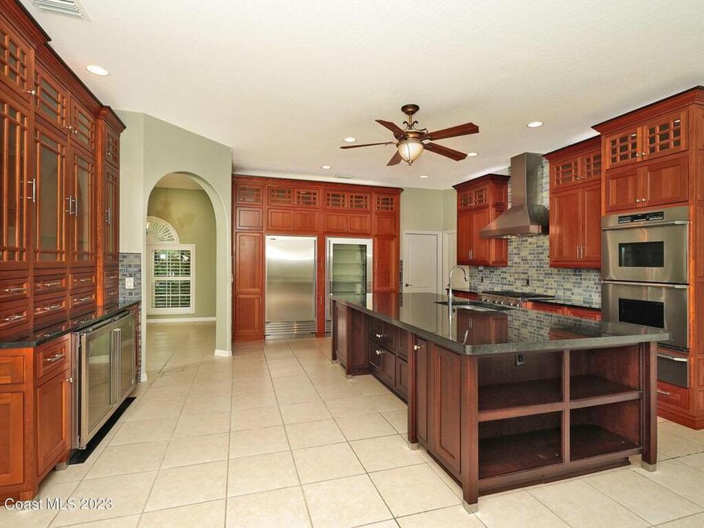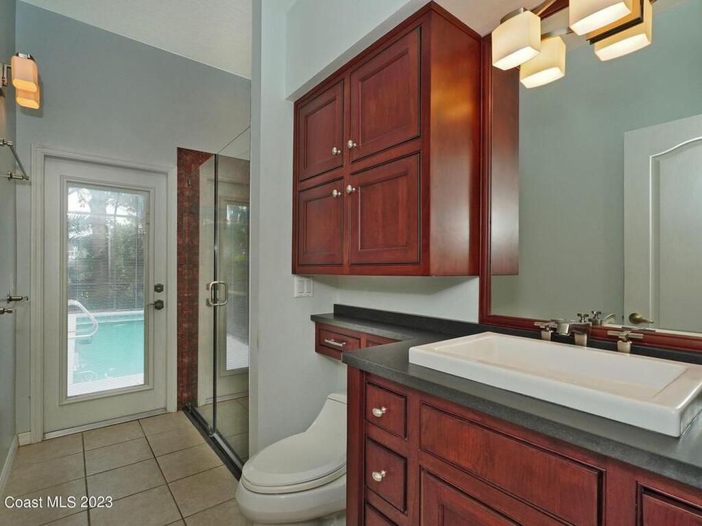 Beautifully upgraded!, POOL home! 4 bedrooms, 3 baths, formal living and dining rooms. Chef's kitchen with huge island, onyx countertops, Cherry cabinets, full frig, full freezer, wine cooler, beverage cooler, gas cooktop, gas dbl. ovens with warming drawer & more. Family room with gas fireplace. Spacious master with his/her walk-in closets. Master bath with dbl. sink vanity, bidet, huge walk-in shower. 3rd bathroom opens to solar heated screened pool (7' deep) & spa area with covered patio. Laundry room with utility sink (gas or elec. dryer can be used). Tropical landscaping. 3 Car Garage. 75-gallon gas hot water heater. AC with dehumidifier. Wheelchair accessible features. Minutes to I-95, shopping & entertainment. Renters Insurance Required.