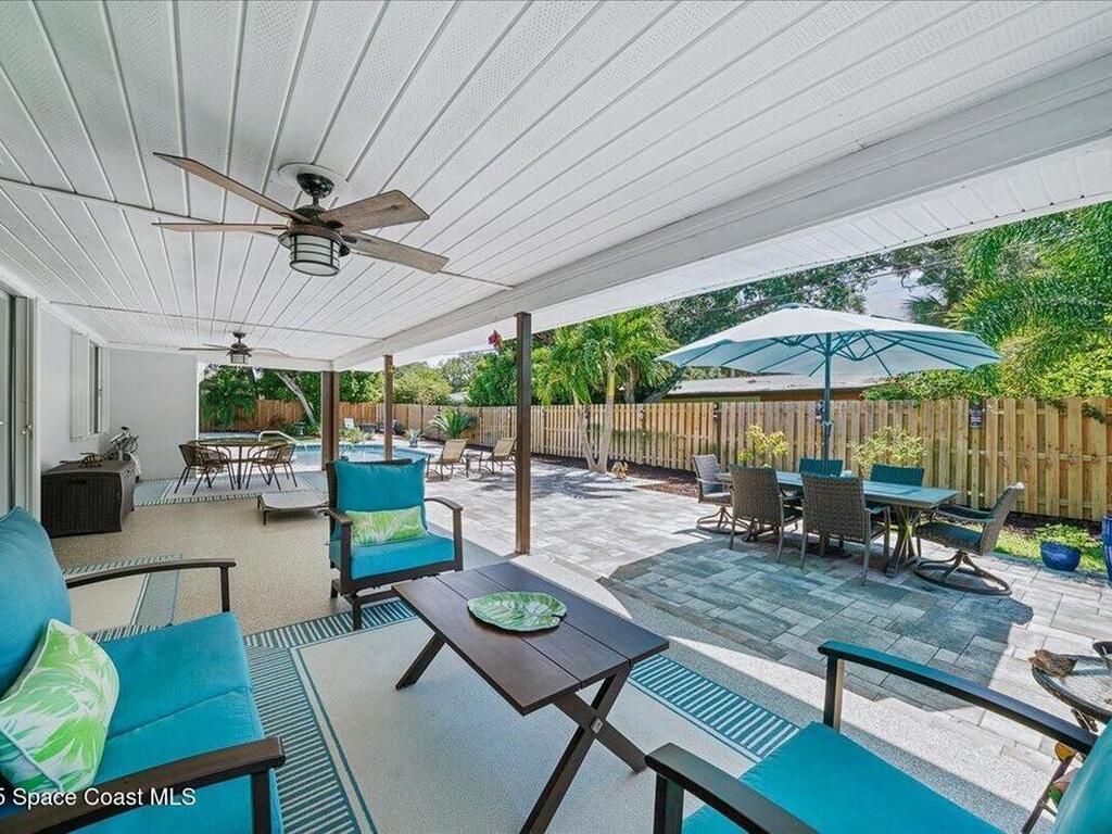 Live on the island in this beautiful mini-resort on Bahama Drive! This incredible home on an oversized .31 acre lot has everything you're looking for! Updated with 3 bedrooms and 2 baths with a separate laundry room and panty. Relax besides the electric fireplace with a drybar and wine fridge. Enjoy a custom tropical landscaped backyard with heated pool. Newly refreshed oversized back patio with a new epoxy surface. Hurricane accordion shutters, 2 hot water heaters, recessed lighting, sky lights and plenty of room on the side of house for a boat or RV. In the heart of Indialantic only minutes walk from the beach and river. This neighborhood has top rated schools and a new Publix, restaurants and shopping center 6 blocks away on A1A with everything you need! Roof 2019, HVAC 2022, Water Heaters 2024/2025. New backyard cedar wooden fence 2025This home is turn key and will not last long so come have a look and start living the island life!